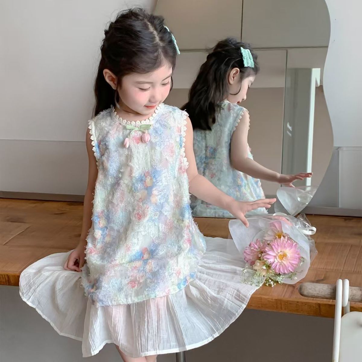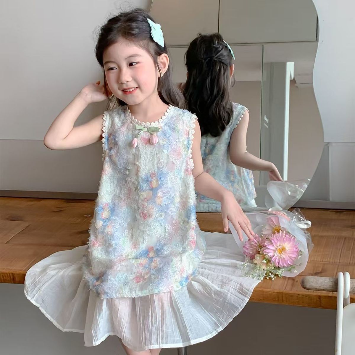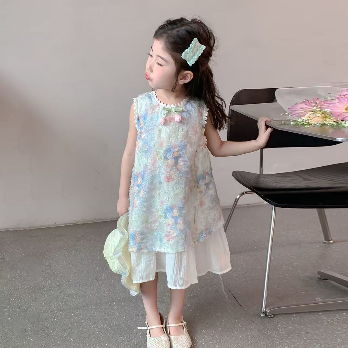 Детское платье Ханьфу, летний наряд 2025, новый стиль, модное и красивое платье-жилет для девочек, летнее платье принцессы