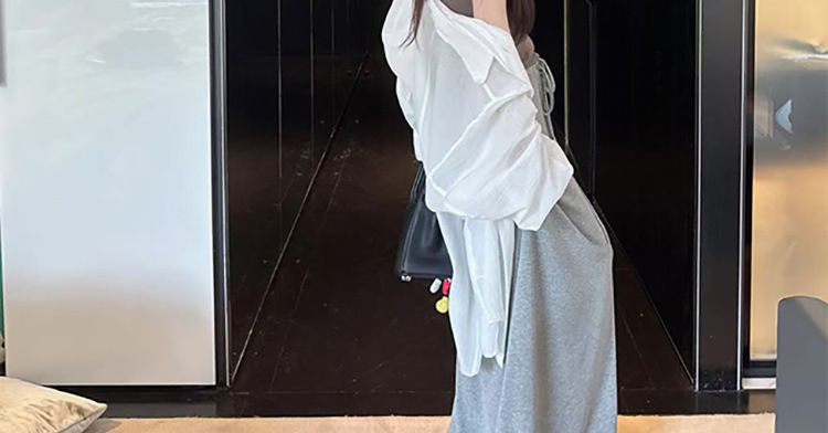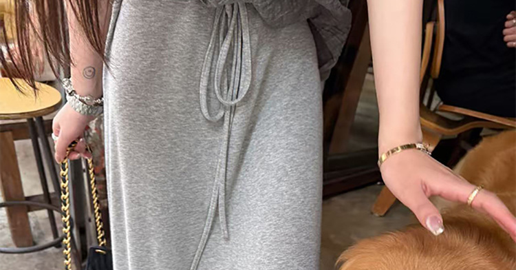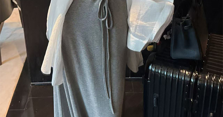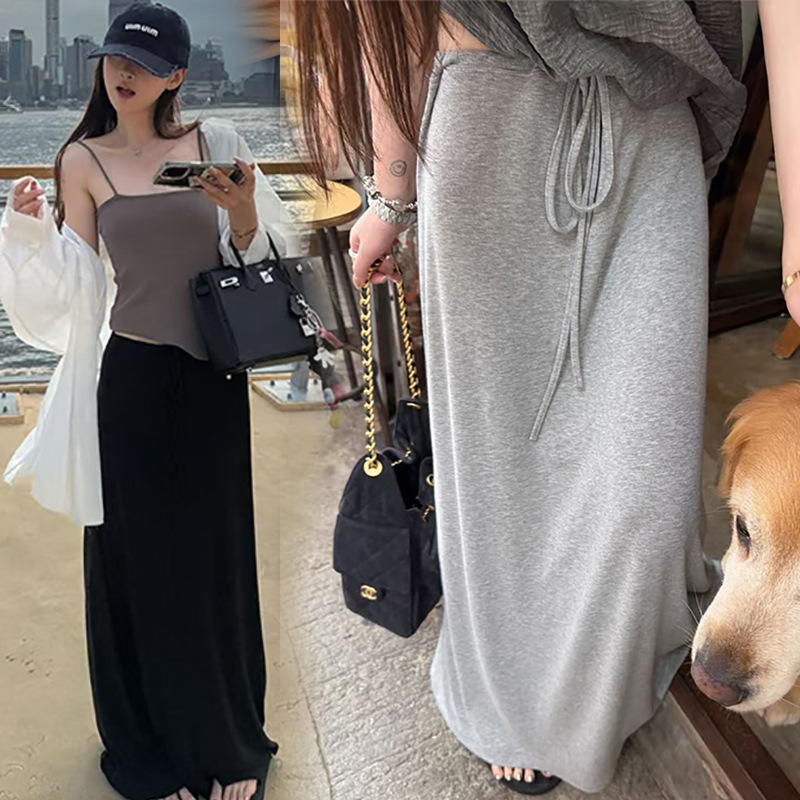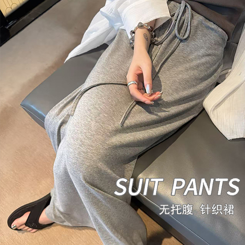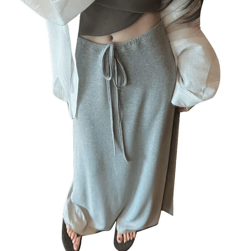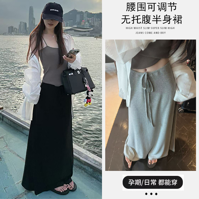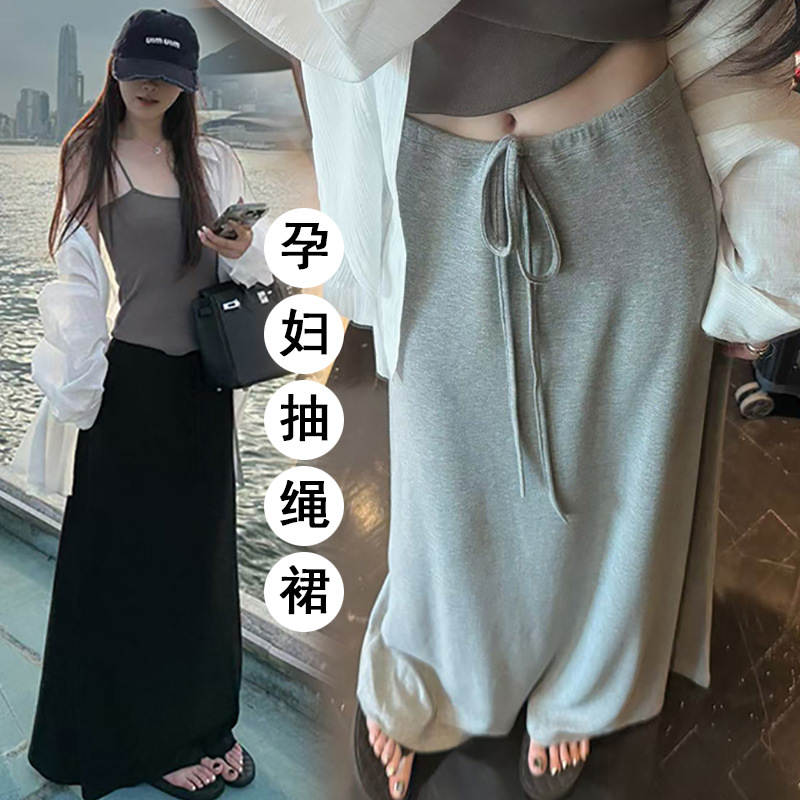 Юбка для беременных, серая драпированная юбка на шнурке в ленивом стиле, весенне-летняя длинная юбка трапециевидной формы с высокой талией в корейском стиле для похудения