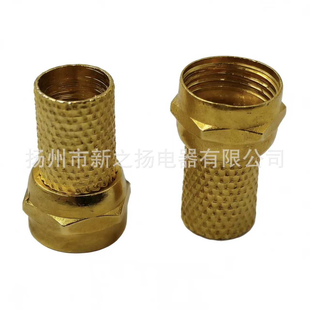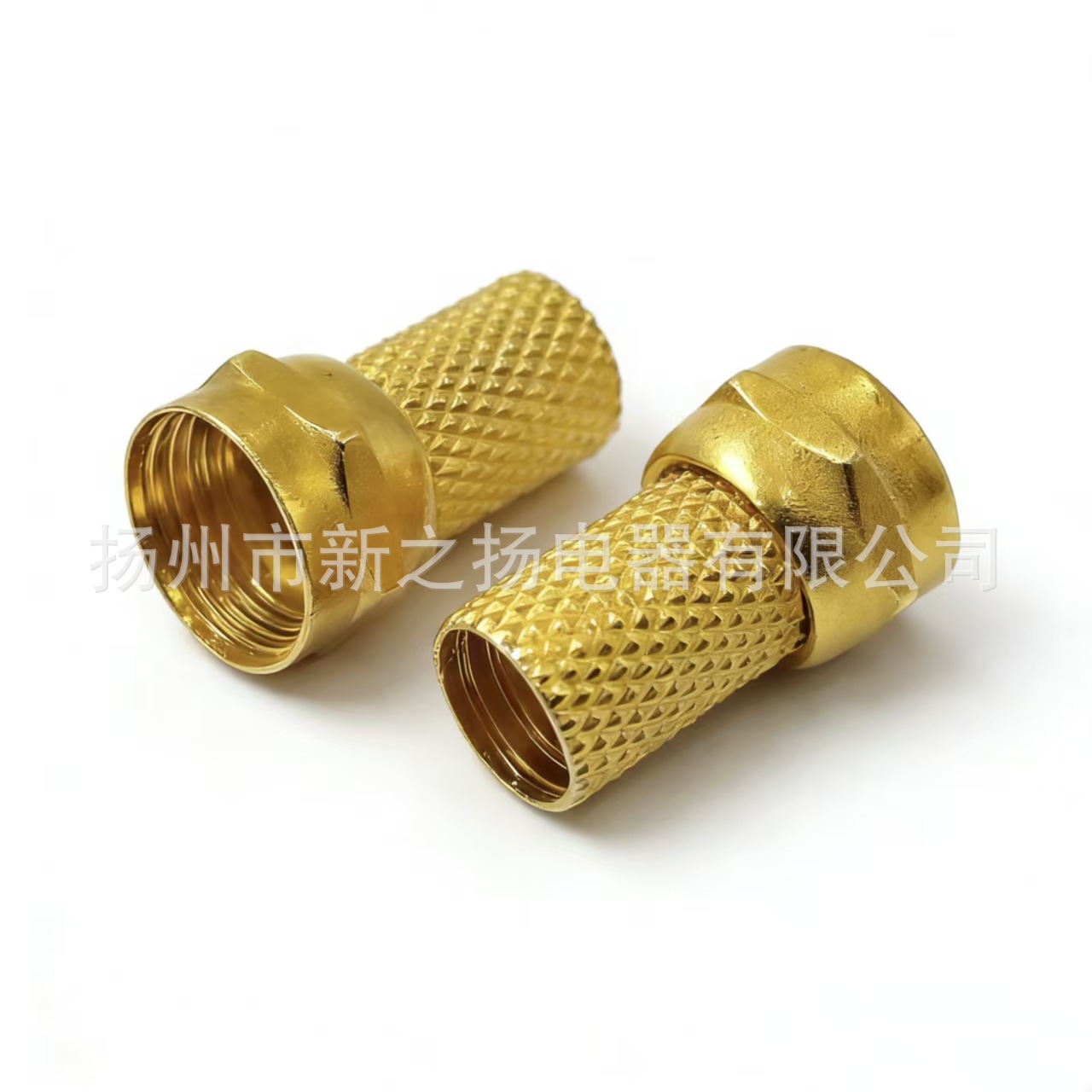 Прямая поставка с фабрики, разъем для кабельного телевидения, 75-5 дюймов, позолоченный резьбовой самозатягивающийся F-головка, позолоченный F-головка из цинкового сплава