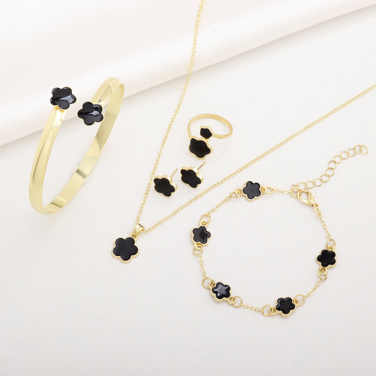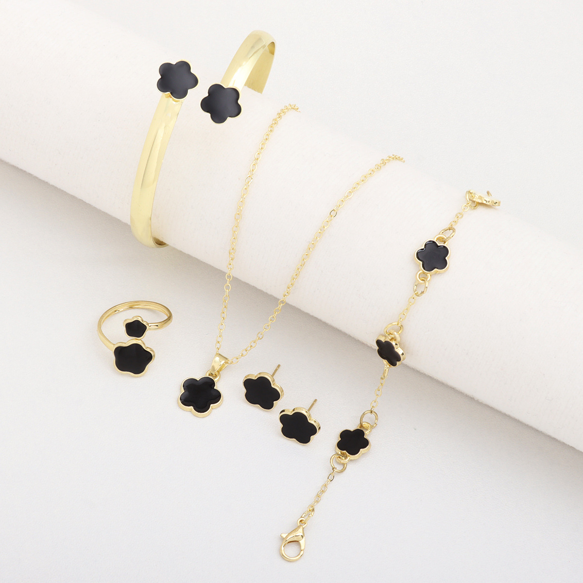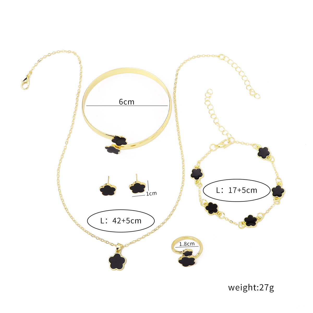 Популярный набор украшений с пятилепестковым цветком: серьги, кольцо, ожерелье, браслет, 5 предметов