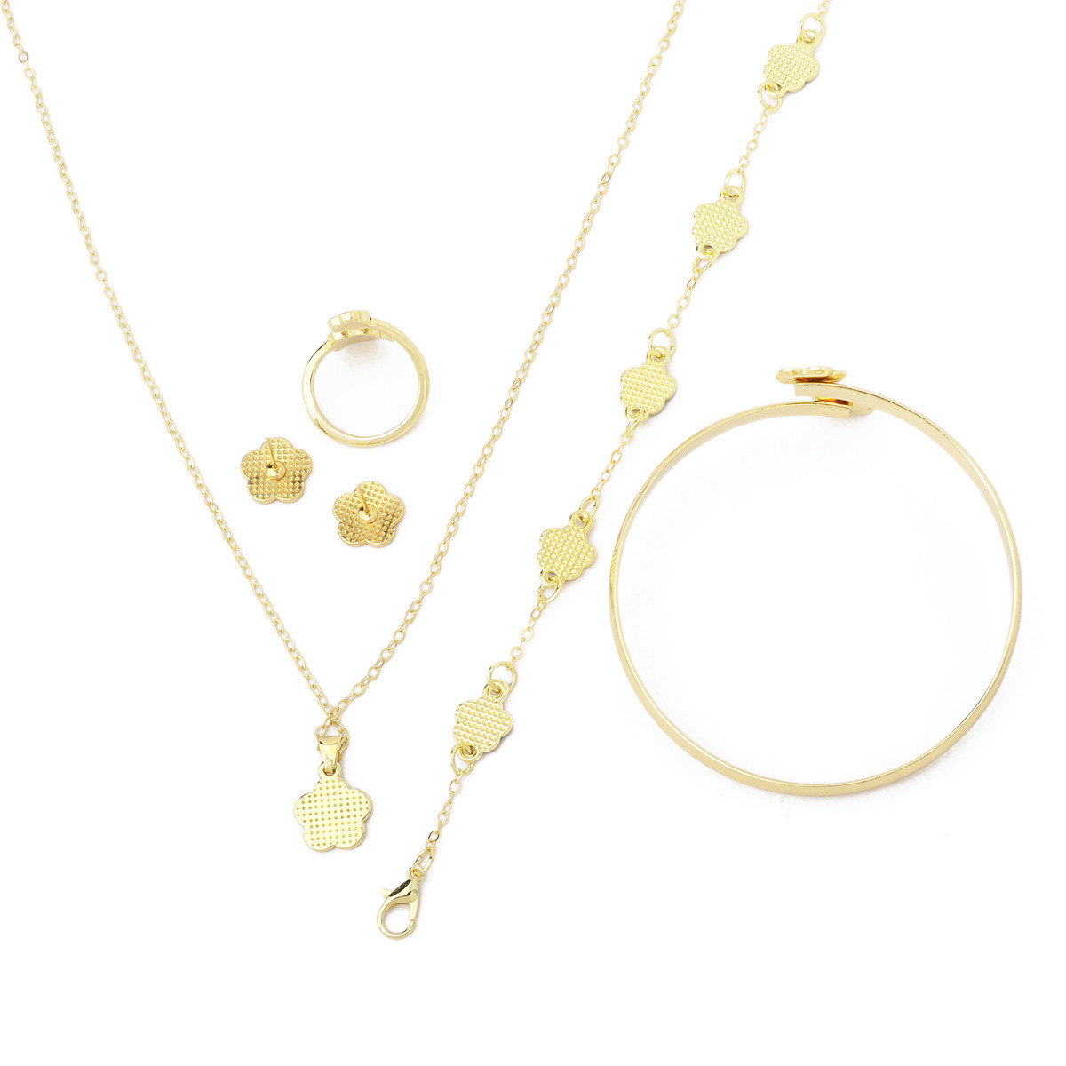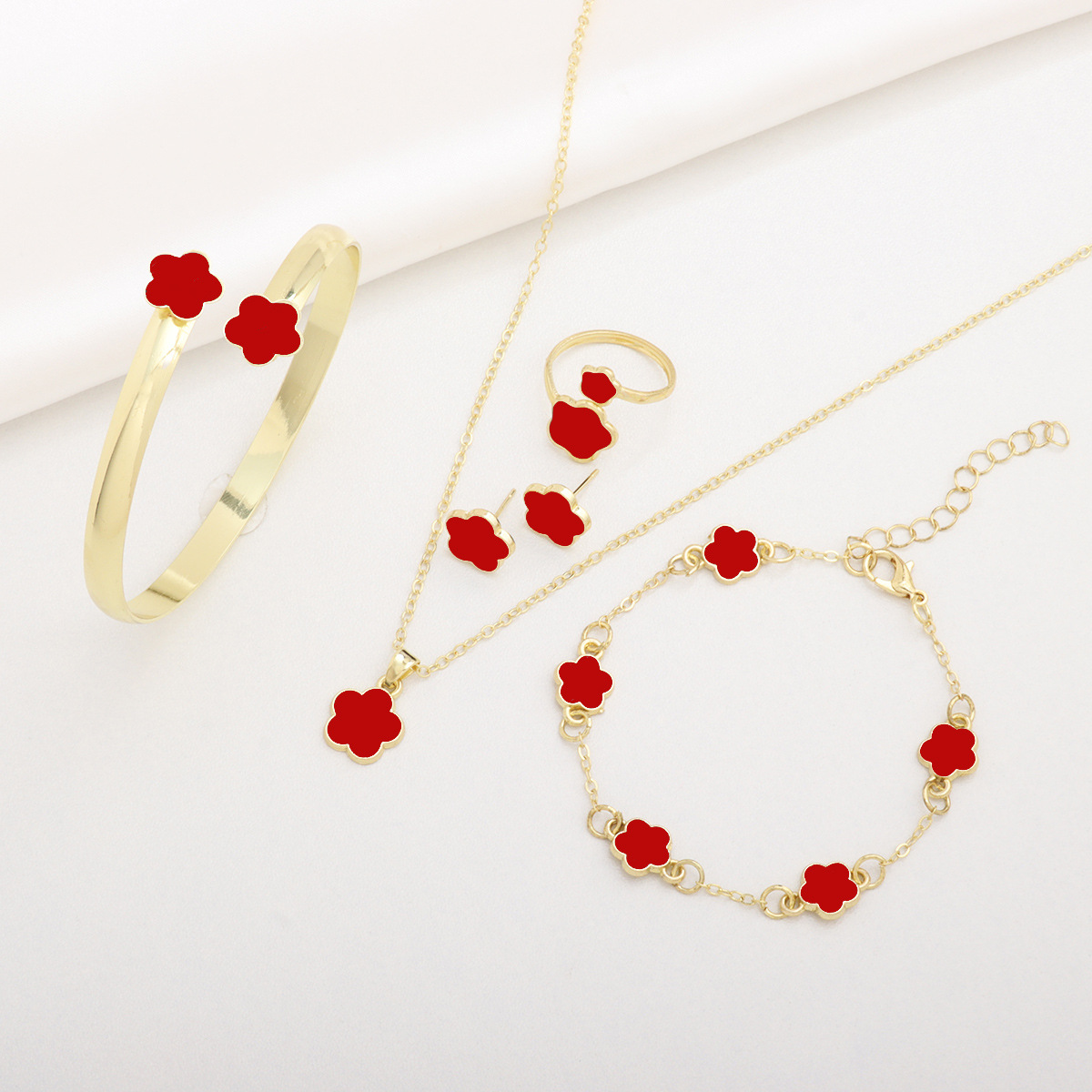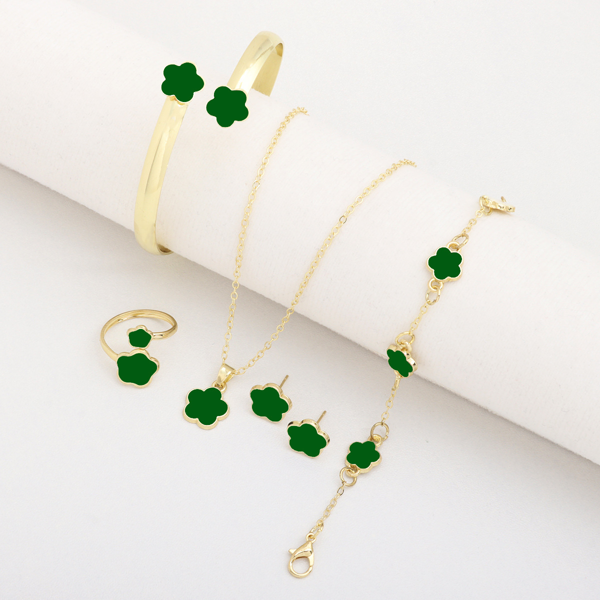 Популярный набор украшений с пятилепестковым цветком: серьги, кольцо, ожерелье, браслет, 5 предметов