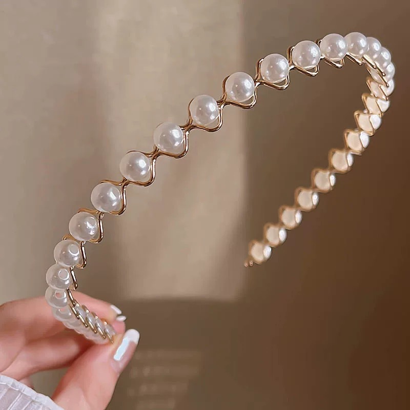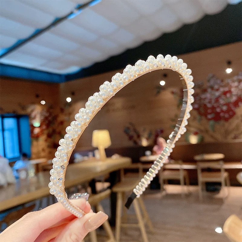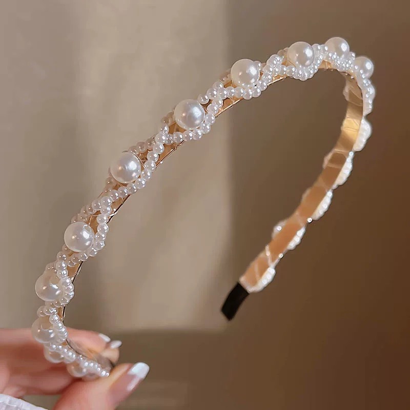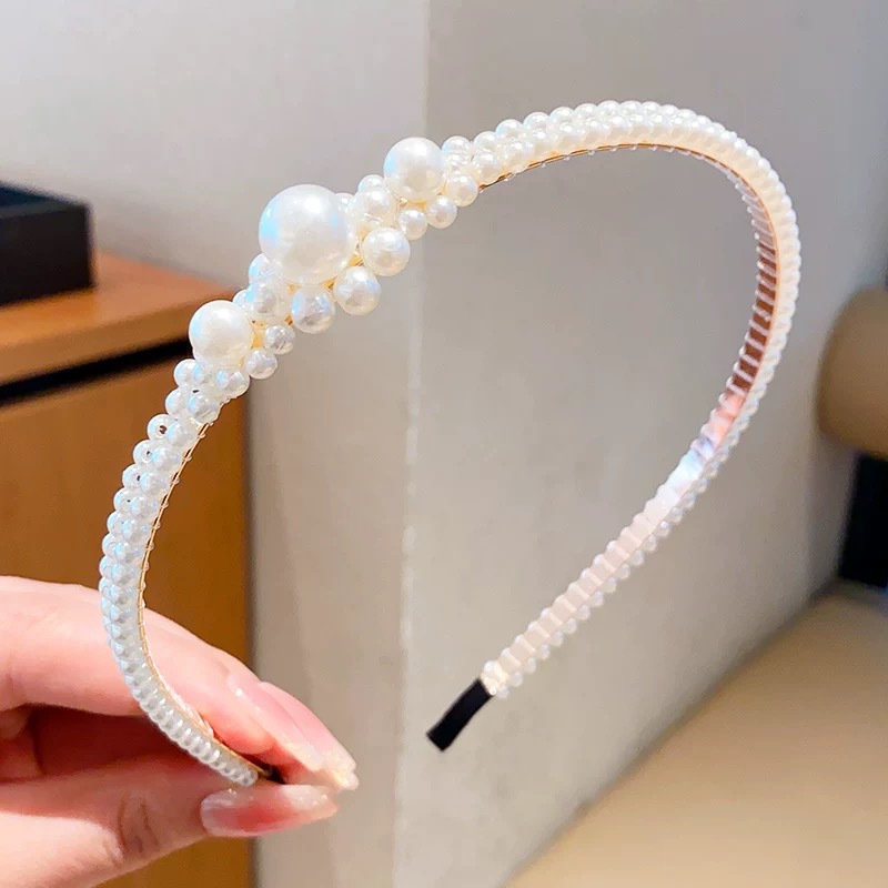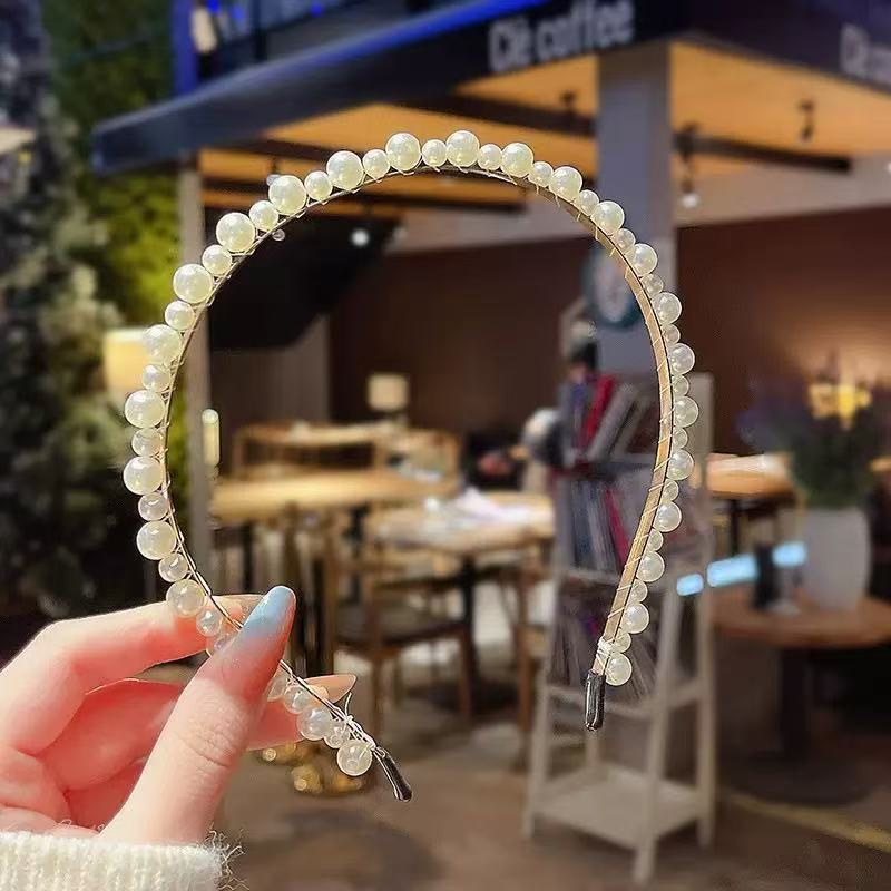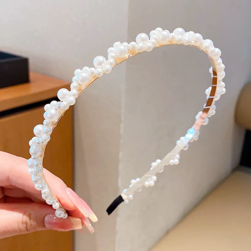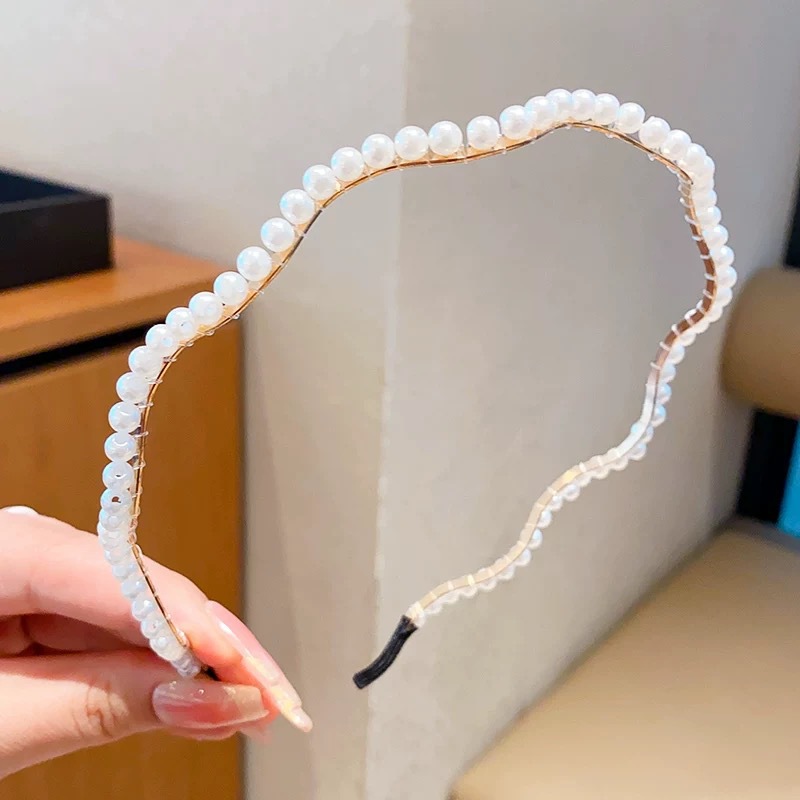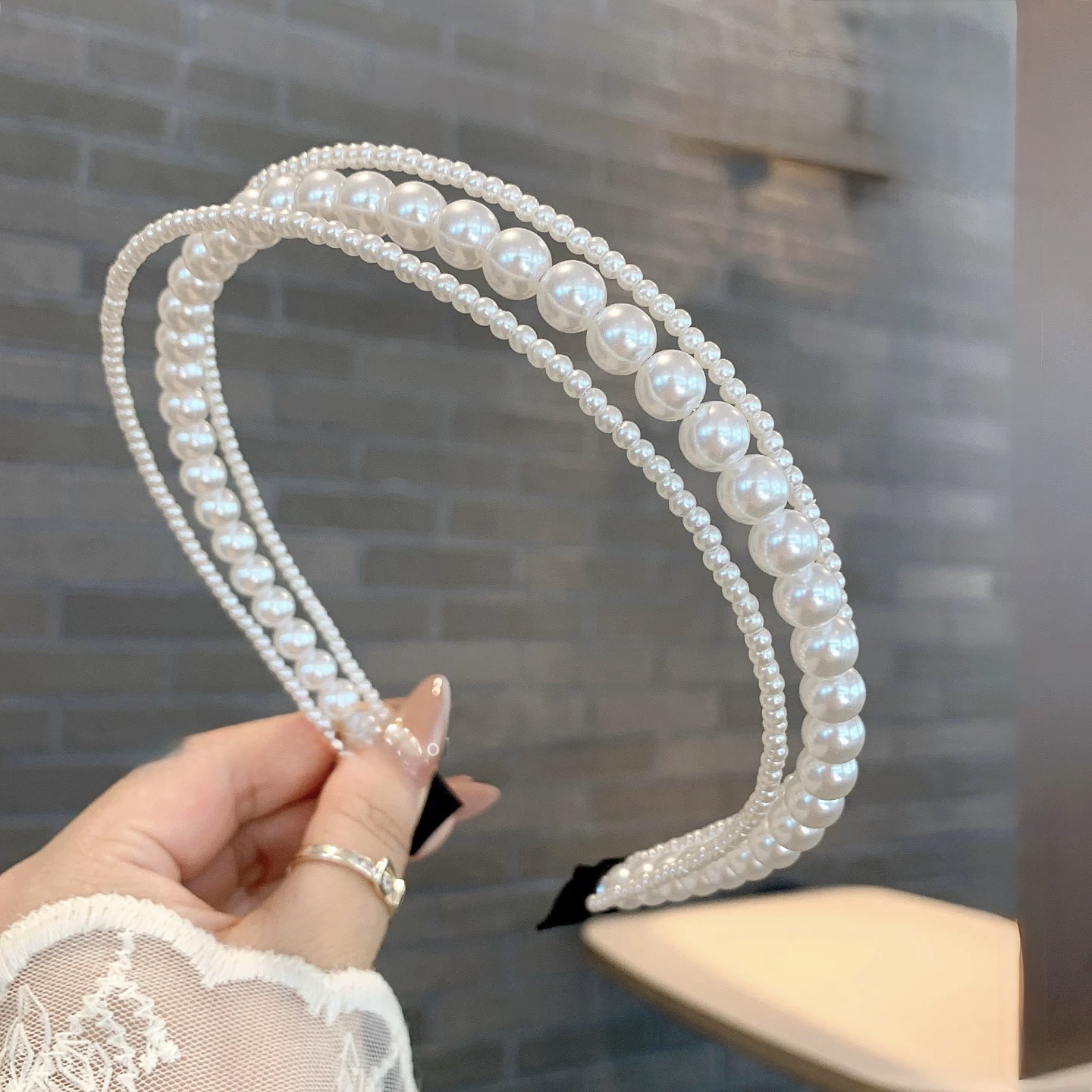 Элитная жемчужная повязка на голову для женщин, повязка с жемчугом для челки в стиле интернет-знаменитостей, универсальная для выхода в свет, очень сказочная, с высоким выступом на затылке, заколка в стиле принцессы.