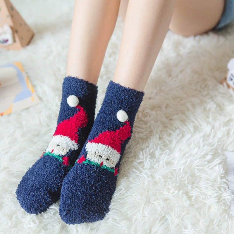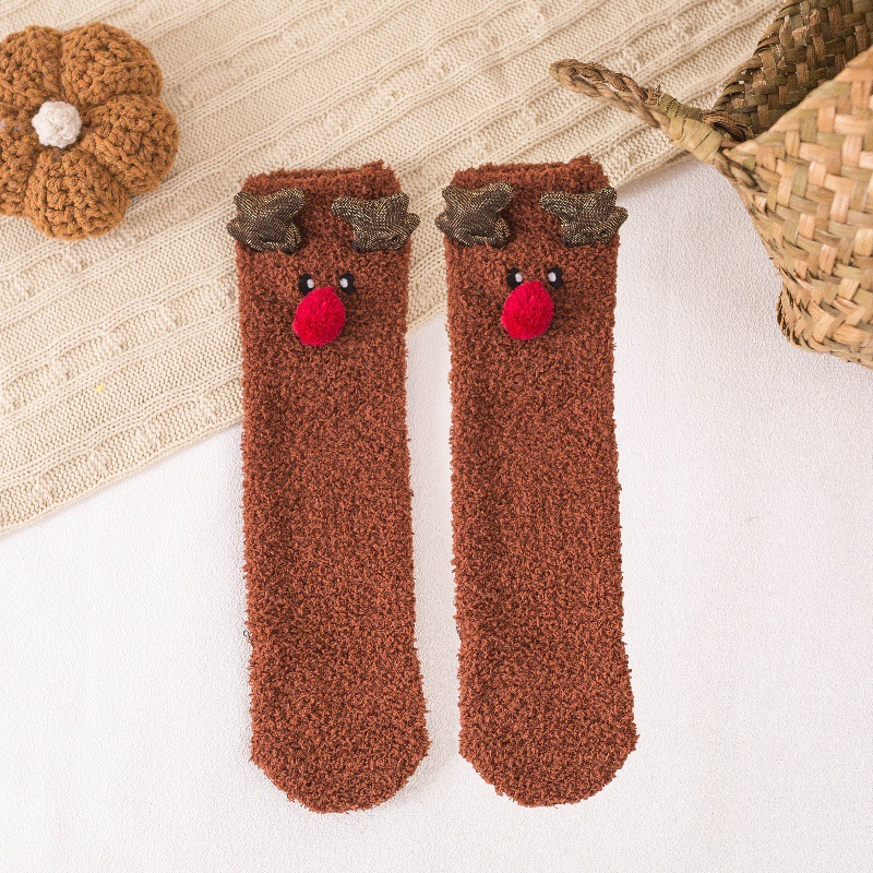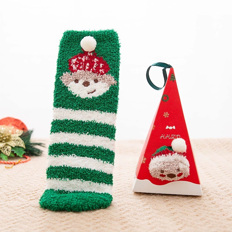 Новые рождественские носки из кораллового флиса для осени и зимы, вышитые, унисекс, в подарочной треугольной коробке, в сферической упаковке