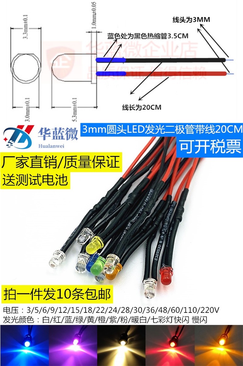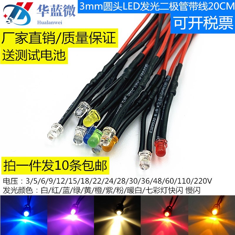 3 мм яркий светодиод 3V6V9V12V24VLED с проводной лампой, бусиной, индикатором игрушечного автомобиля, декоративным светом