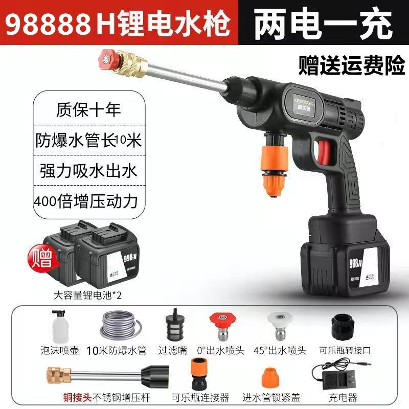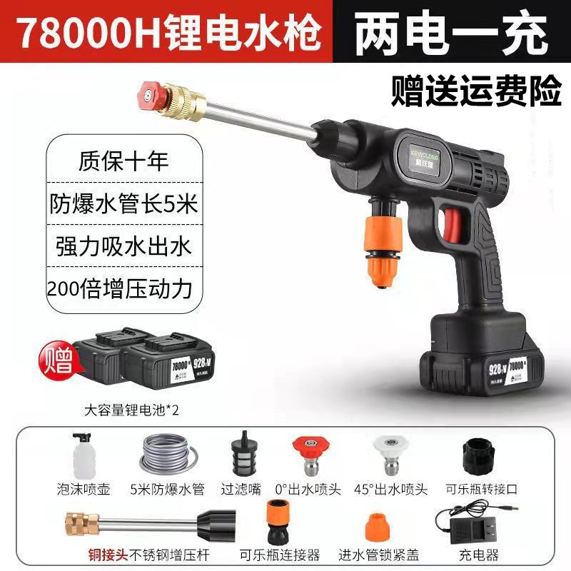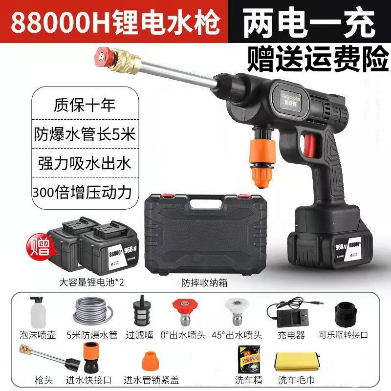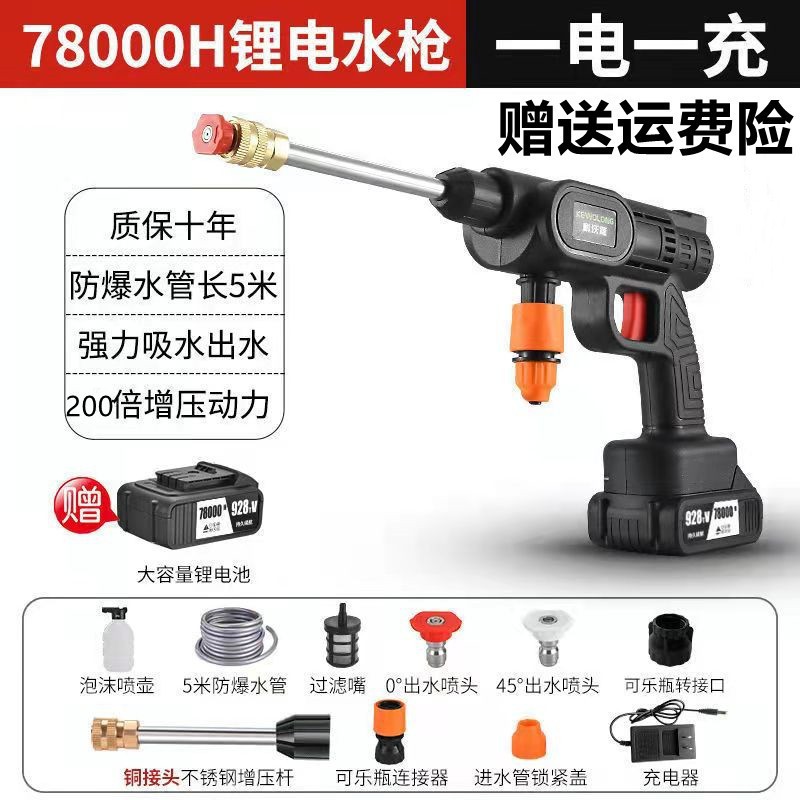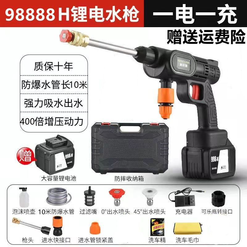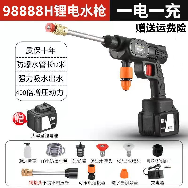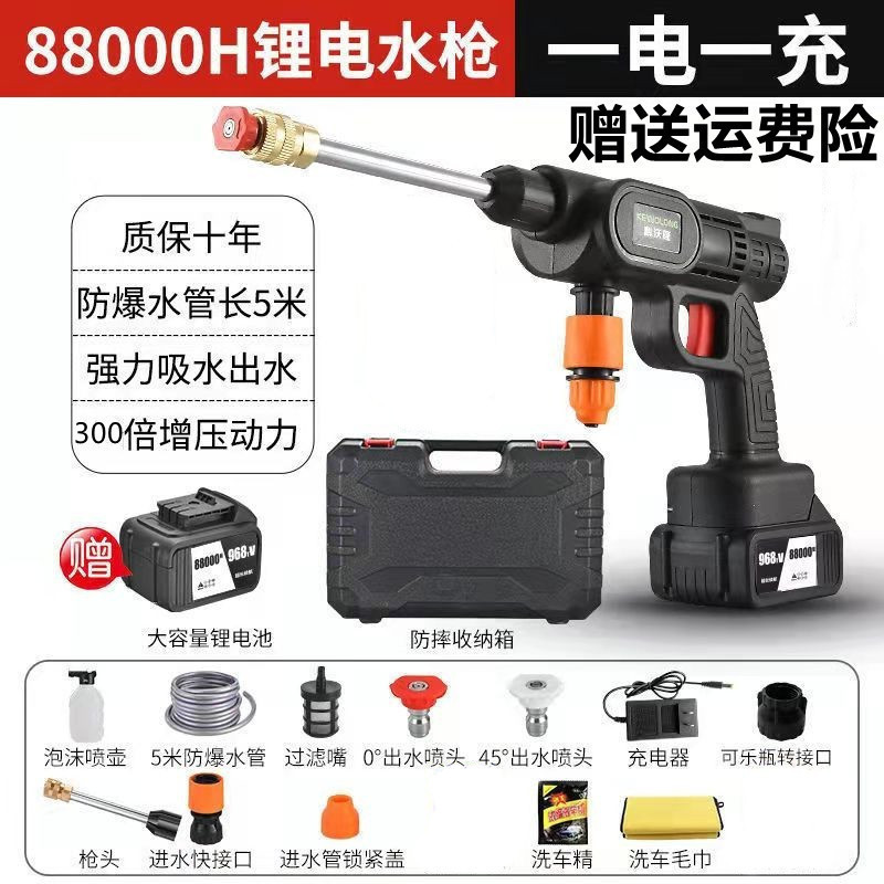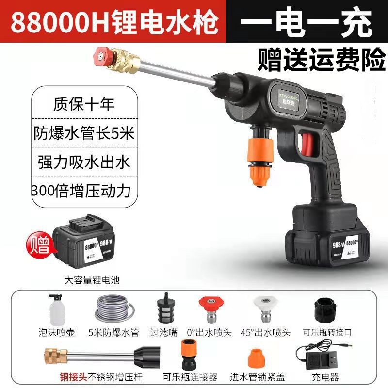 Водяной пистолет высокого давления для мойки автомобилей, беспроводная машина для мойки автомобилей, бытовой портативный перезаряжаемый чистящий станок с литиевой батареей