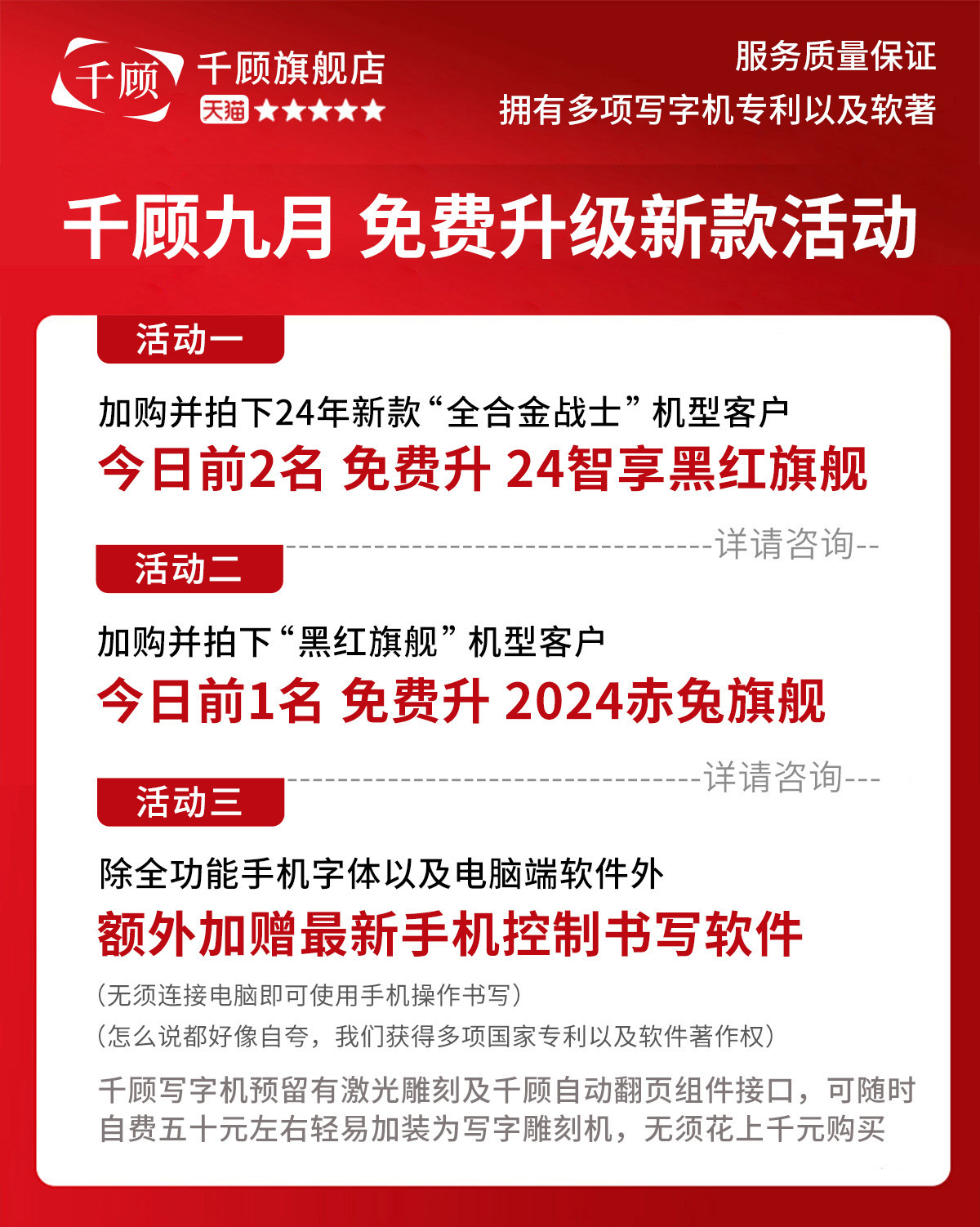 [Шиньюэ] Четыре двигателя ☆ Компьютер/мобильный телефон три системы; 2024【Полный сплав】Высокая скорость ☆ Компьютер/мобильный телефон три системы ☆ AI беспроводной синий; 2024【Воин из цельного сплава】 ◆ Новая композитная пневматическая подвеска. ◆ Интеллект чипов нового поколения; черно-красный флагман ☆ адаптивный; 【Smart Link】Пустая подвеска ☆ Компьютер/мобильный телефон три системы ☆ Беспроводной Bluetooth; Флагманский корабль Jade Rabbit ☆ Умное соединение ◆ Новая композитная пневматическая подвеска.; 2024 ◆ Наслаждайтесь черно-красным флагманом PLUS ◆ Композитная пневматическая подвеска; Флагман Красного Кролика ☆ Двойной источник питания для использования на открытом воздухе; Тысяча глаз настаивает на полном сплаве ◆ Никаких пластиковых панелей ◆ Можно гравировать; Бесплатное обновление до 24 новых красных кроликов * обновленное программное обеспечение