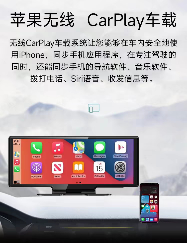 10.26inch Двойная запись центральной консоли (4K+1080P+4G+Carplay+Android Auto)