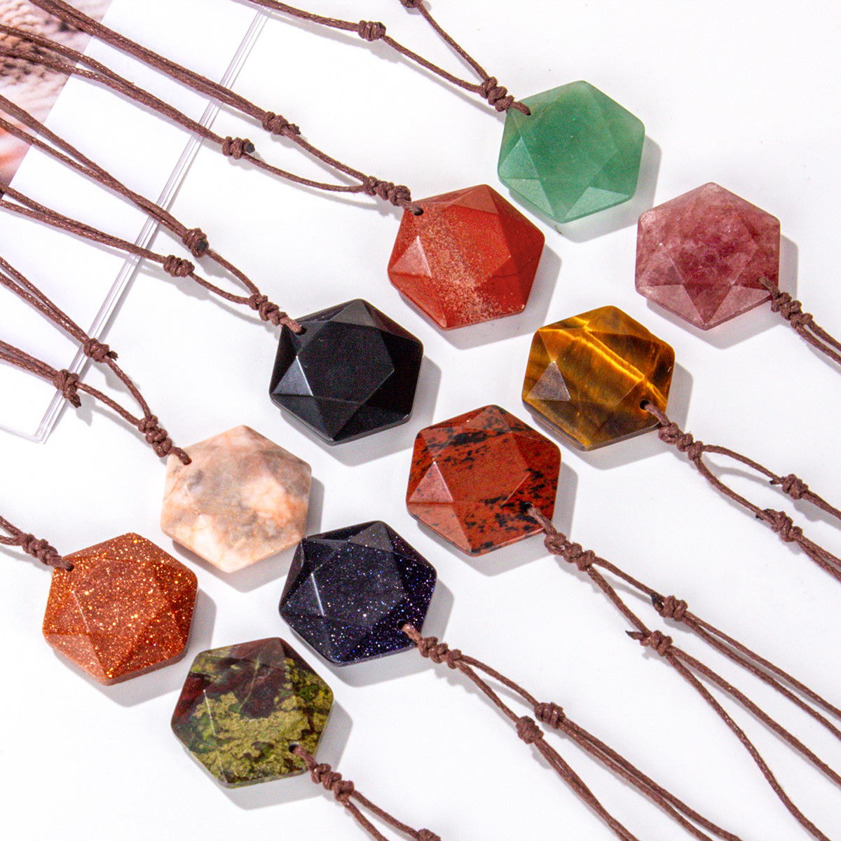 Ювелирные изделия Zhuhang, популярное ожерелье с подвеской из натурального камня, гексаграмма, ожерелье с тигровым глазом, белое хрустальное ожерелье, ювелирные изделия