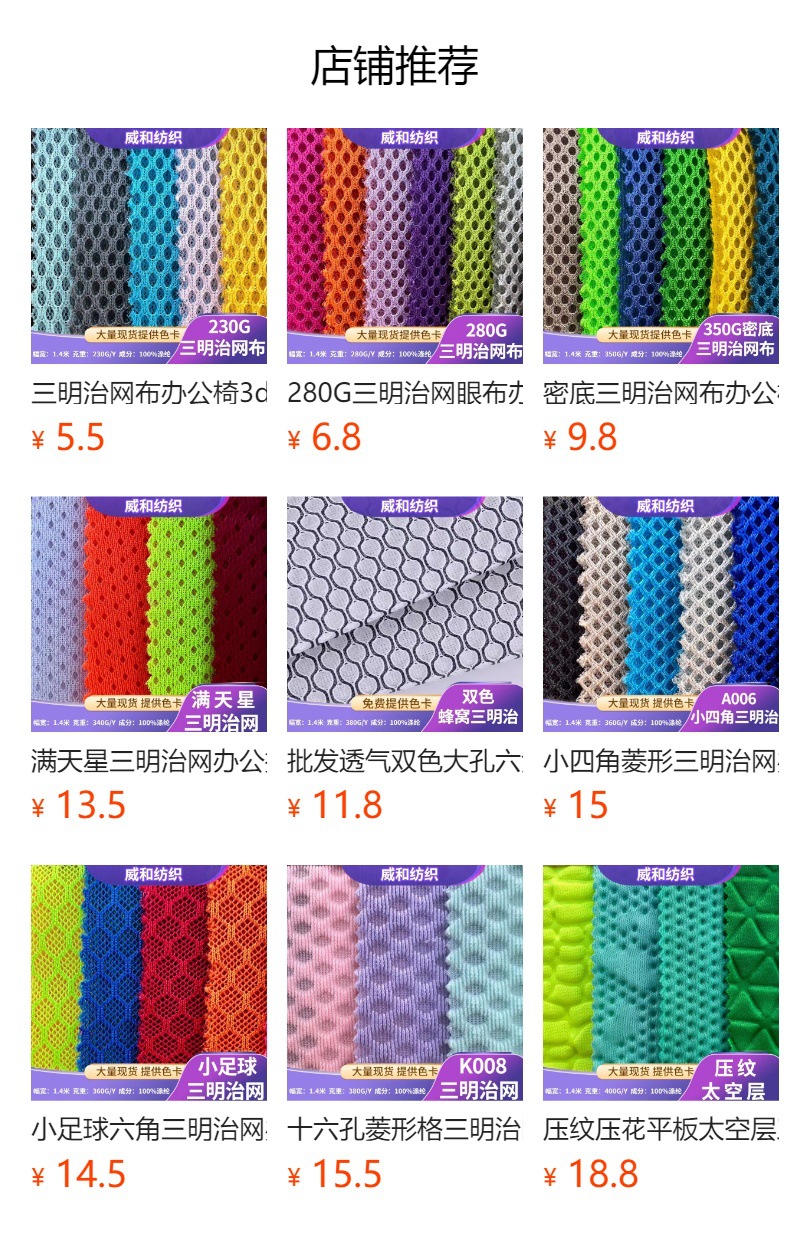 涤纶透气箱包鞋材用鸟眼布汽车座垫3d三明治网布空气层面料