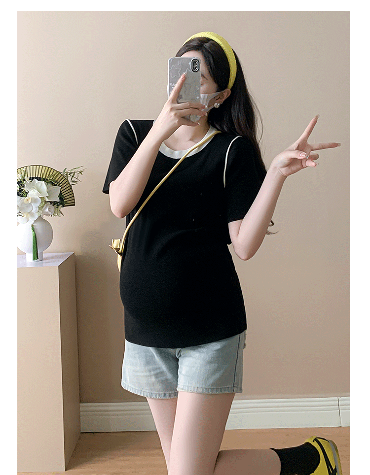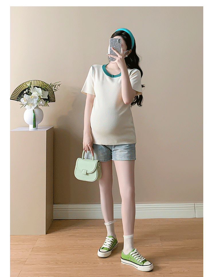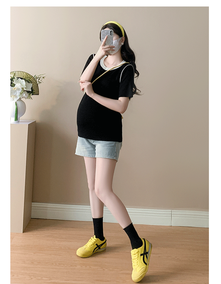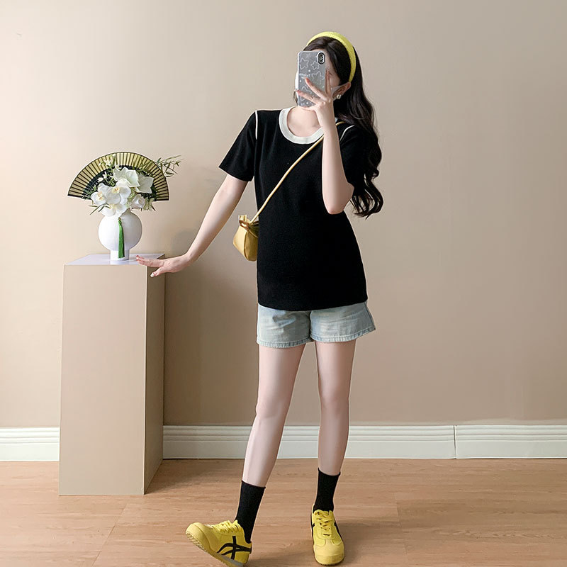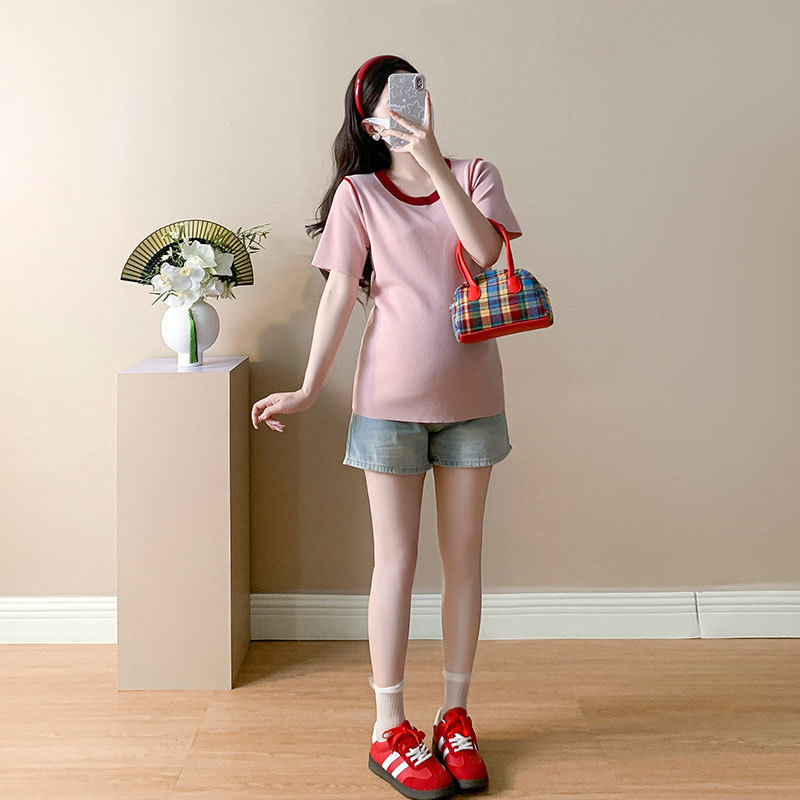 Топы для беременных, модные для маскировки живота беременных, лето 2025, новая универсальная тонкая футболка с короткими рукавами, шорты, женский тонкий стиль