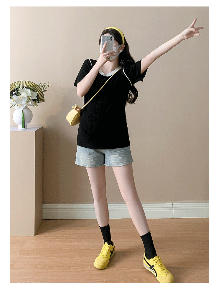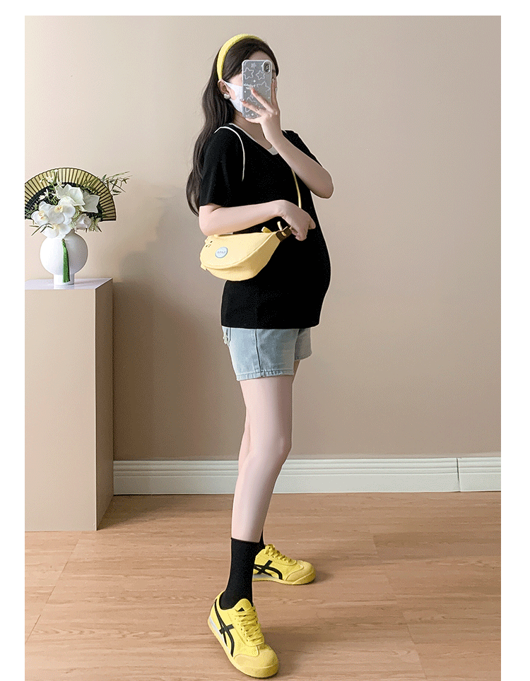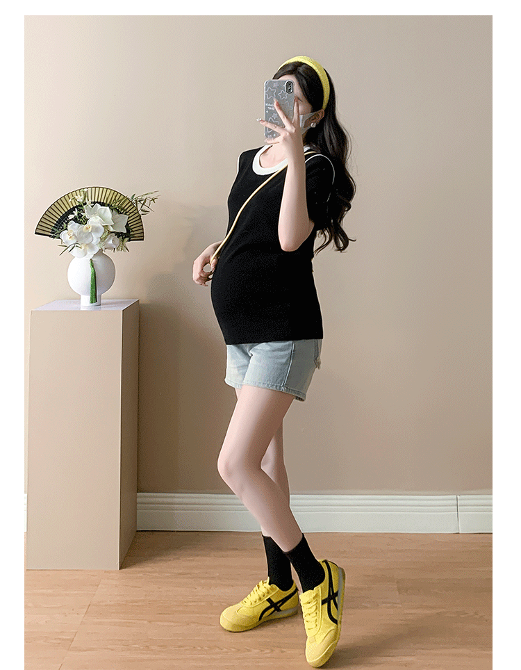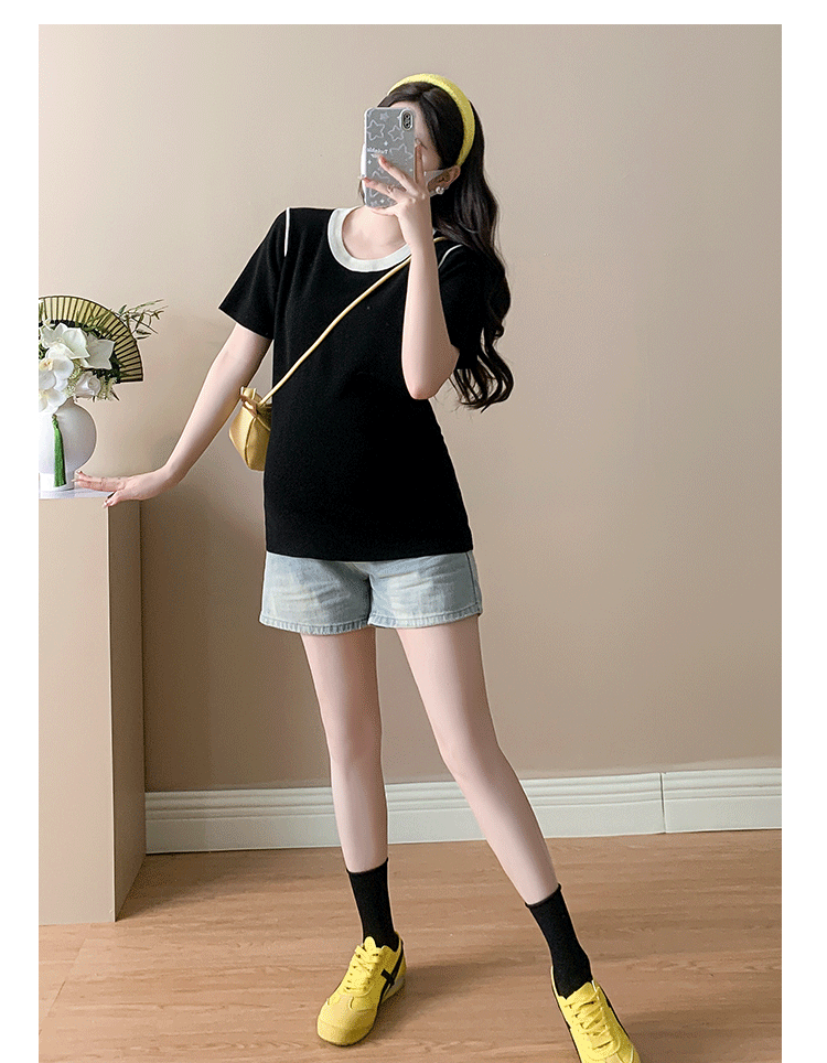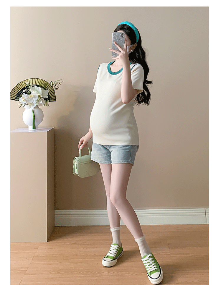 Топы для беременных, модные для маскировки живота беременных, лето 2025, новая универсальная тонкая футболка с короткими рукавами, шорты, женский тонкий стиль