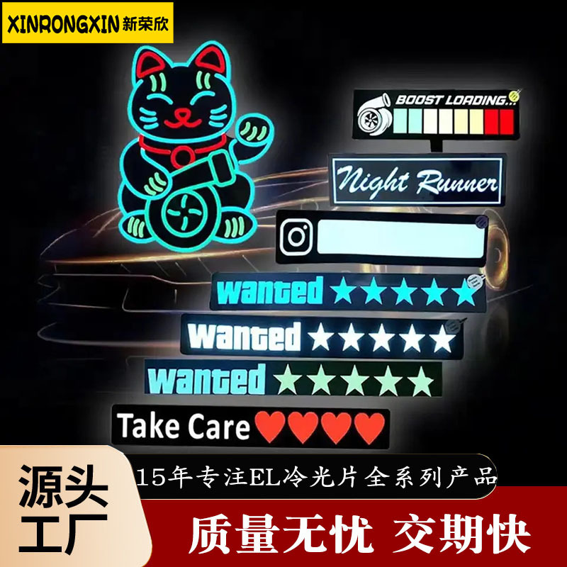 工厂生产Wanted车贴客户新款Wanted发光车贴EL发光车标LED车身贴