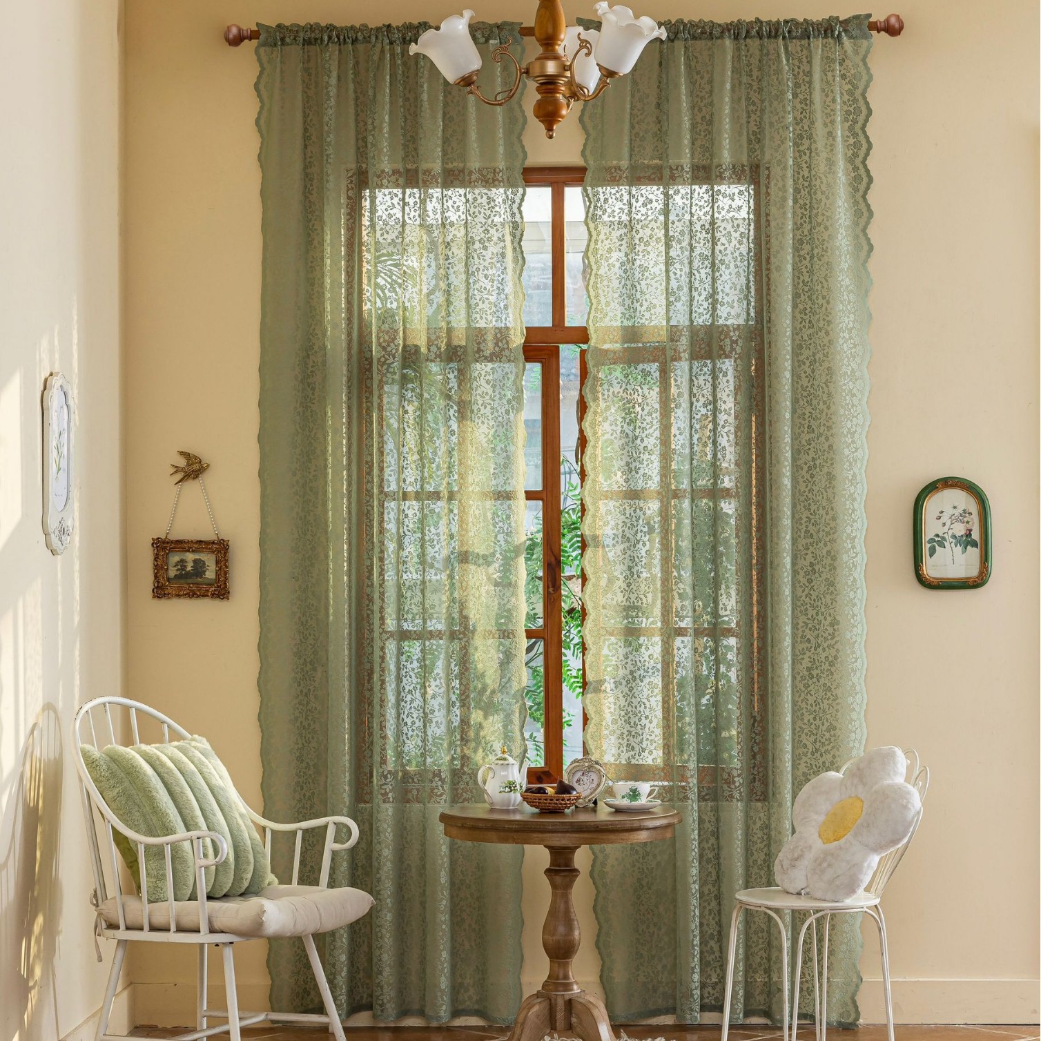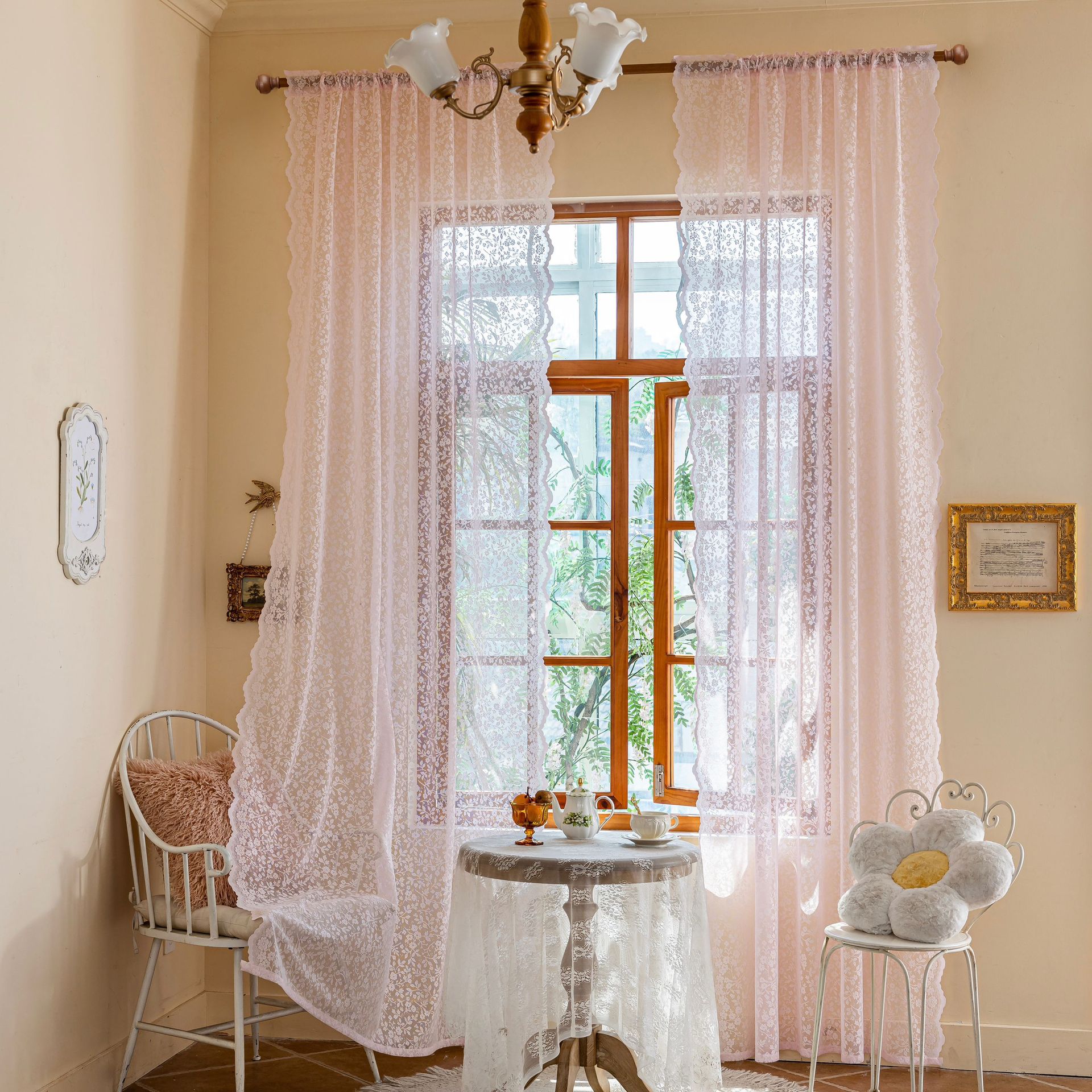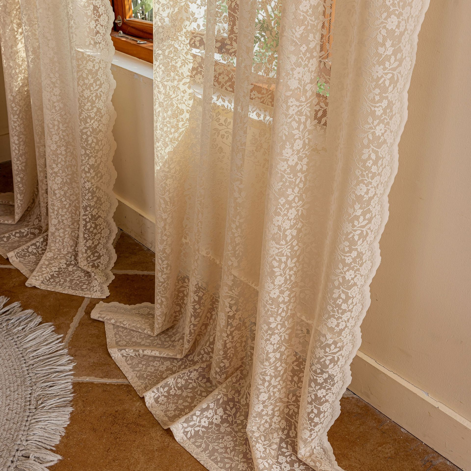 Новая полупрозрачная штора из кружева с цветочным узором и волнистым краем для гостиной или балкона, изготовленная по технологии перфорации, для трансграничной электронной коммерции на Amazon.