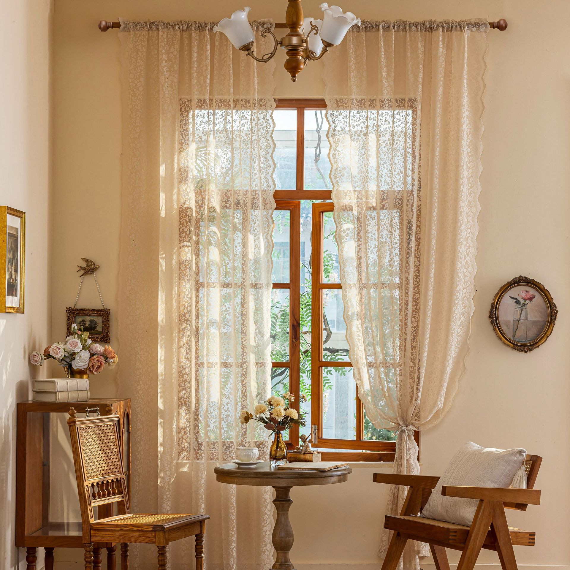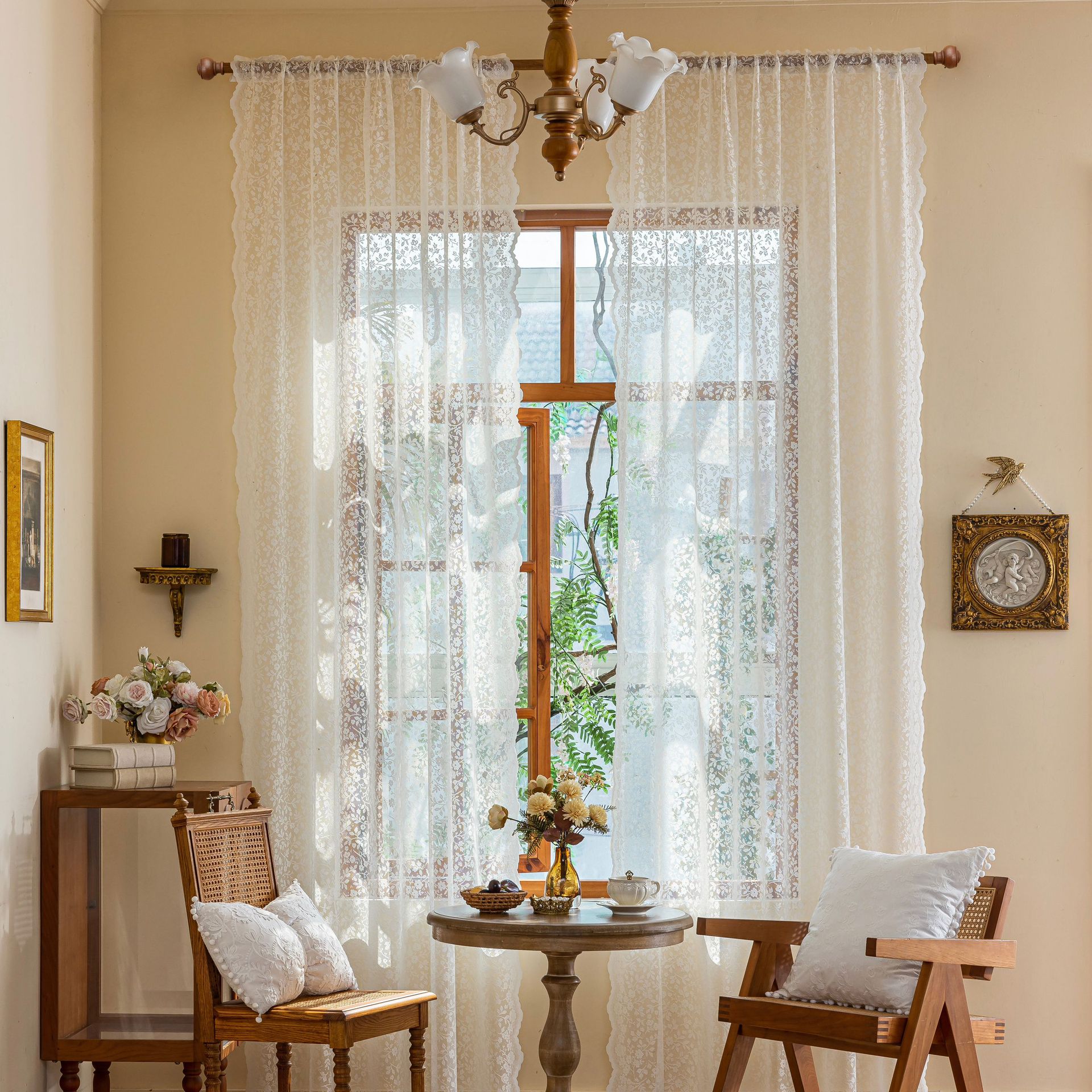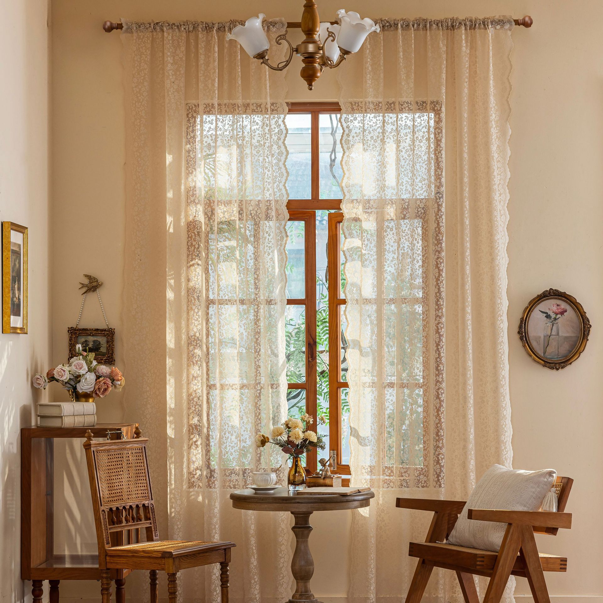 Новая полупрозрачная штора из кружева с цветочным узором и волнистым краем для гостиной или балкона, изготовленная по технологии перфорации, для трансграничной электронной коммерции на Amazon.