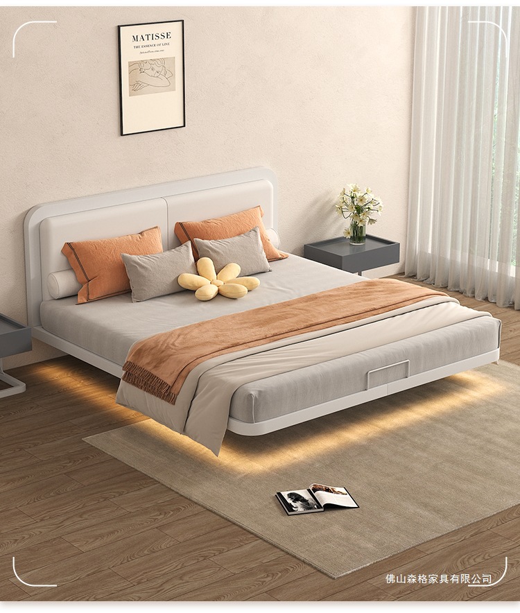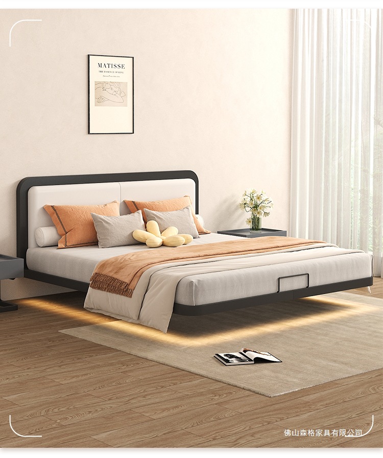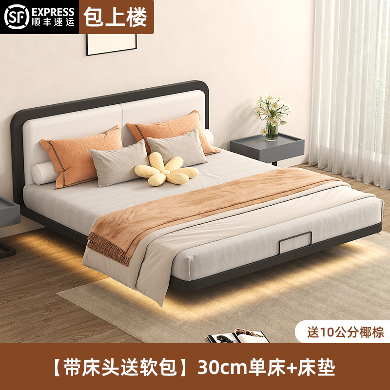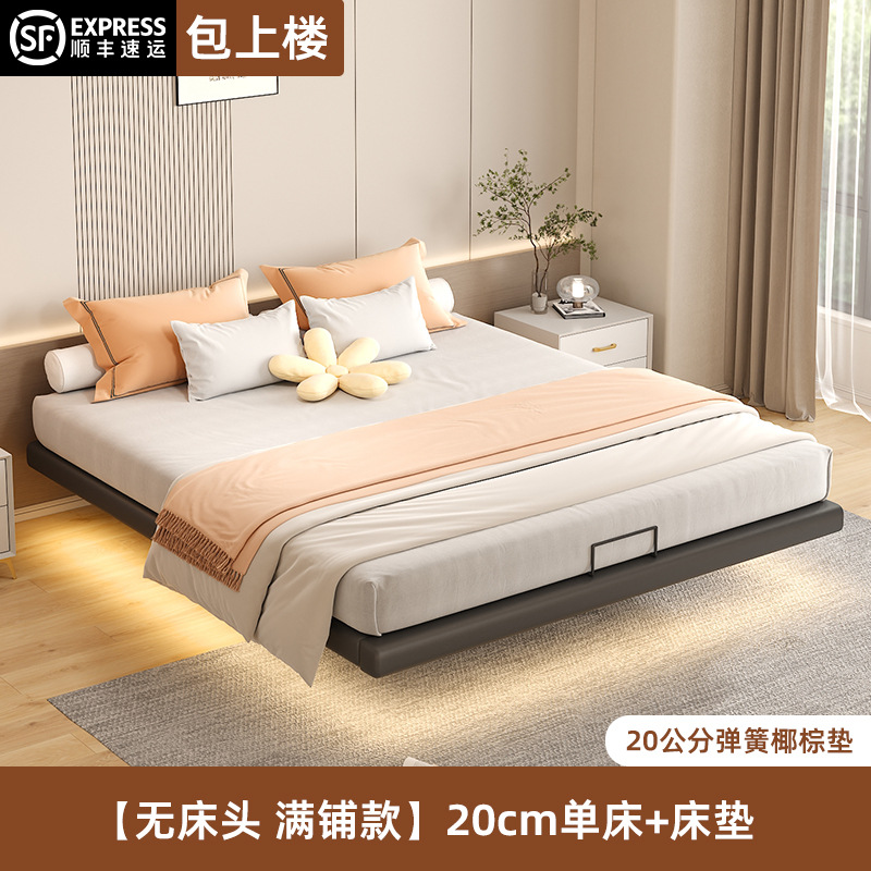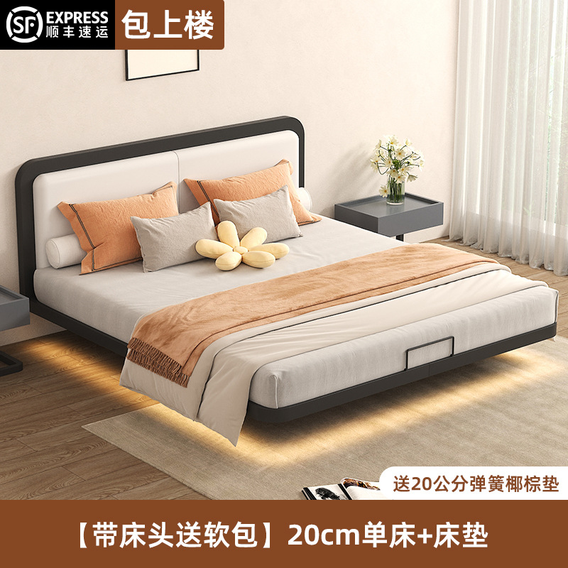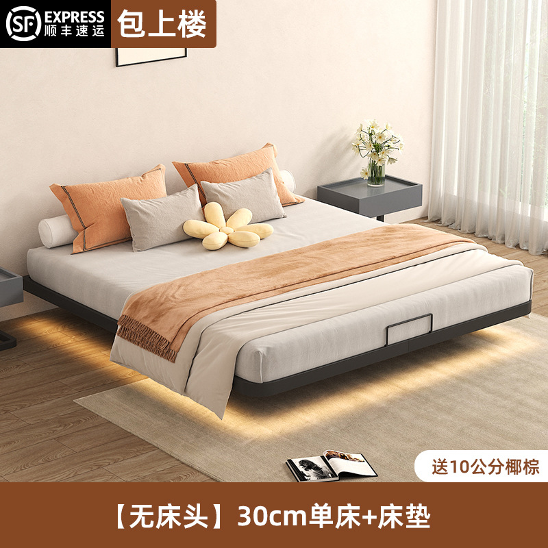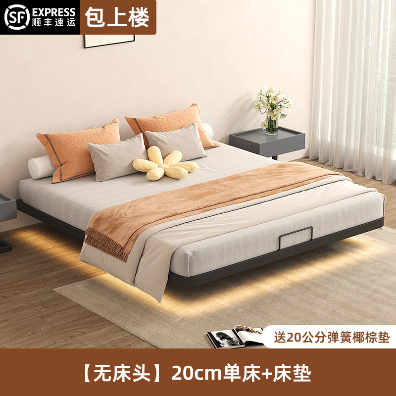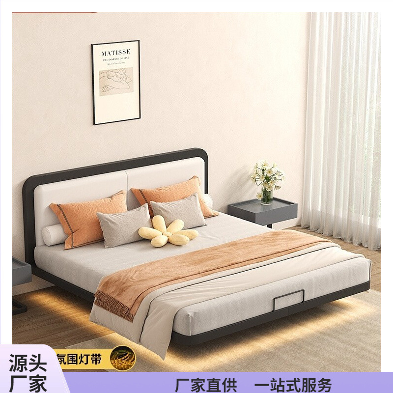 Современная простая подвесная кровать без прикроватной рамы для арендной комнаты с атмосферной двуспальной или односпальной кроватью для главной спальни