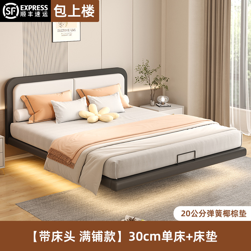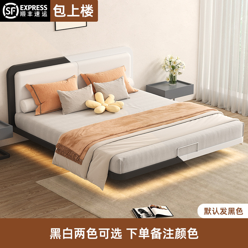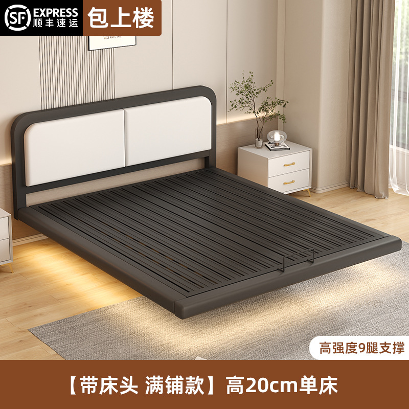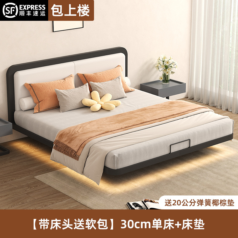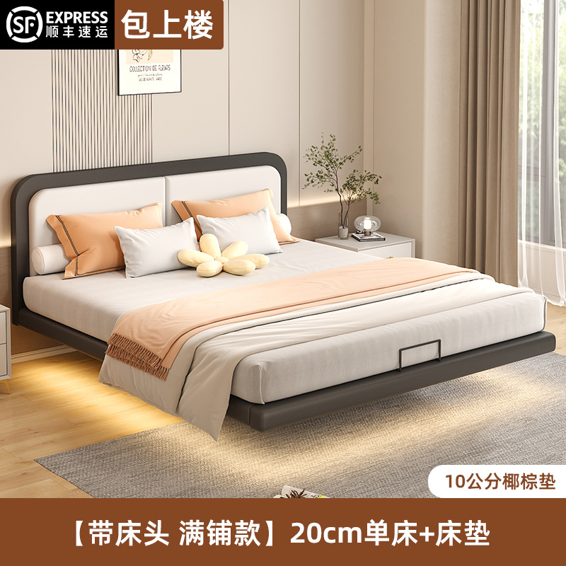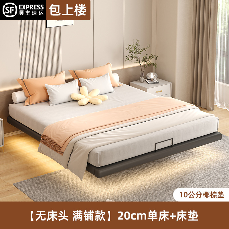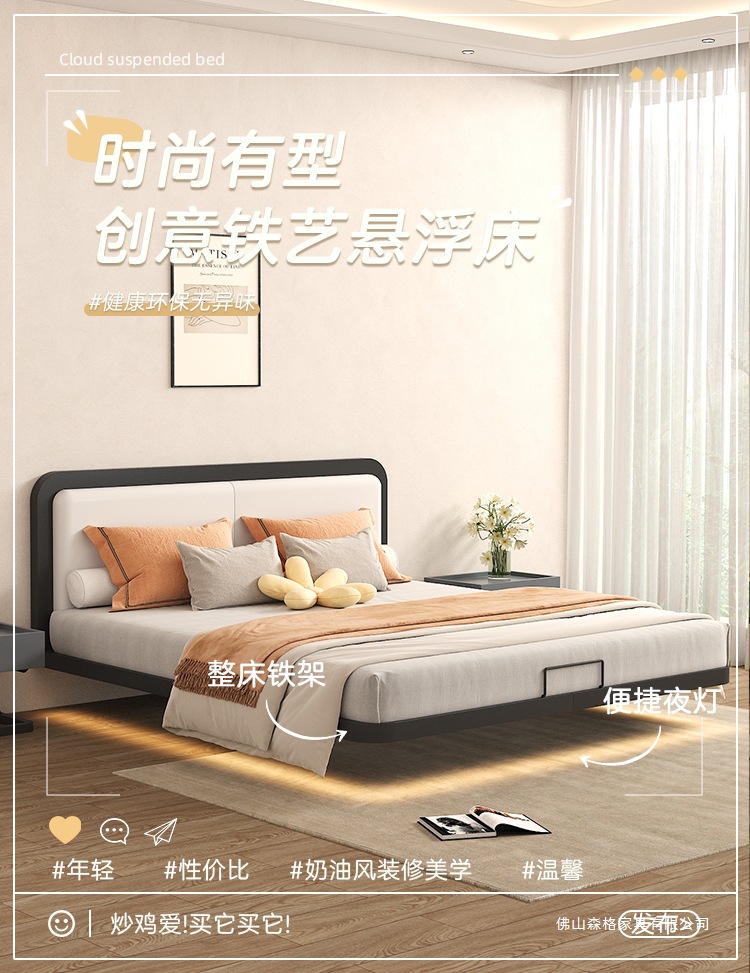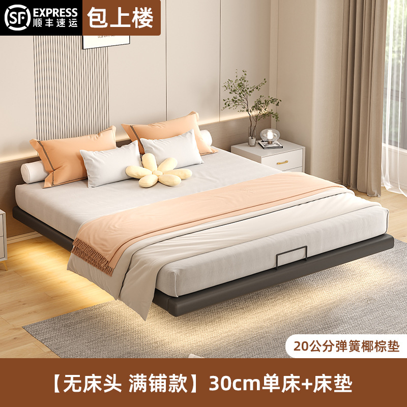Современная простая подвесная кровать без прикроватной рамы для арендной комнаты с атмосферной двуспальной или односпальной кроватью для главной спальни