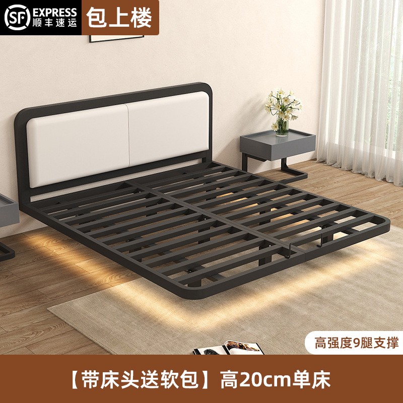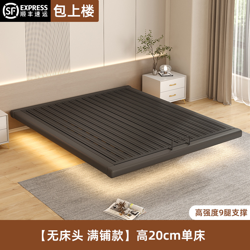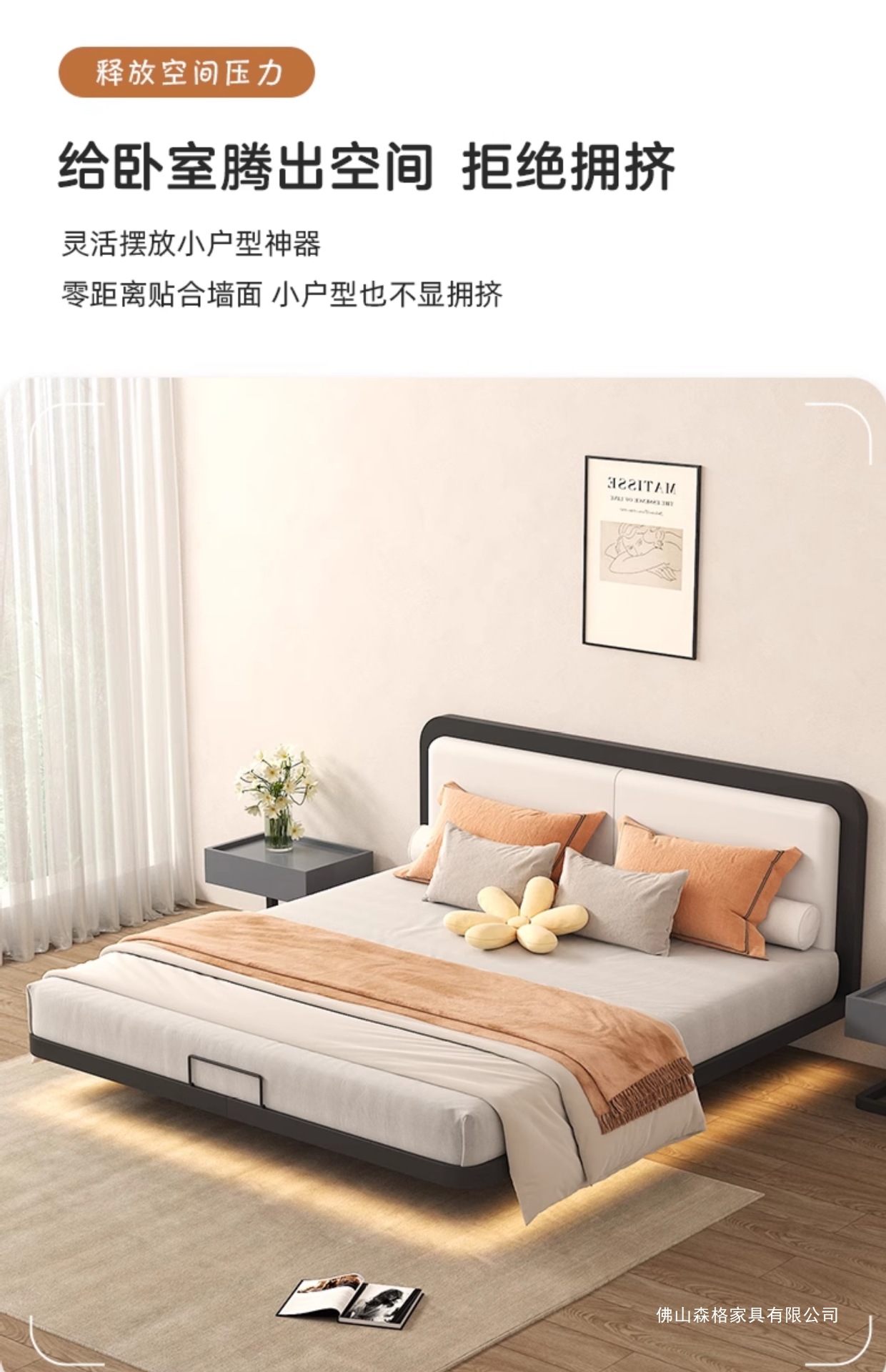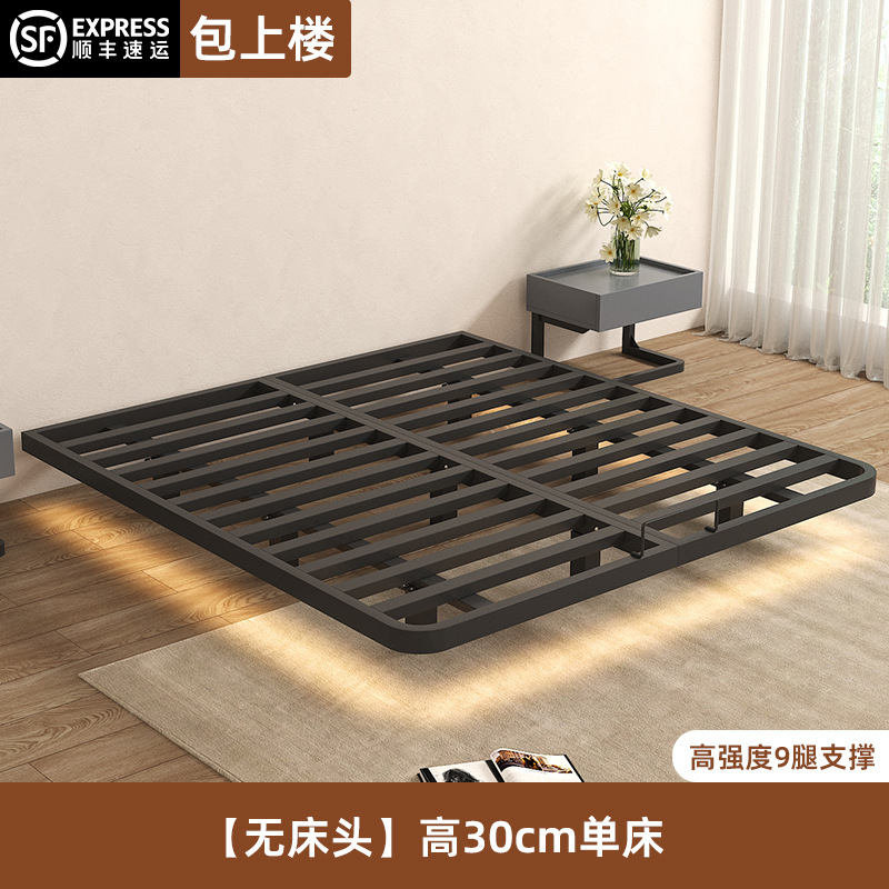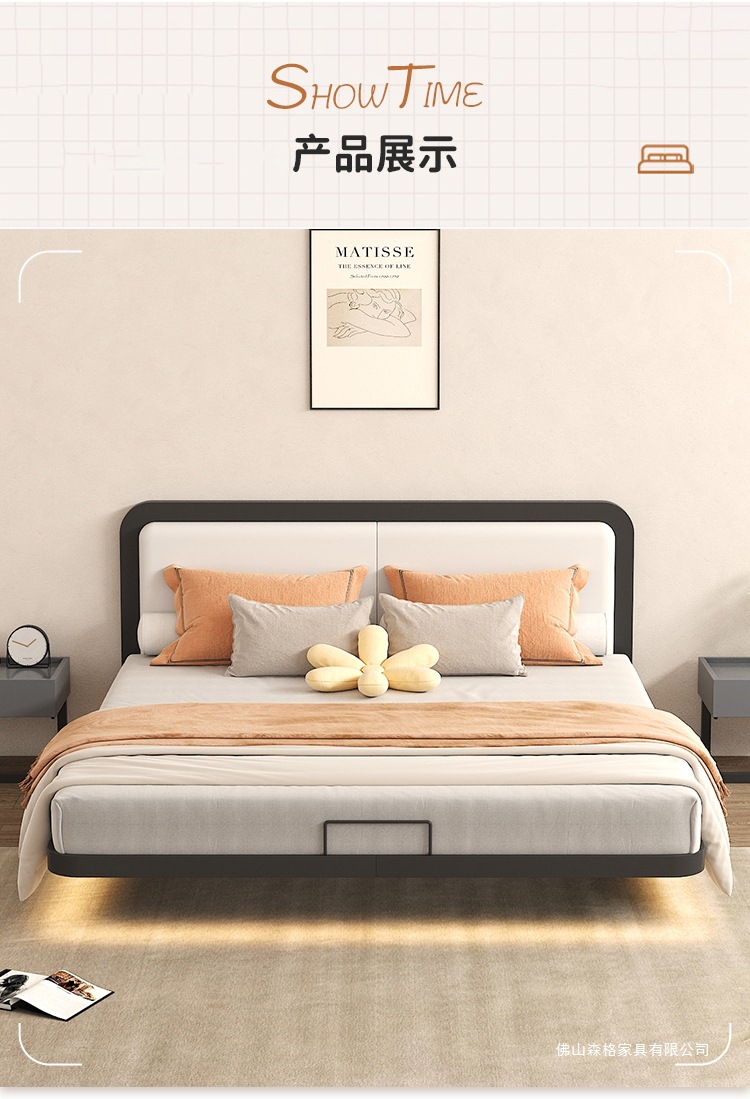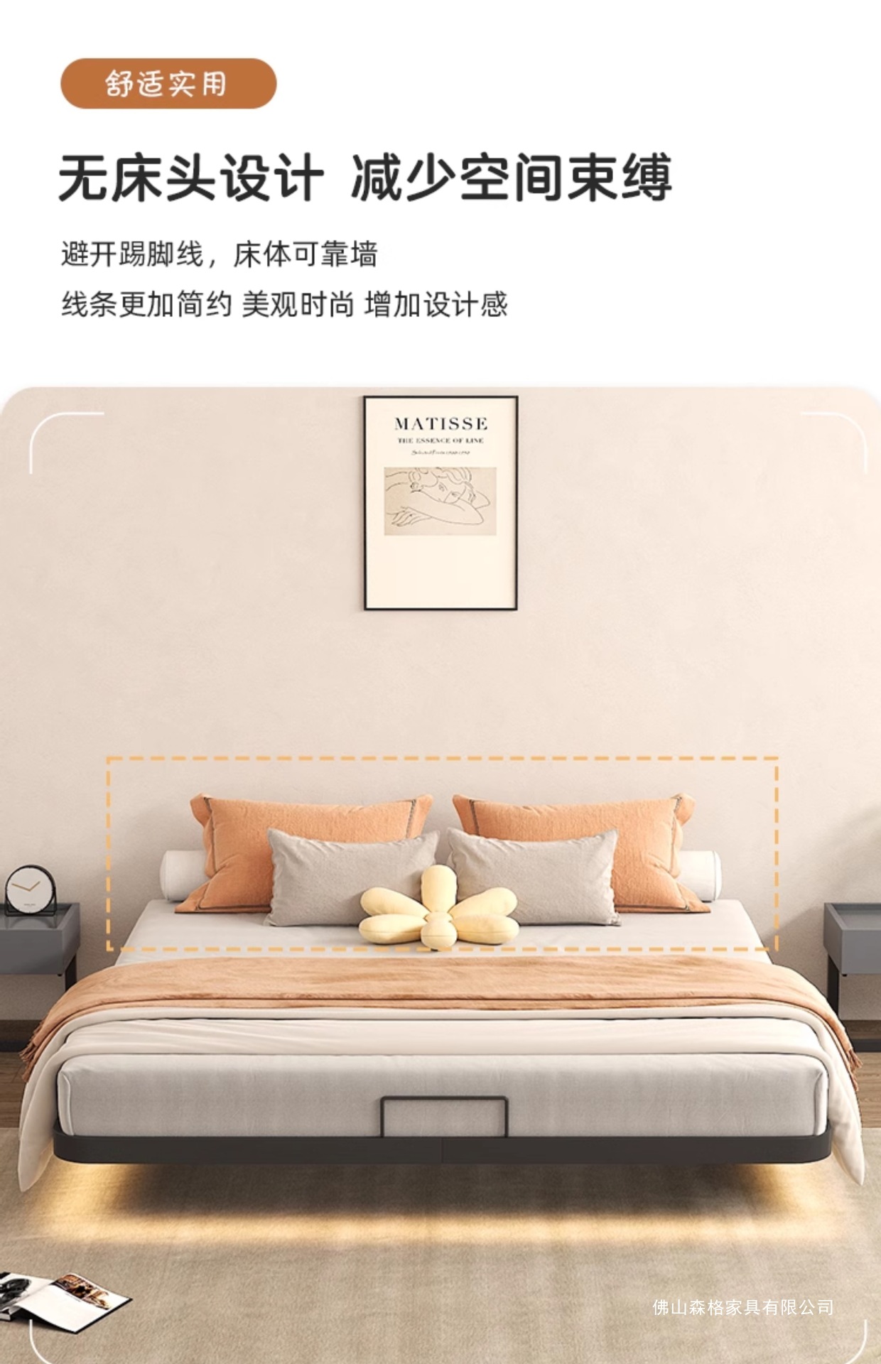 Современная простая подвесная кровать без прикроватной рамы для арендной комнаты с атмосферной двуспальной или односпальной кроватью для главной спальни
