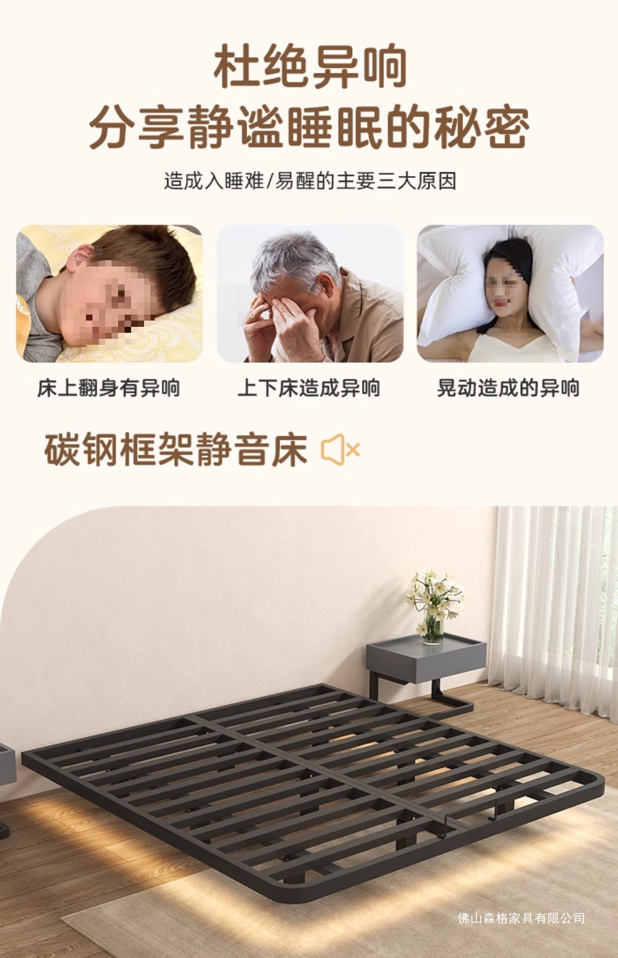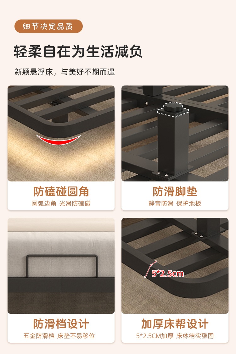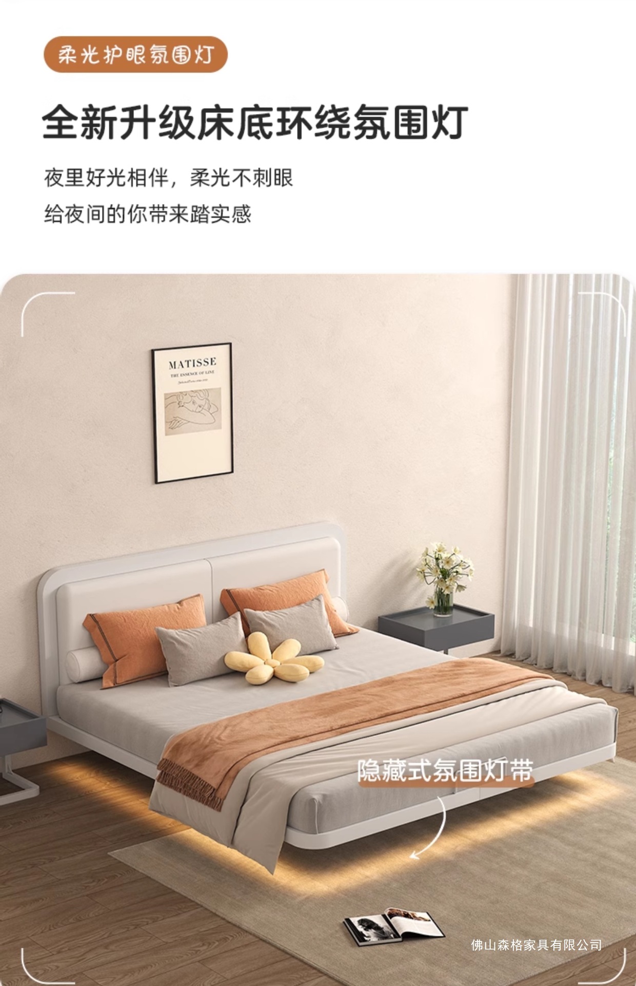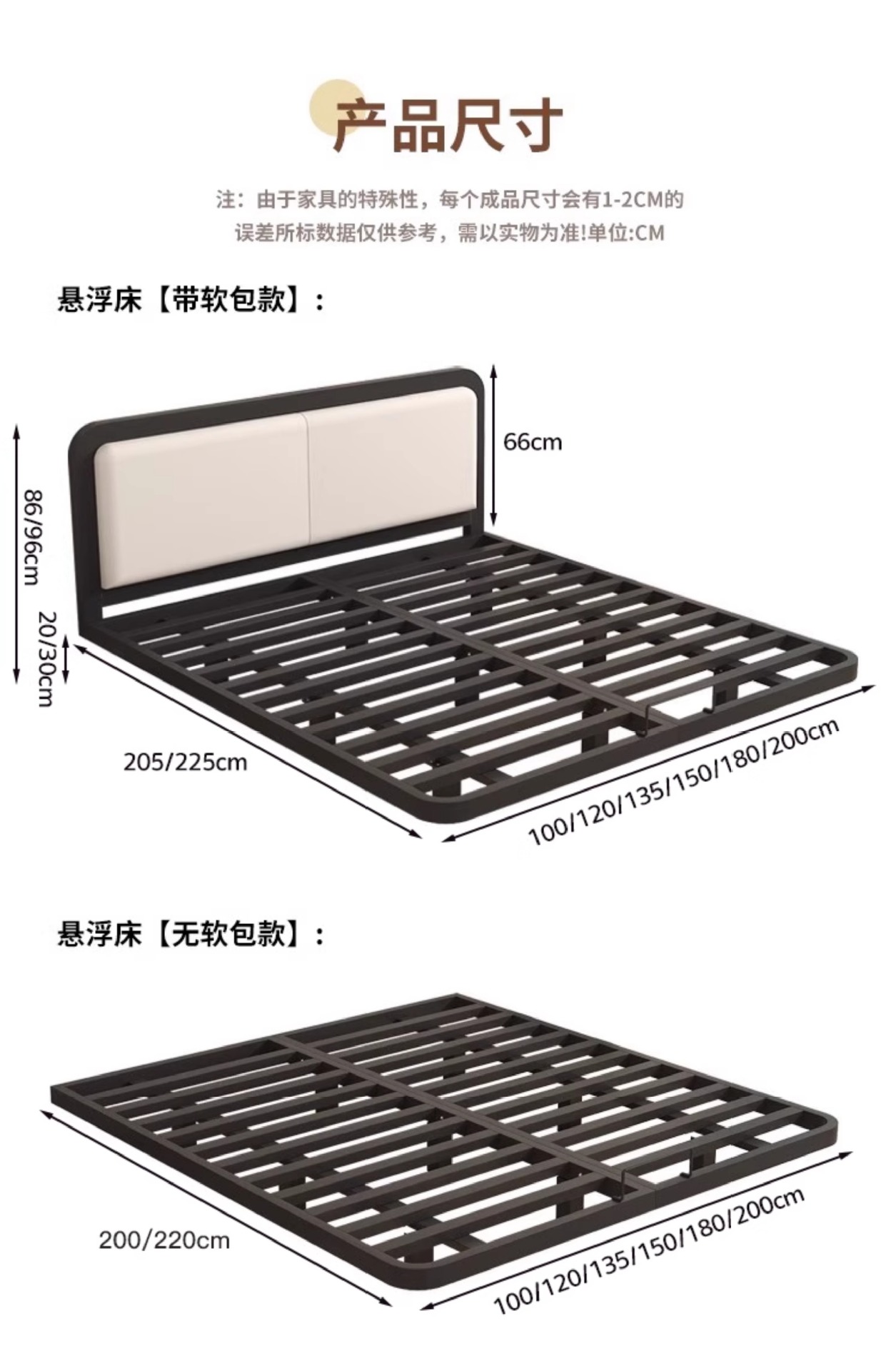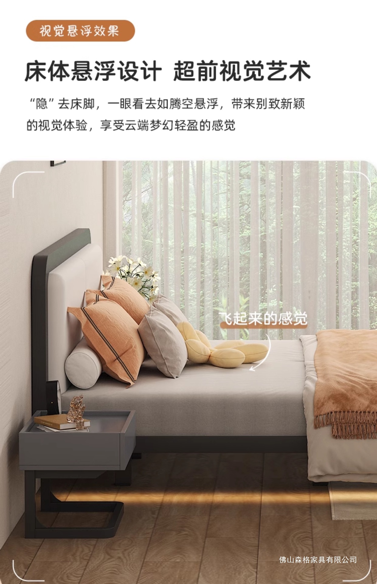 Современная простая подвесная кровать без прикроватной рамы для арендной комнаты с атмосферной двуспальной или односпальной кроватью для главной спальни