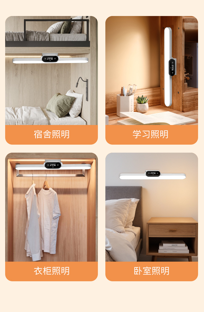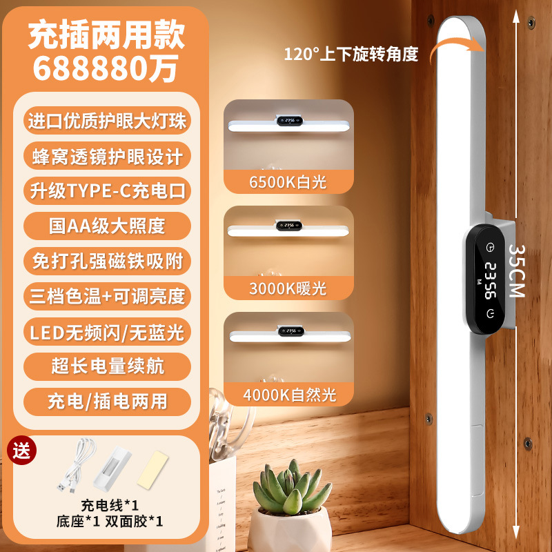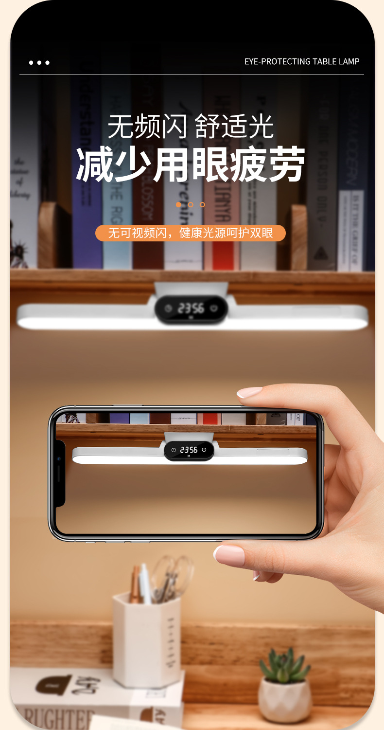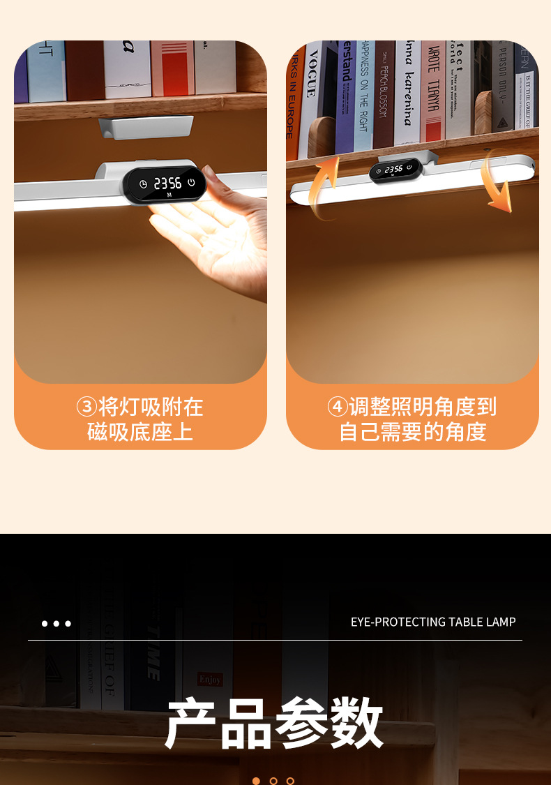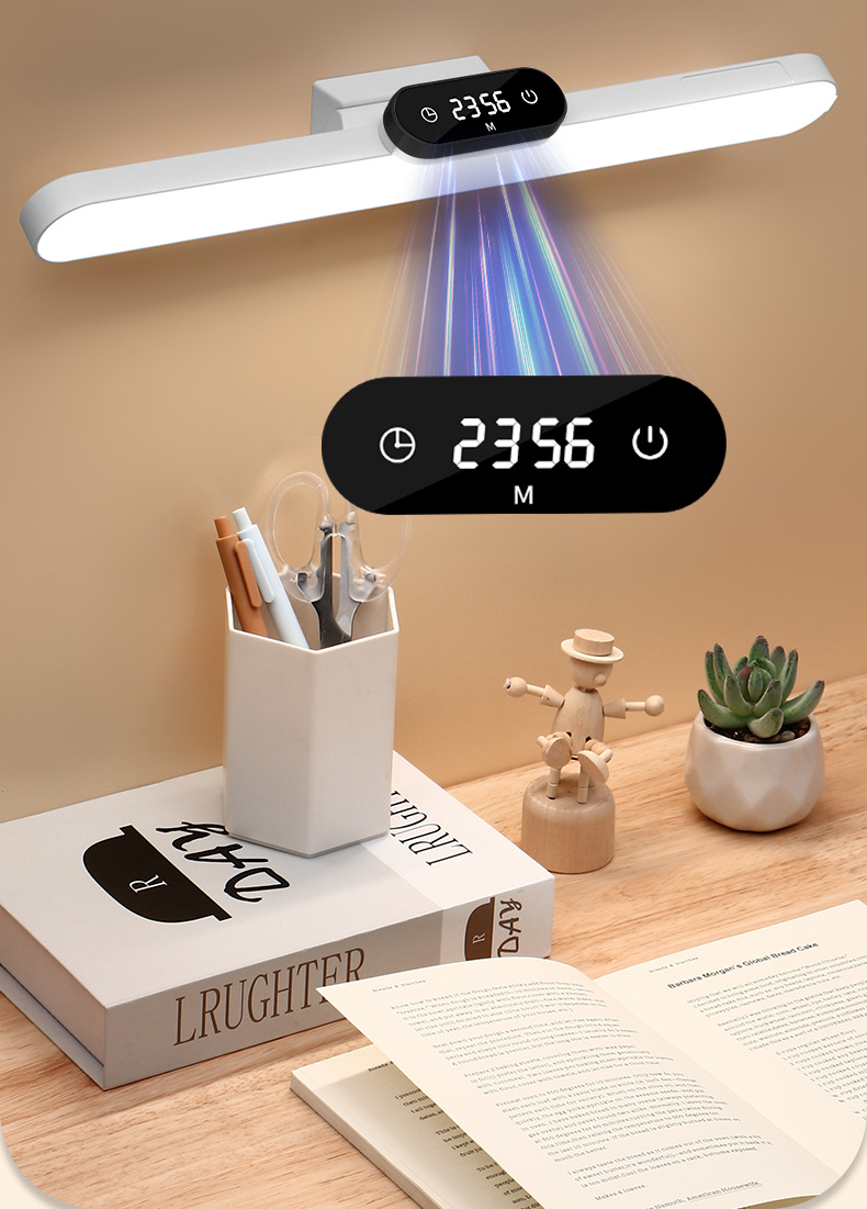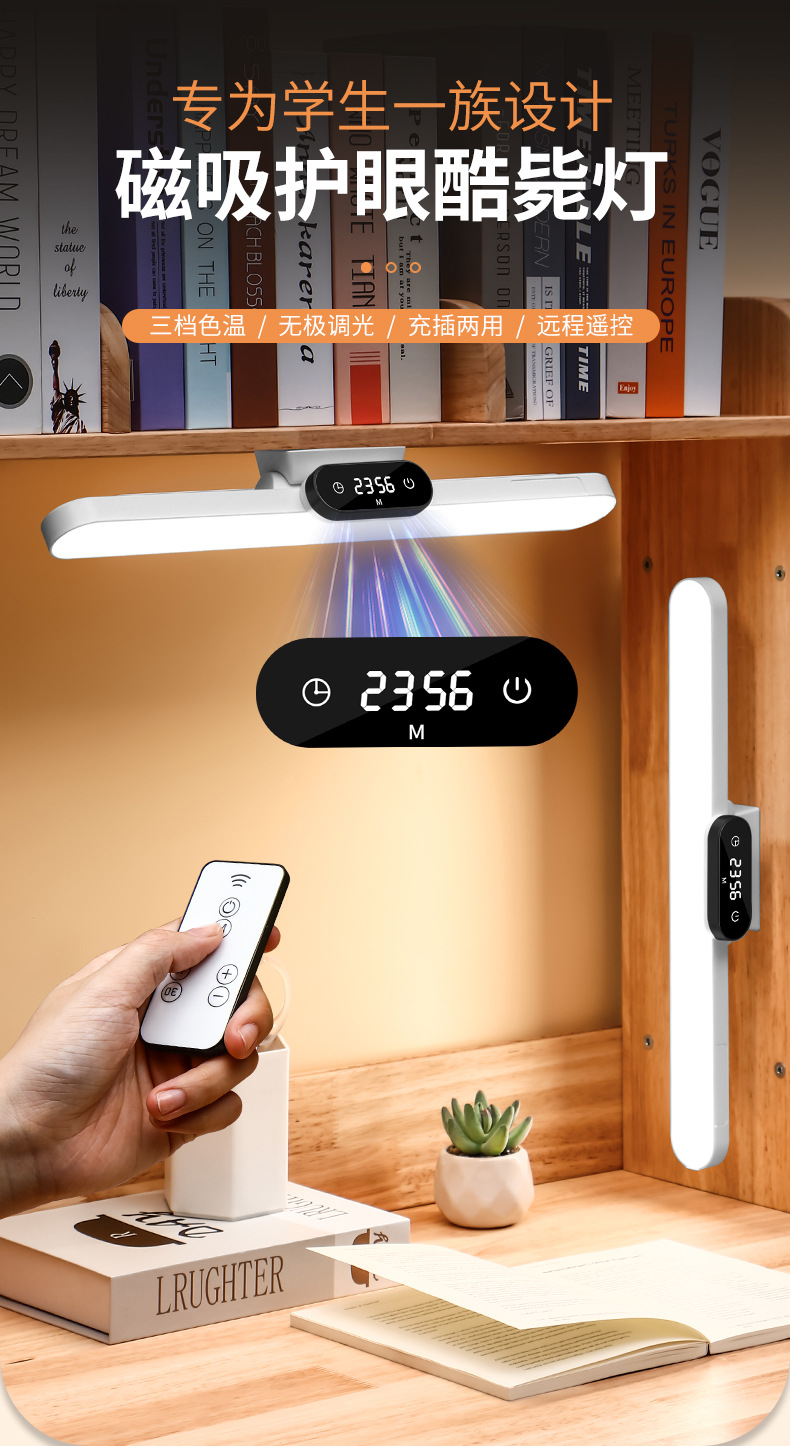 Настольная светодиодная лампа для трансграничной торговли с магнитными часами, крутая лампа с поворотным механизмом, подходит для общежитий и школ, ночник для защиты глаз, фоновая подсветка.
