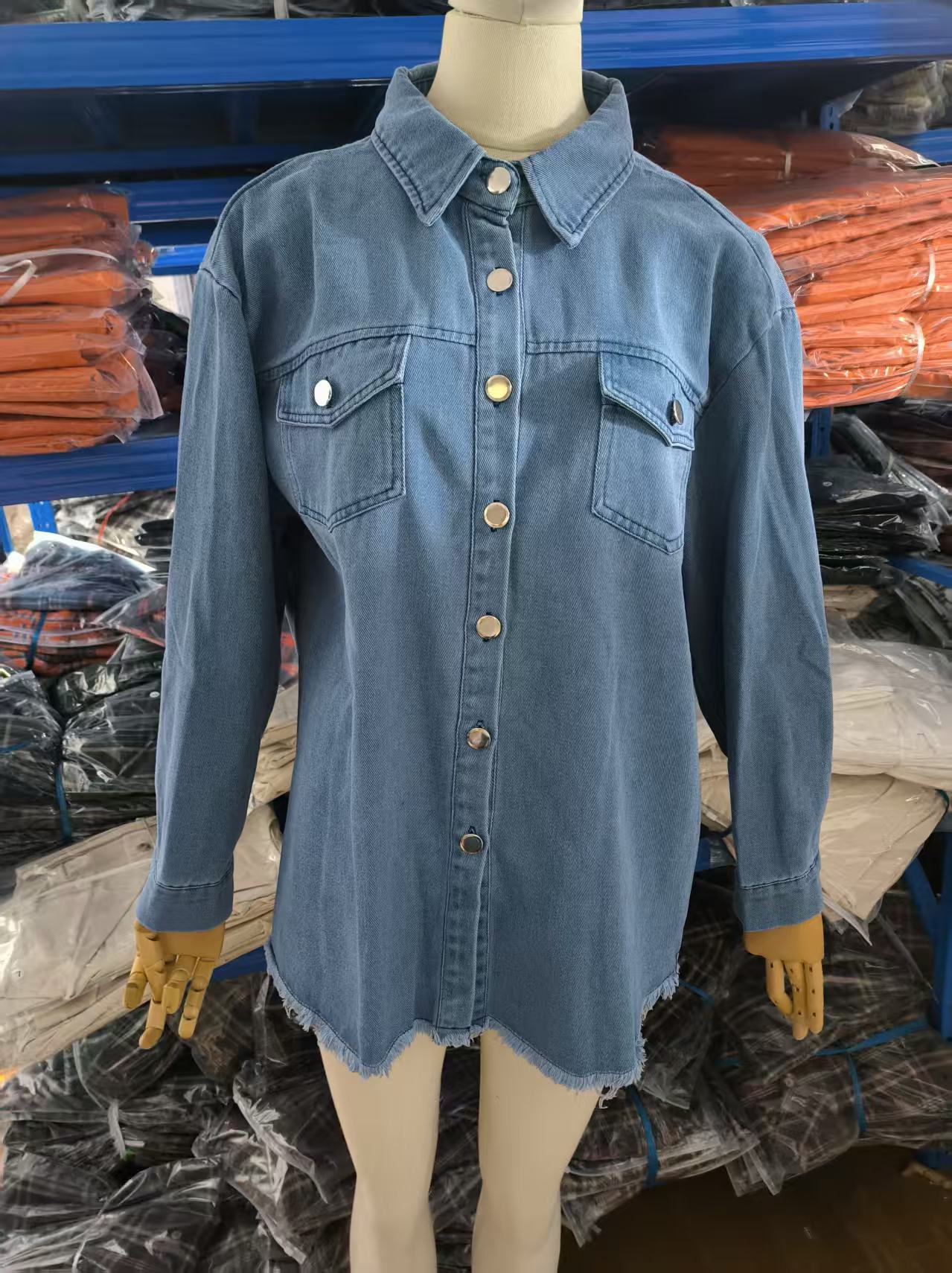Новая стильная джинсовая куртка-рубашка для женщин, европейская и американская осенне-зимняя куртка с потертым краем в уличном стиле для женщин
