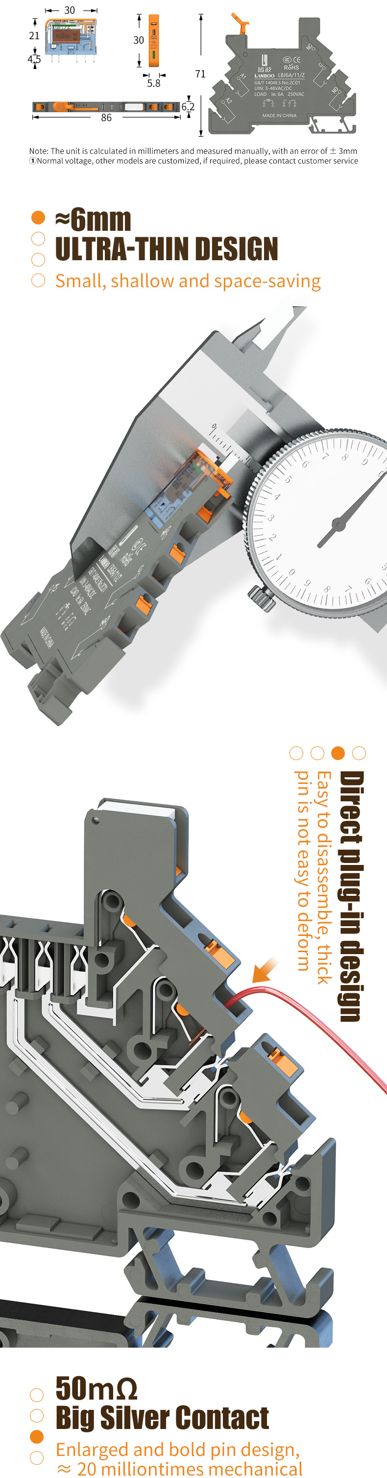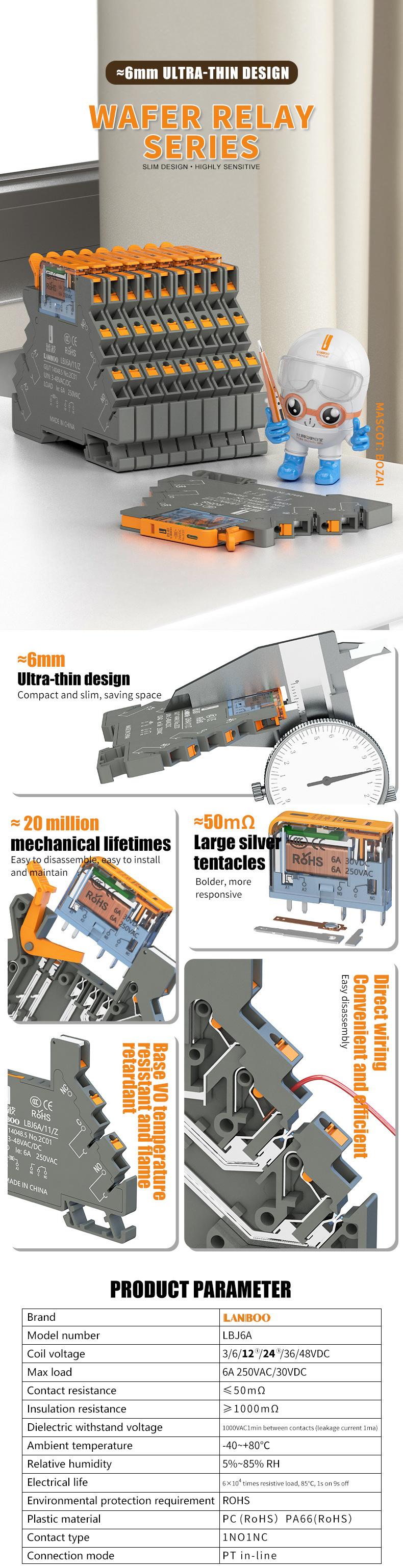 Реле Blue Wave J6A, ультратонкое, прямая поставка со склада, DC24V, DC6V, DC12, тонкий модуль, высокий срок службы, промежуточное реле