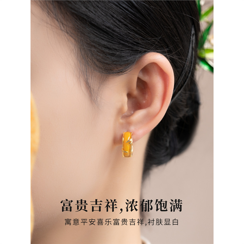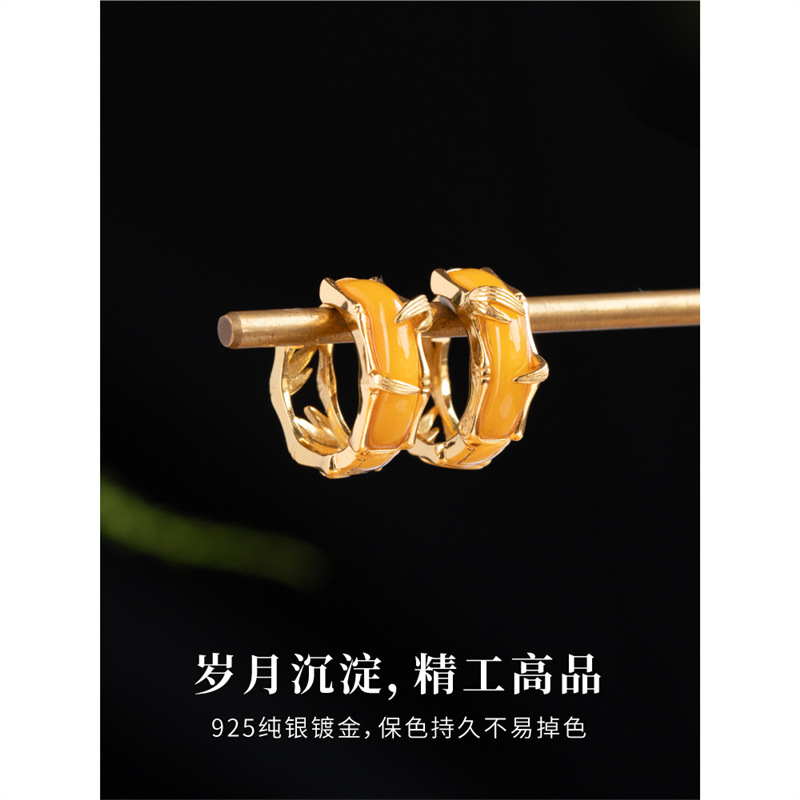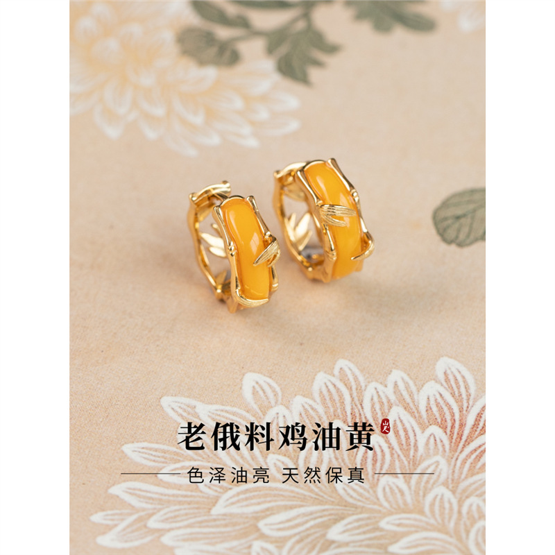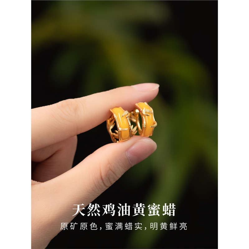 Желтые серьги из стерлингового серебра, натуральные масляно-желтые серьги из пчелиного воска, высококачественные легкие роскошные янтарные серьги, серьги из стерлингового серебра с листьями бамбука