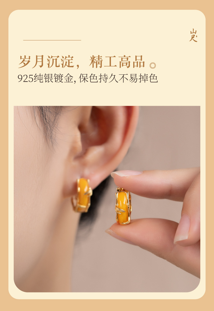 [Натуральный куриний жир, желтый пчелиный воск] Бамбуковые серьги Мяо