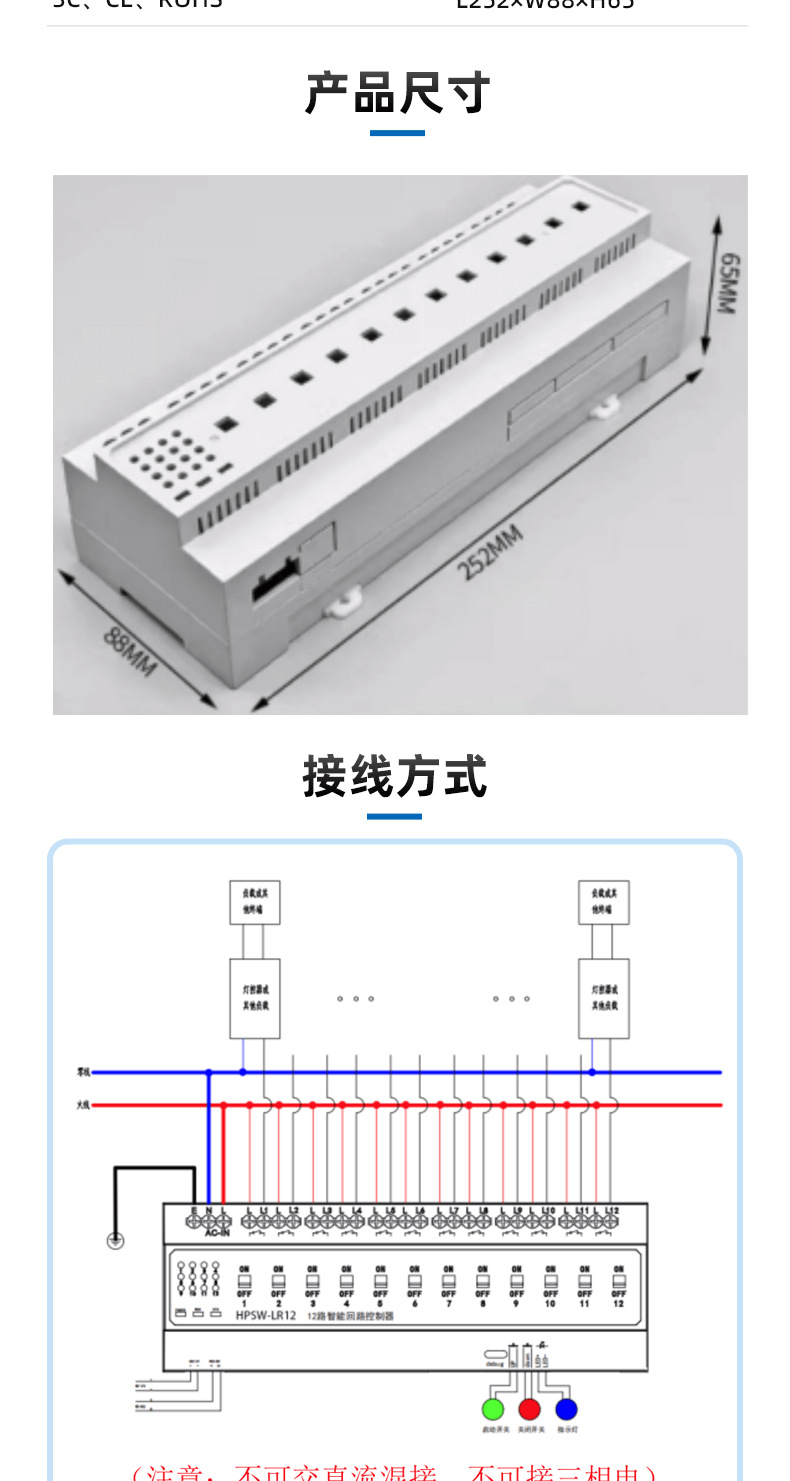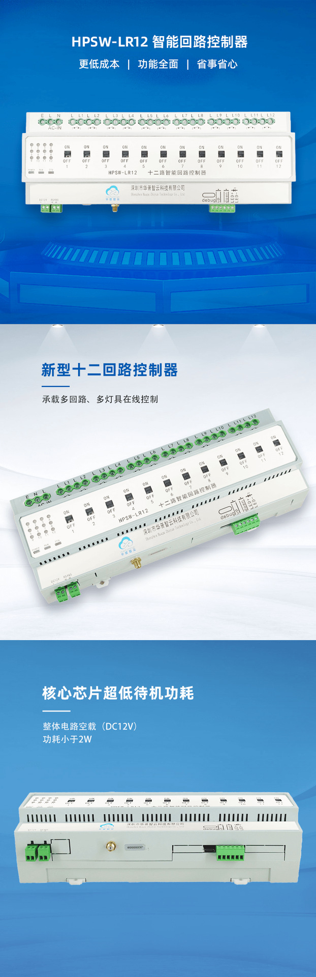 Интеллектуальный контроллер с 12 цепями, светодиодное интеллектуальное освещение, промышленное оборудование для управления несколькими светильниками IoT HPSW-LR12