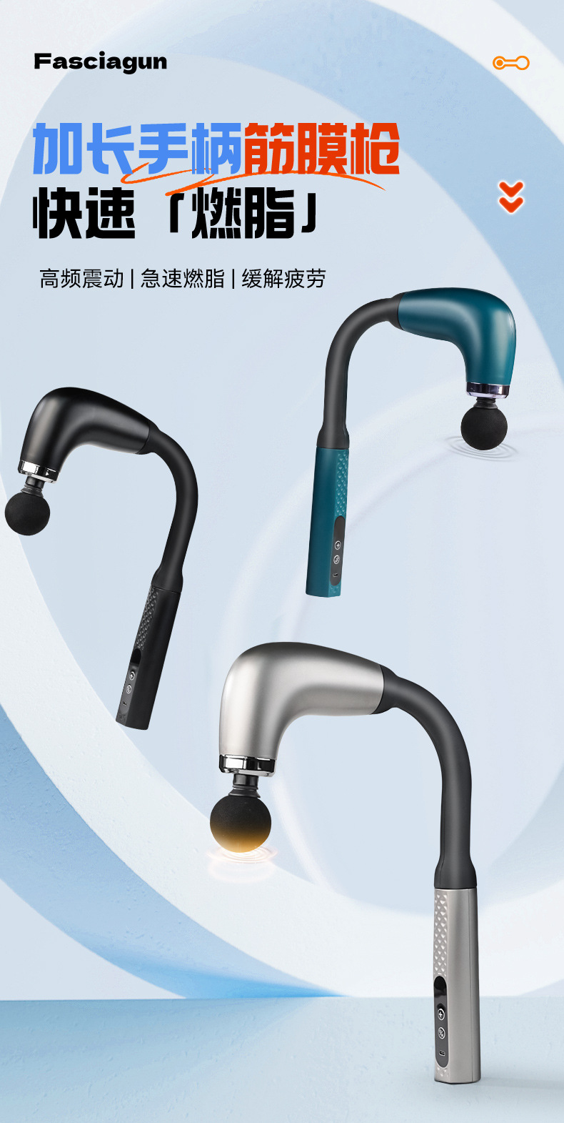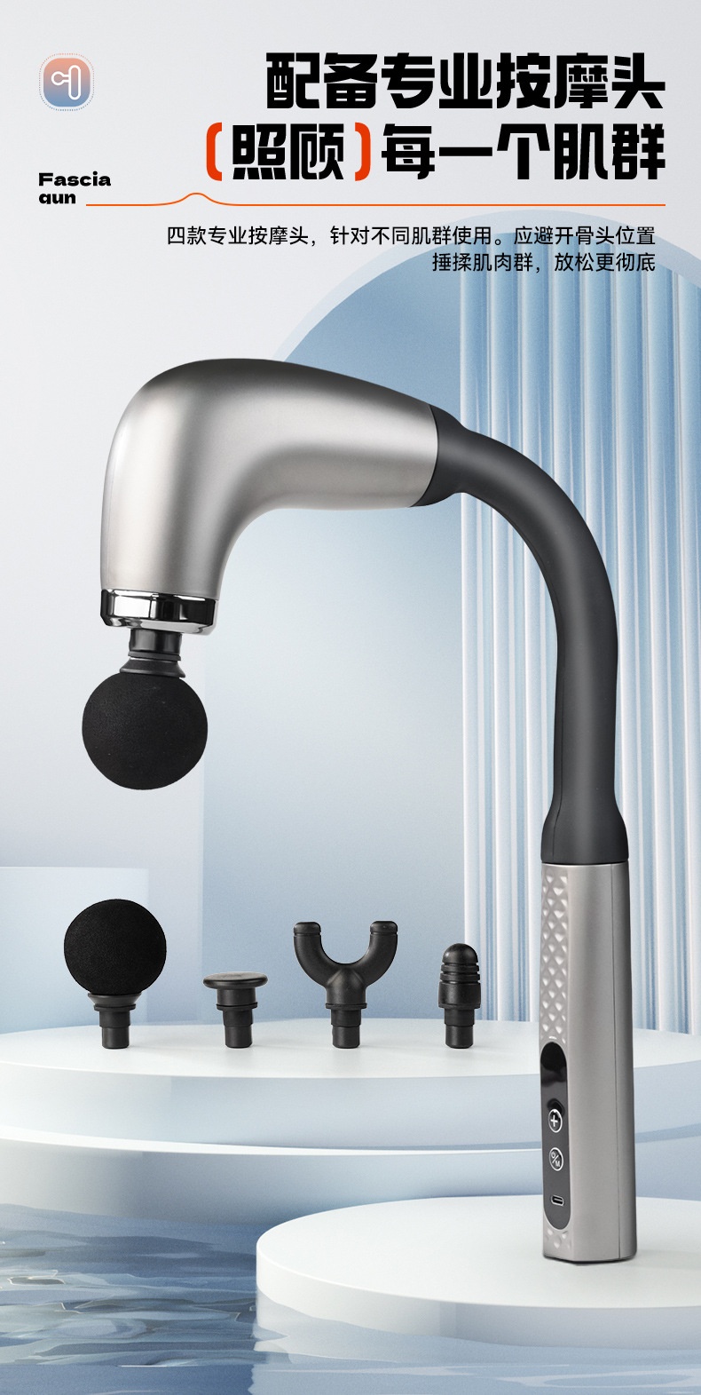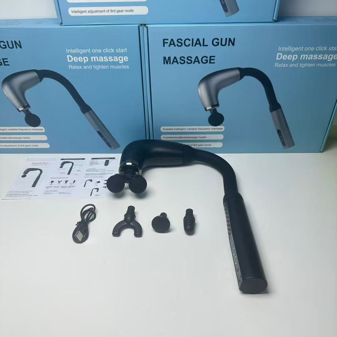 Электрический массажер-фасциальный пистолет U-образной формы для расслабления мышц, фитнеса, длительного массажа спины, с LCD-дисплеем, многоуровневый, бесшумный, профессиональный.