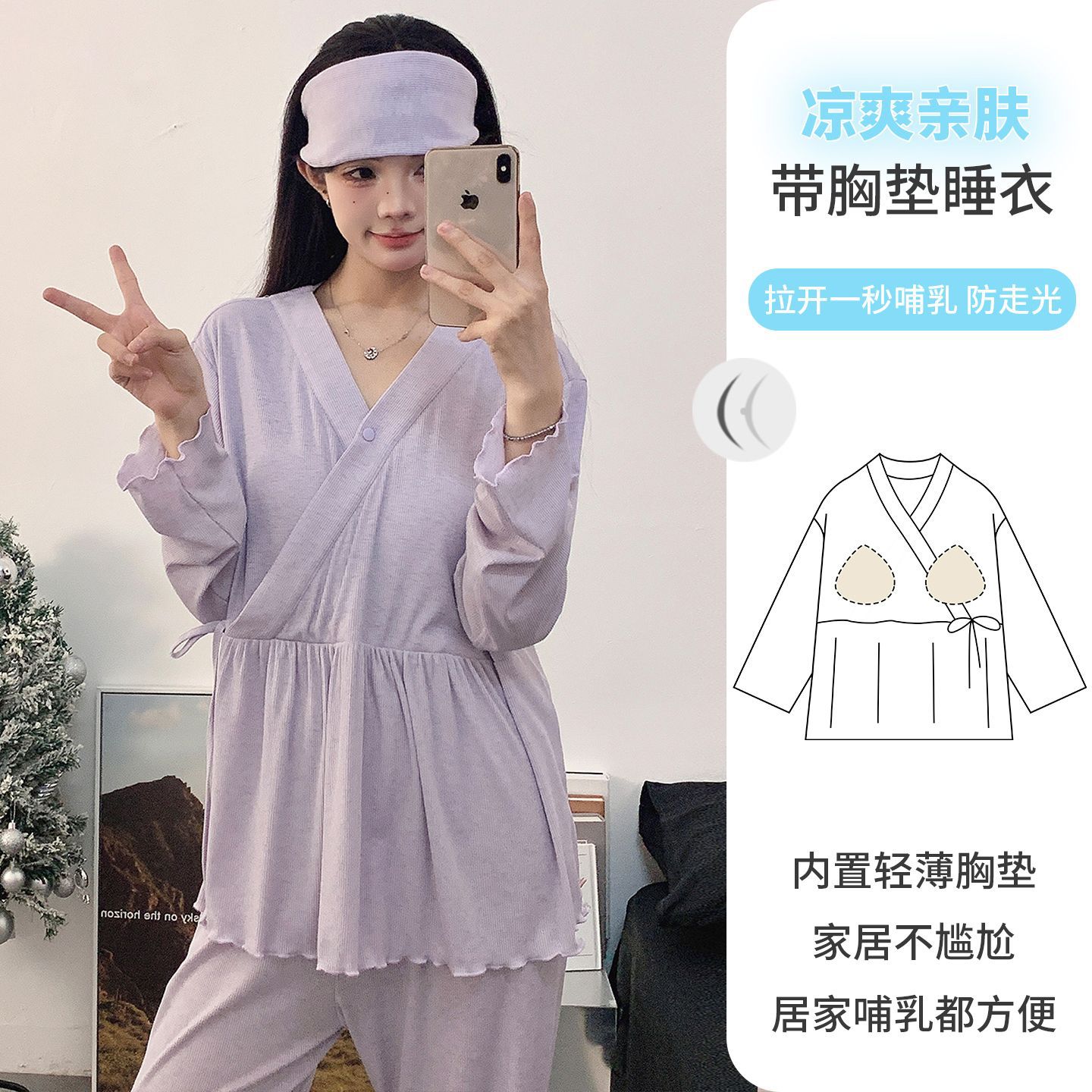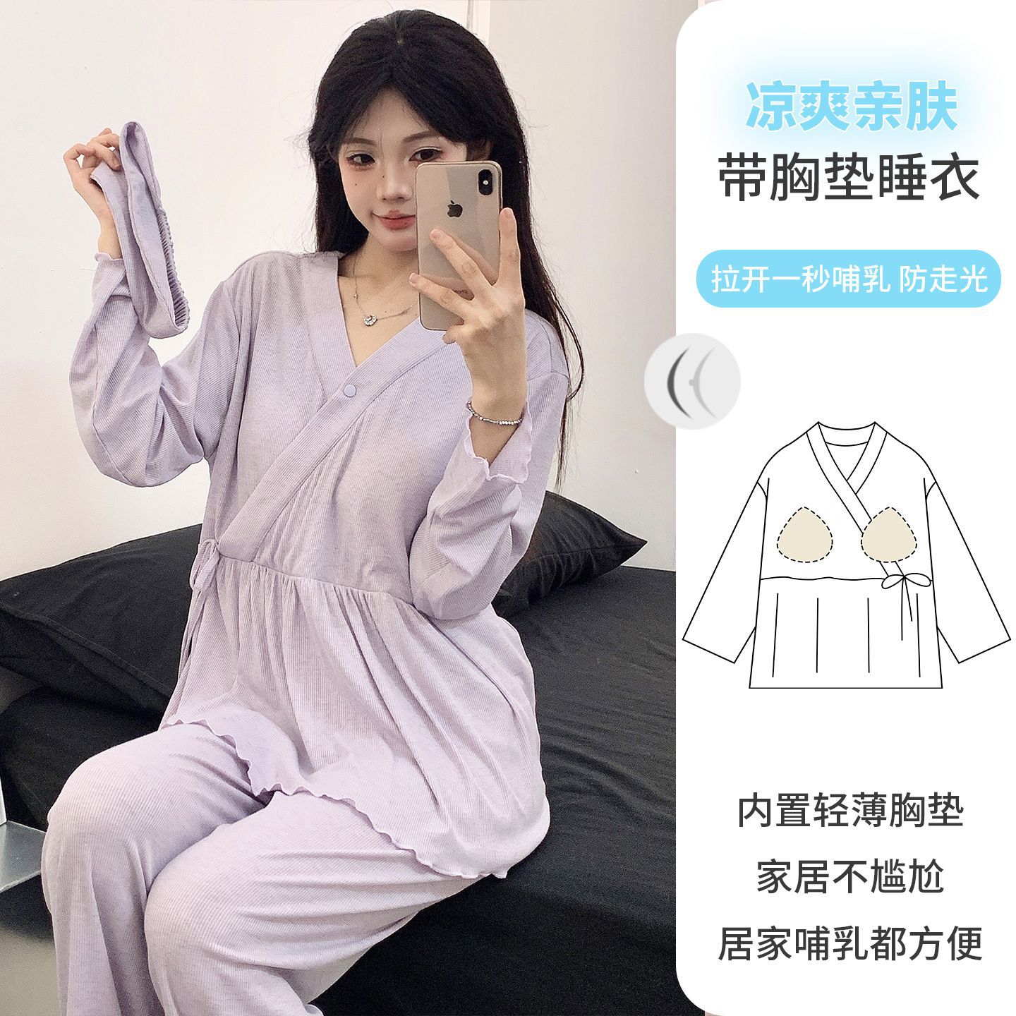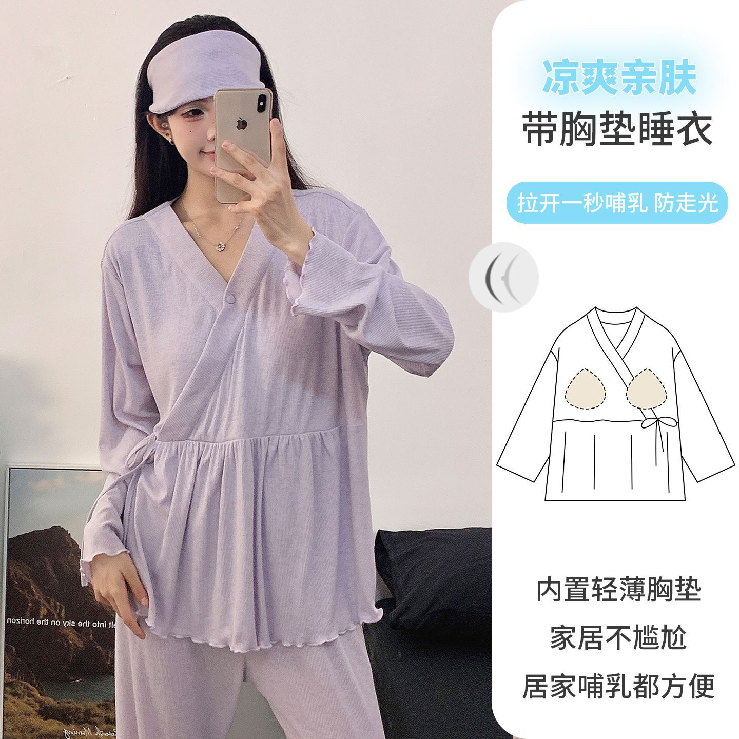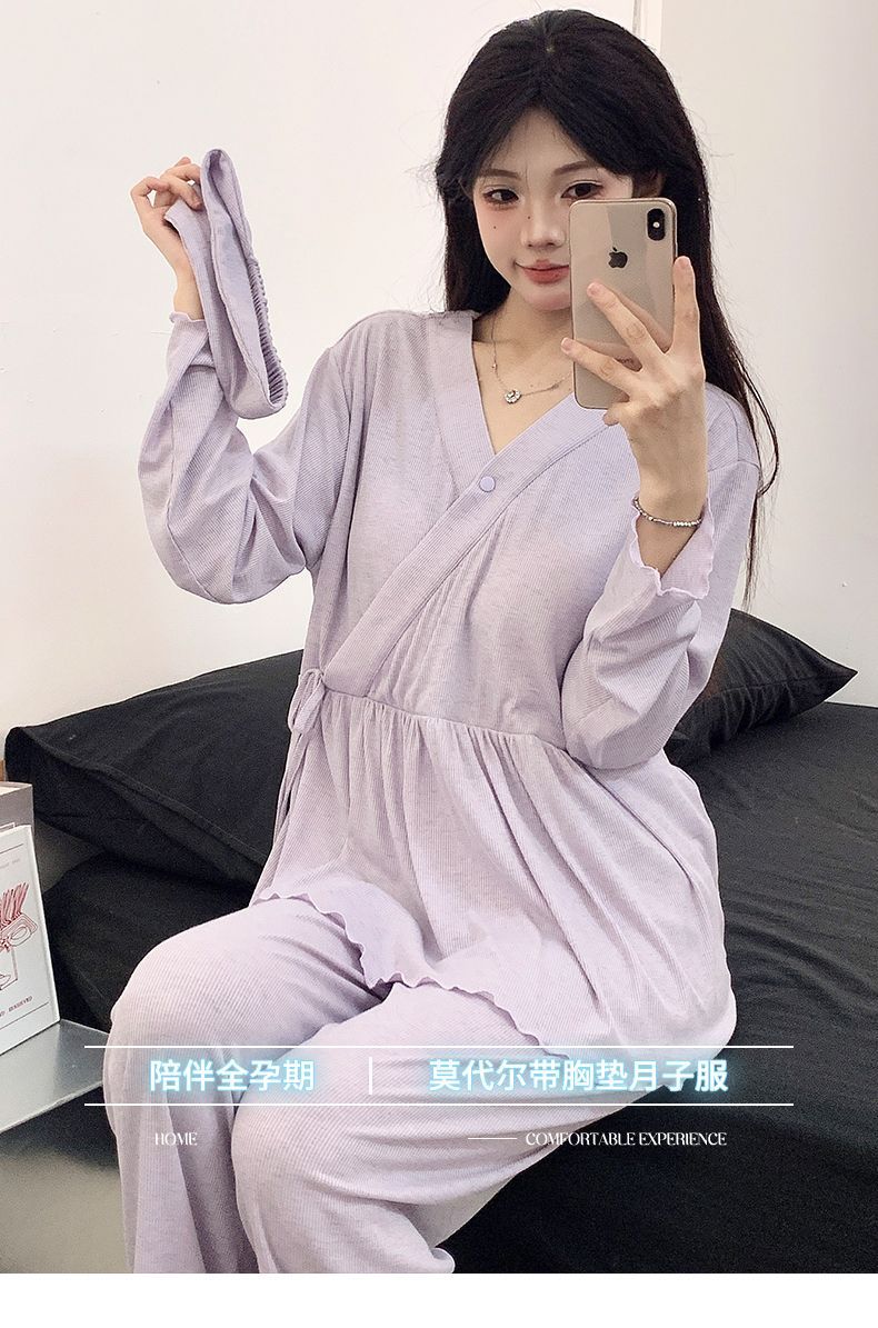 Летние модальные удобные пижамы для беременных 2025 года с заколкой и подушечкой для груди, нижнее белье не требуется, подходит для послеродового периода и кормления грудью.