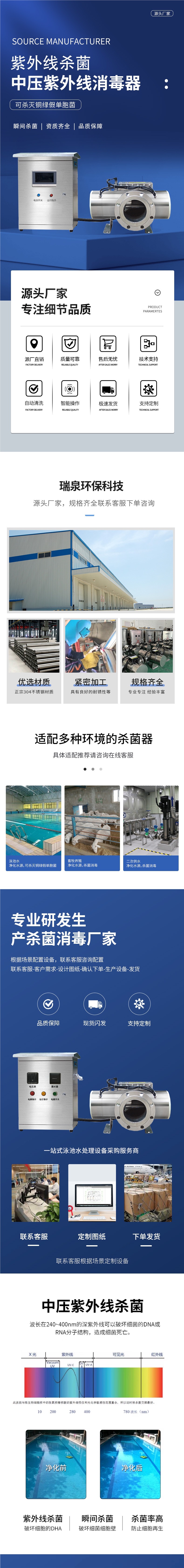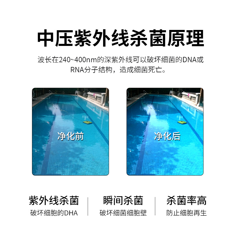 УФ-стерилизатор среднего давления для бассейнов, аквакультуры, бутилированной воды, патины, труб с перегрузкой тока, оборудование для дехлорации