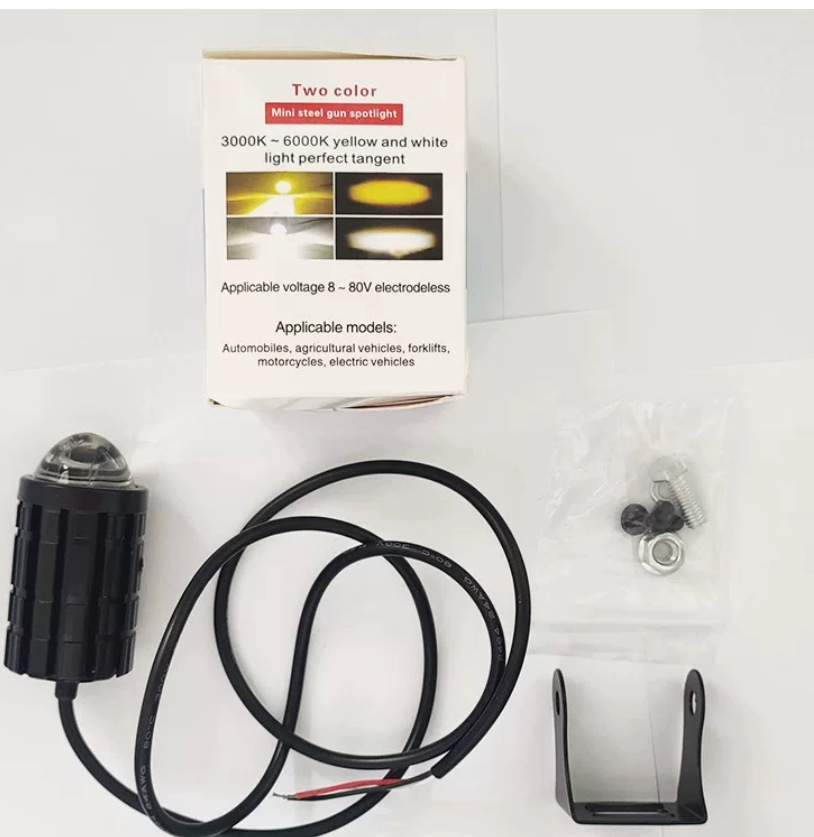 Прямые продажи с фабрики прожекторов для мотоциклов, высокая яркость, модифицированные внешние светодиодные фары для дальнего и ближнего света, двухцветная маленькая стальная защита пушки.