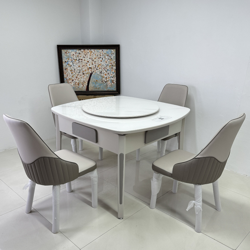 Обеденный стол для маджонга из цельного дерева, современный простой стол для маджонга, бесшумный многофункциональный бытовой электрический длинный стол