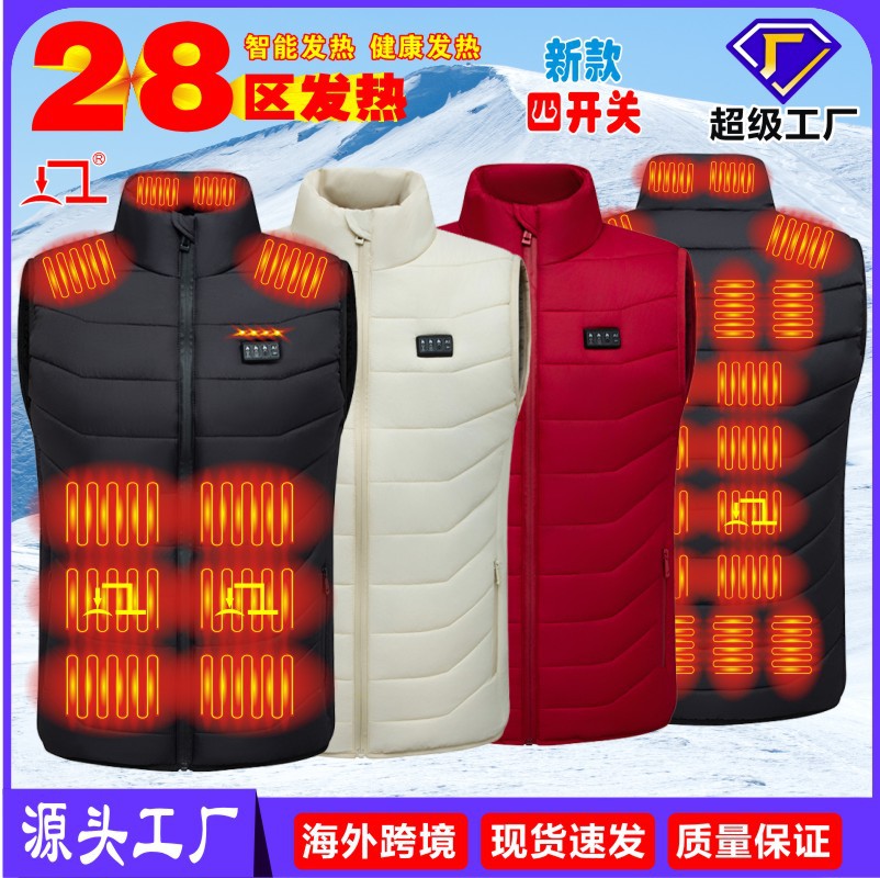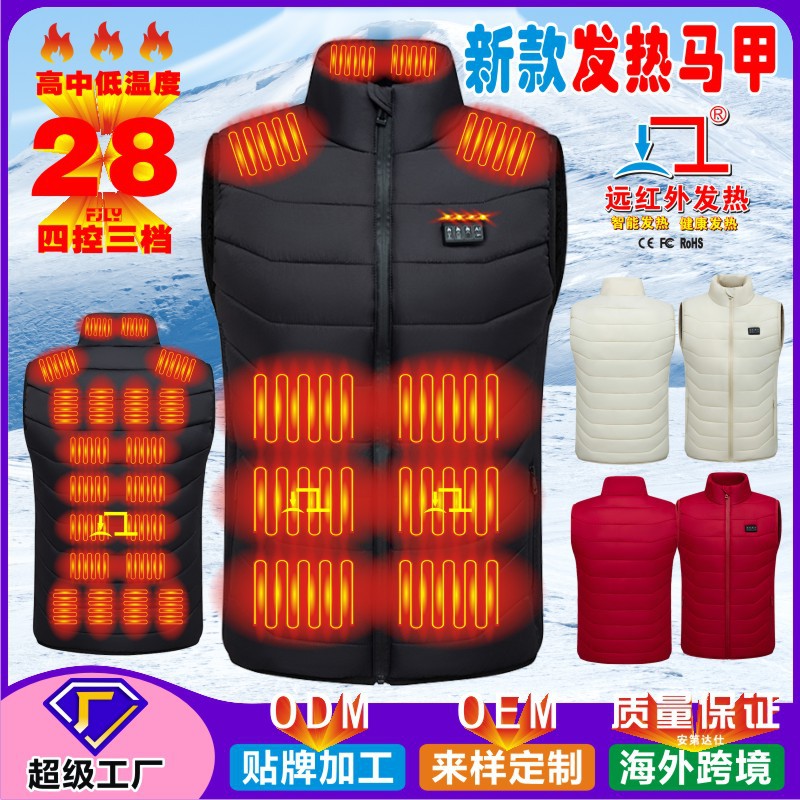 Новый трансграничный жилет с подогревом, воротник-стойка, 28-зонный жилет с подогревом, уличный термостатический умный мужской и женский жилет с подогревом