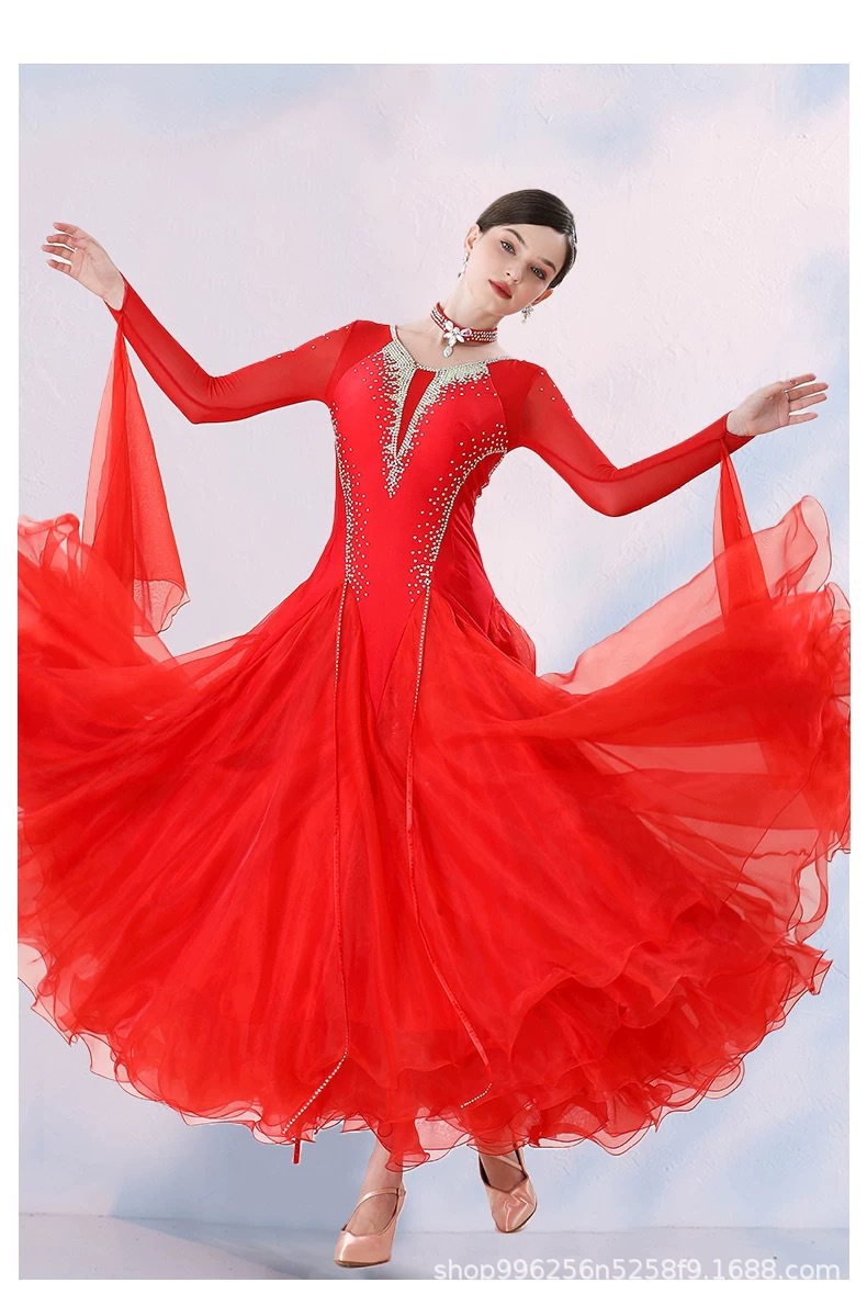 Изящное танцевальное платье для современного танца, новая юбка для вальса, бальных танцев, профессиональная юбка для современного танца, бальных танцев, свободная юбка