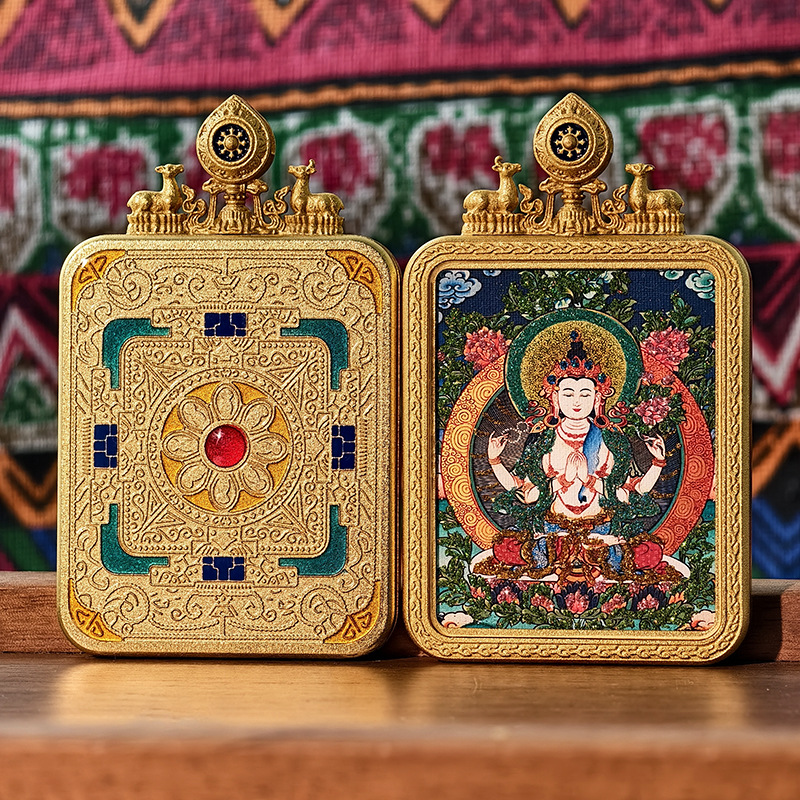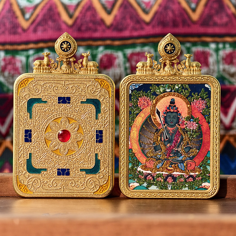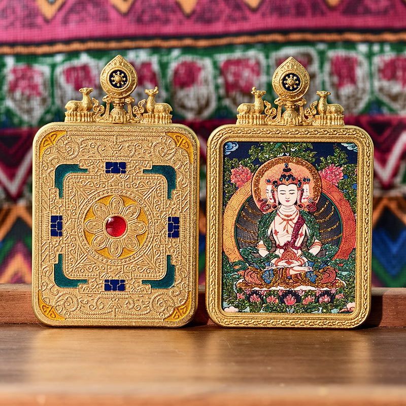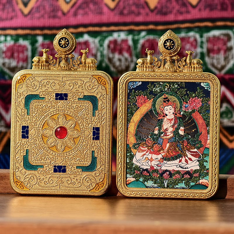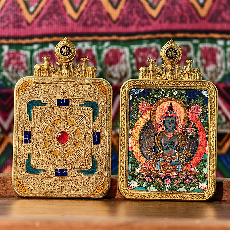 Тибетская тангка, ручная роспись, золотой знак зодиака, восьмой страж, тангка с двойным оленем, алтарь, коробка Gau