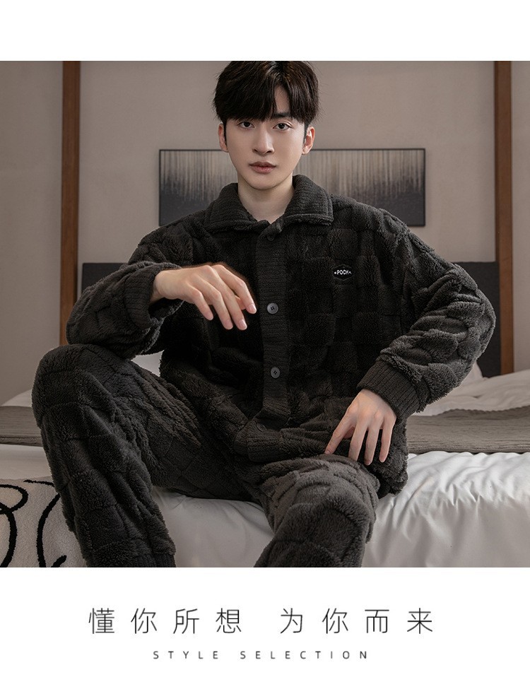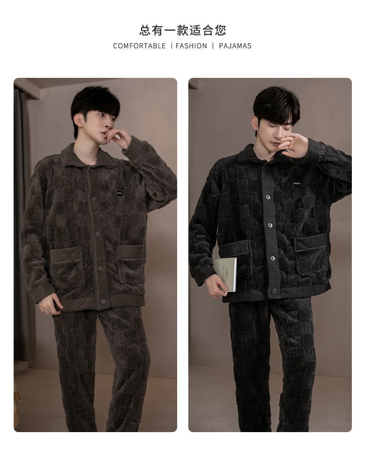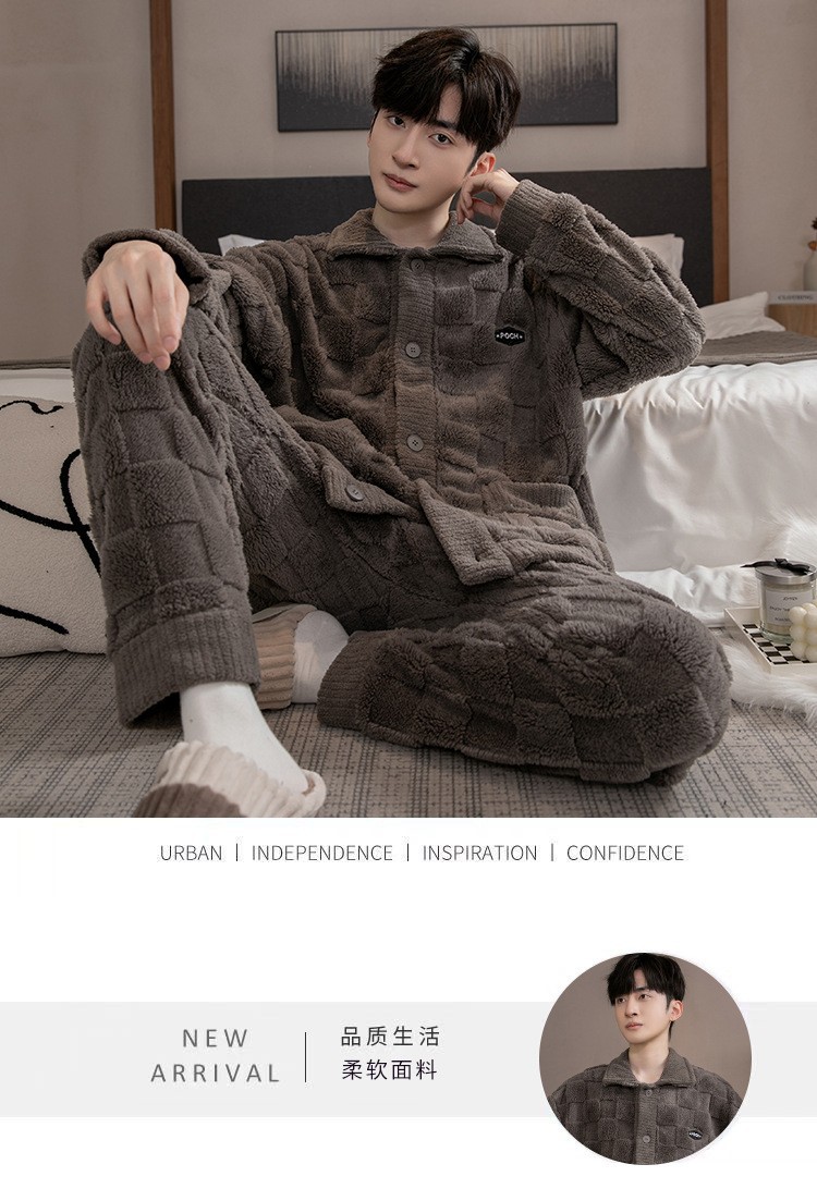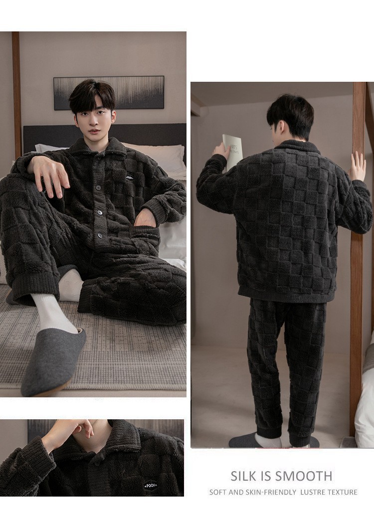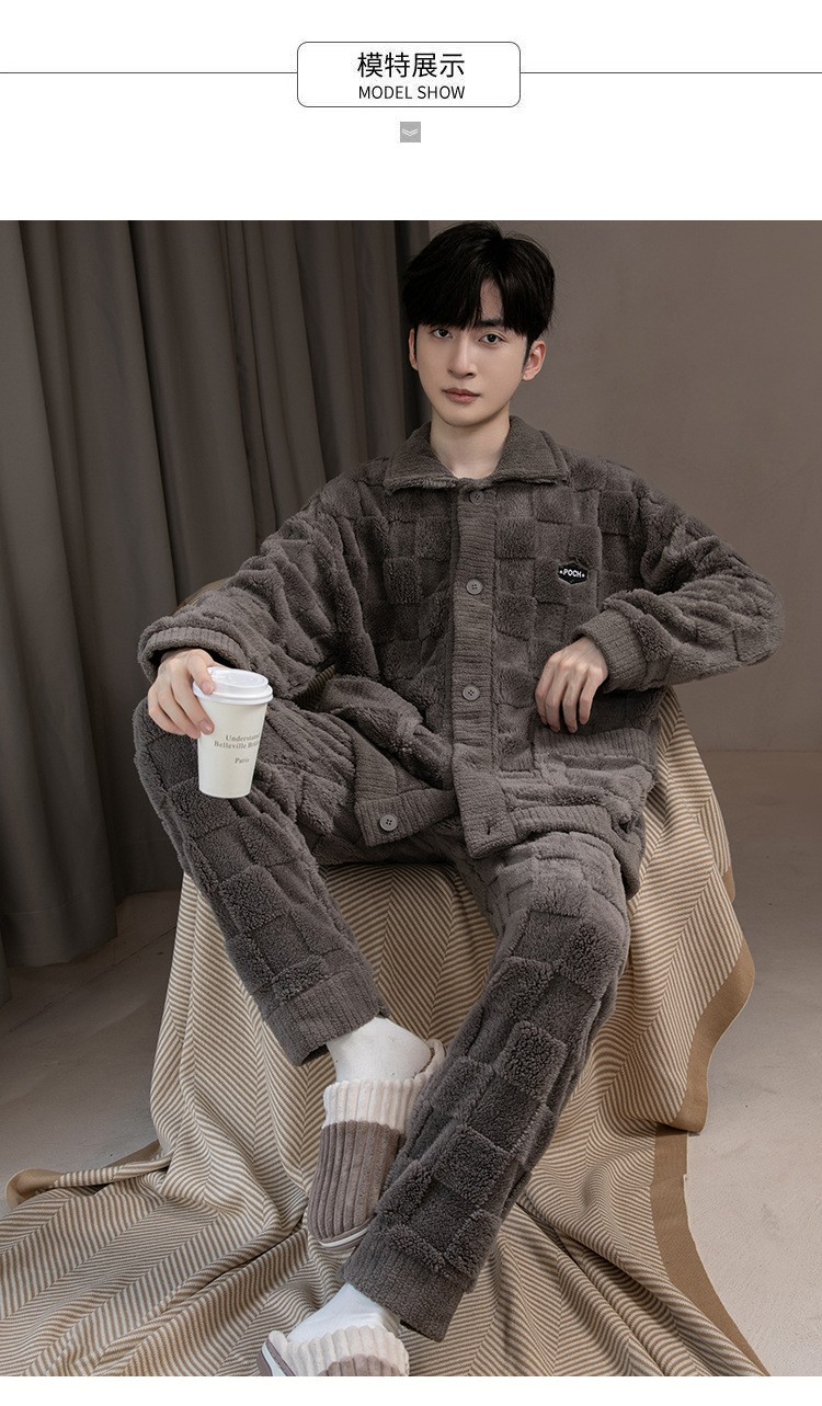 2025 Новые мужские пижамы из кораллового флиса с бархатным утепленным слоем, теплая домашняя одежда, фланелевый костюм для подростков и студентов