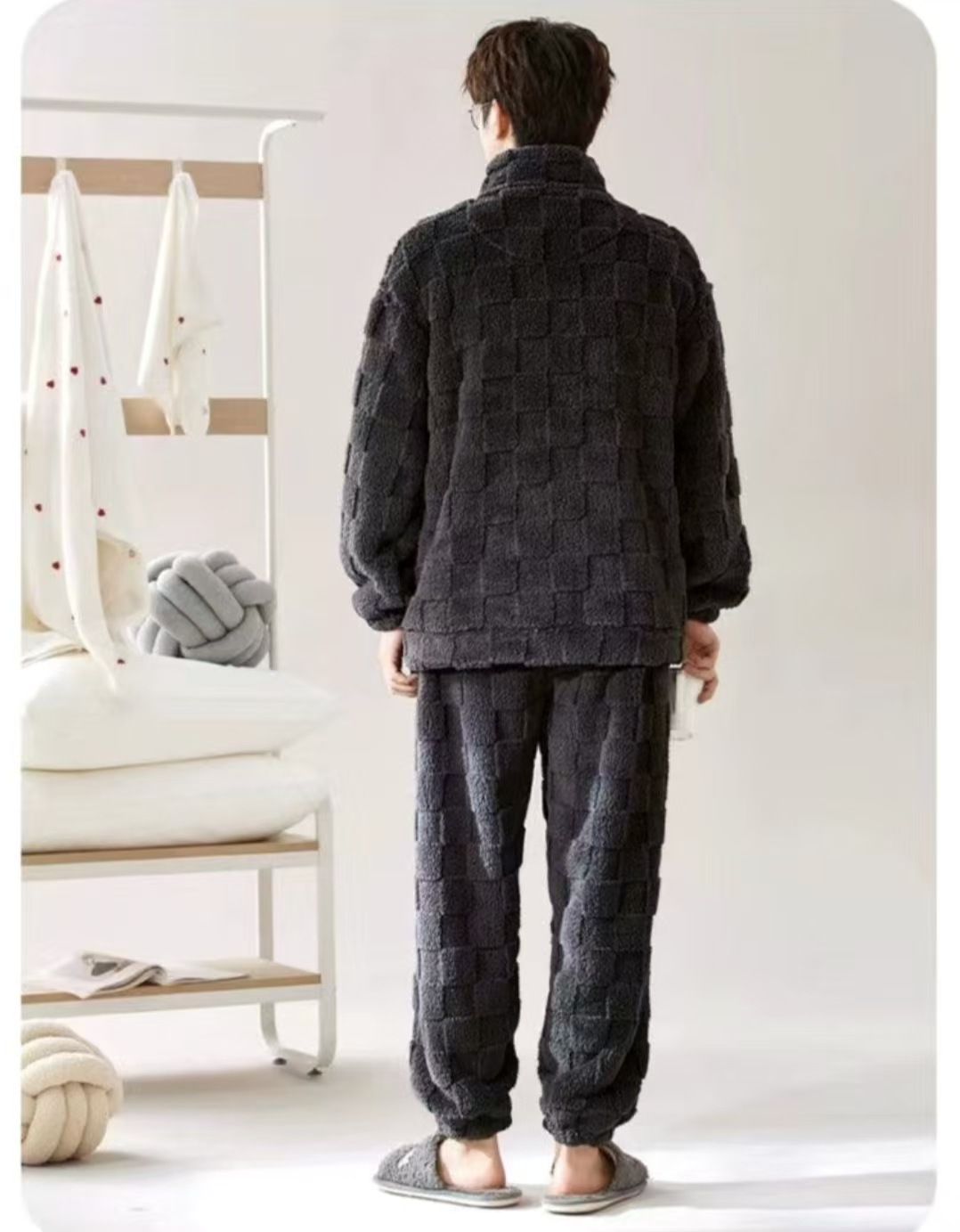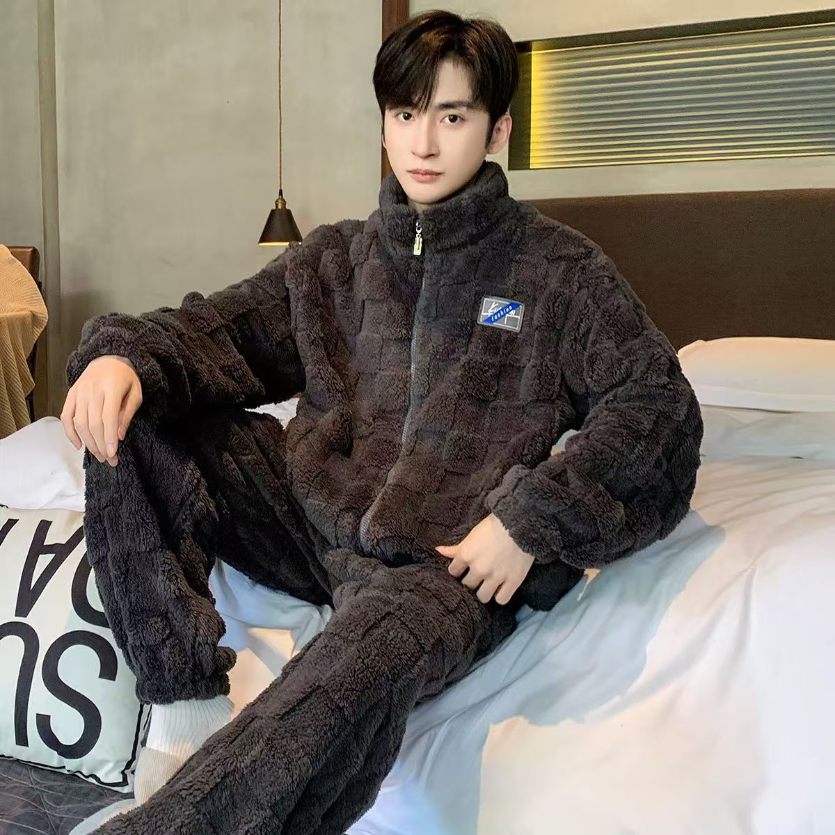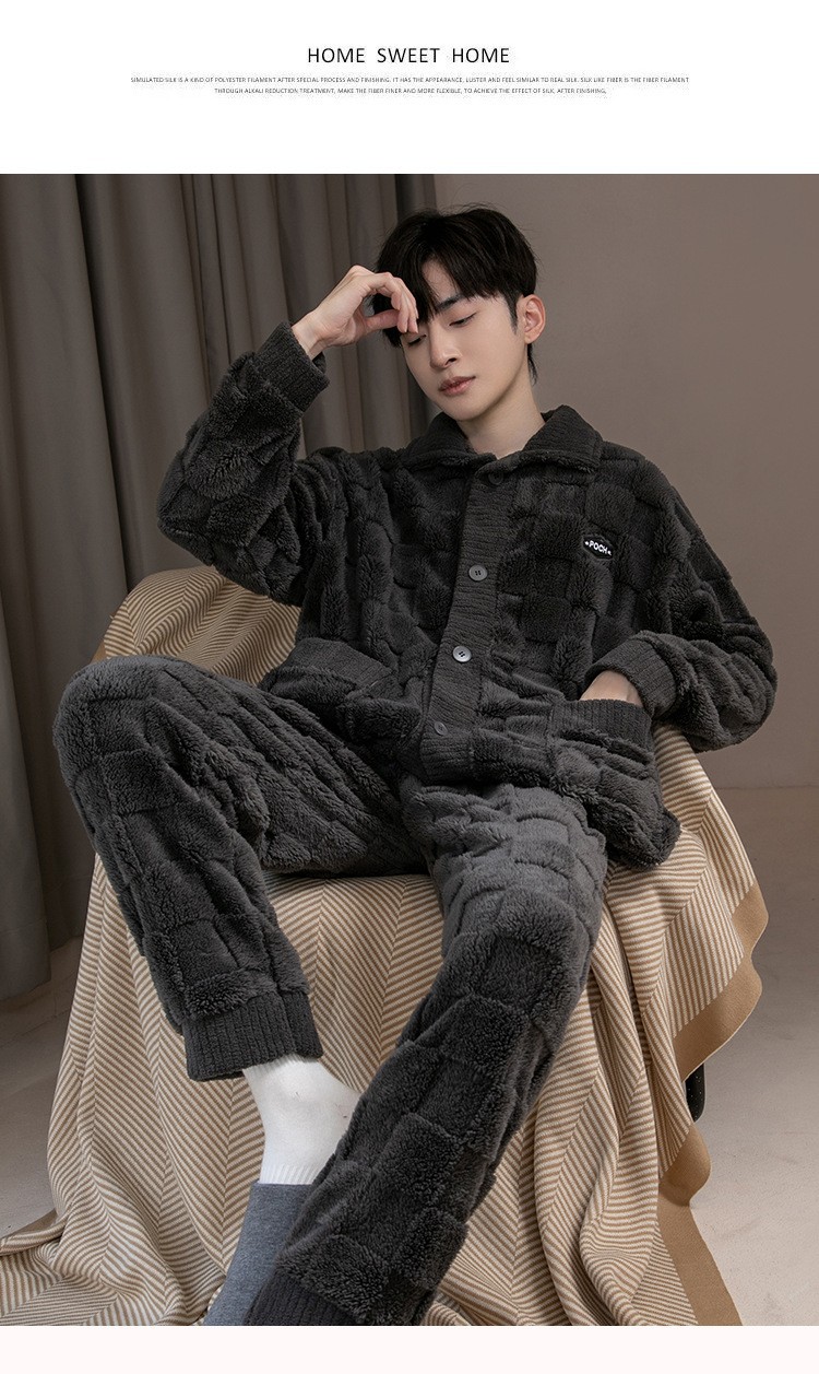 2025 Новые мужские пижамы из кораллового флиса с бархатным утепленным слоем, теплая домашняя одежда, фланелевый костюм для подростков и студентов