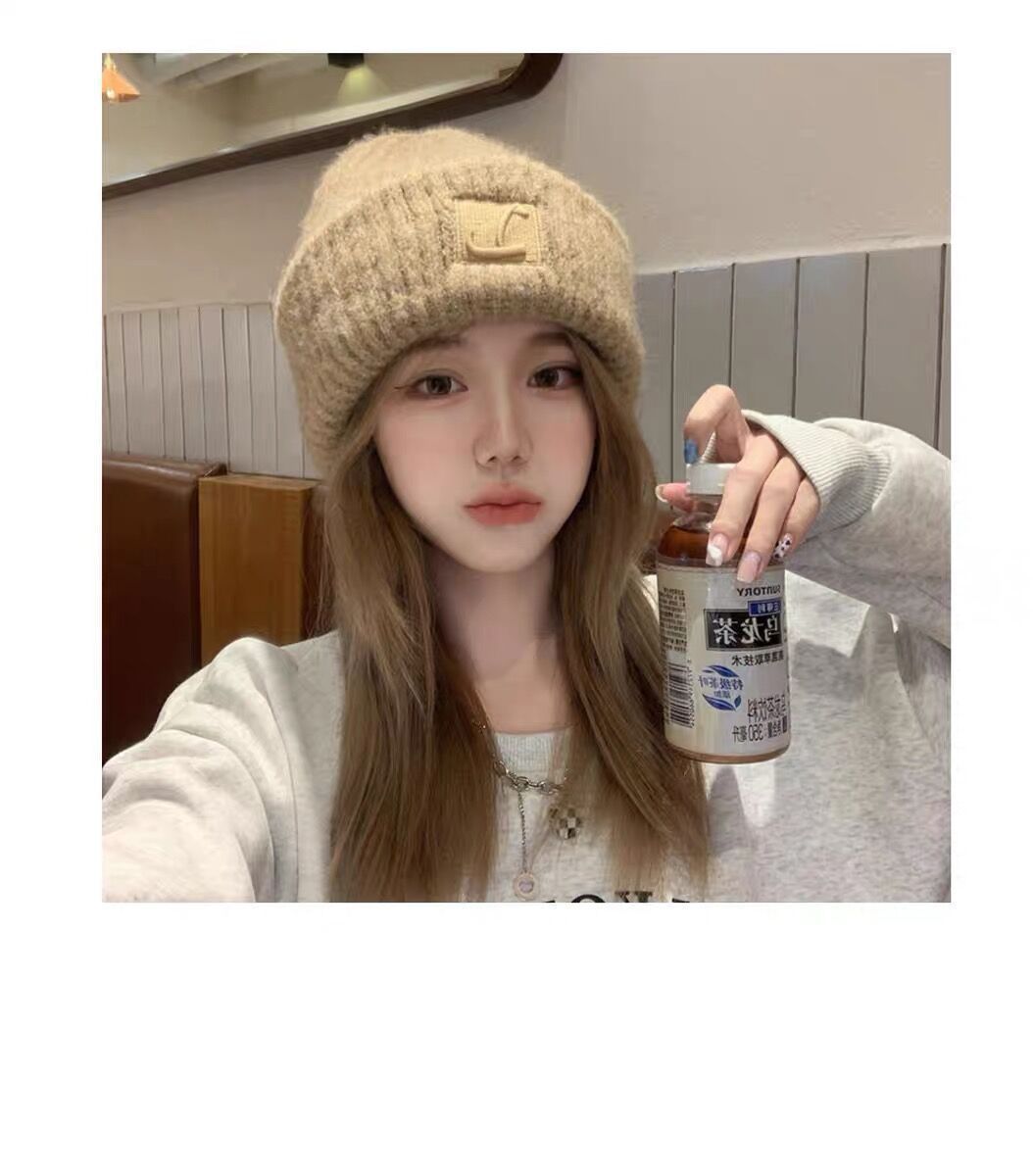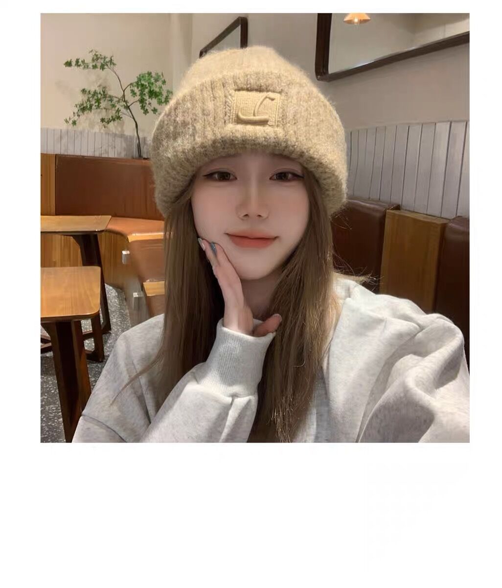 Свободная теплая вязаная шапка для женщин с большим окружностью головы, осень и зима, для похудения лица, защиты ушей.
