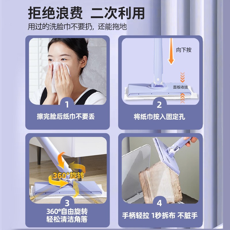 Маленькая швабра для лица с зажимом для ткани для чистки стен в ванной комнате, автоматическая швабра для замены бумаги без помощи рук.
