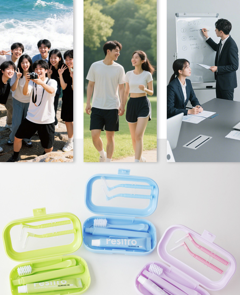 Дорожный набор в чехле (синий); Дорожный набор в чехле (розовый); Дорожный набор в чехле (зеленый)