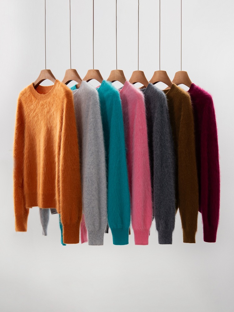 25 лет осень и зима, новый стиль нормкор, кашемировые свободные вязаные женские топы с круглым вырезом в ленивом стиле, шерстяные рубашки оптом