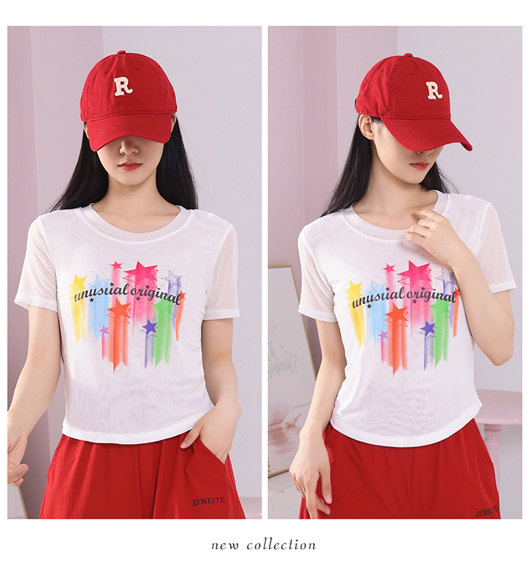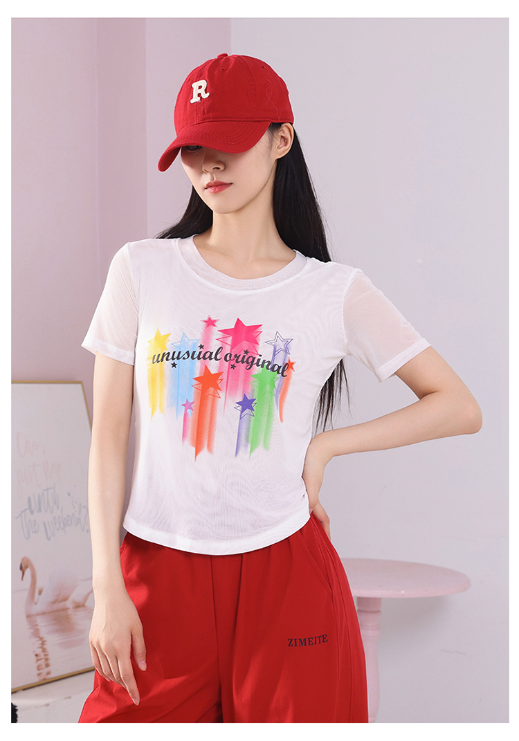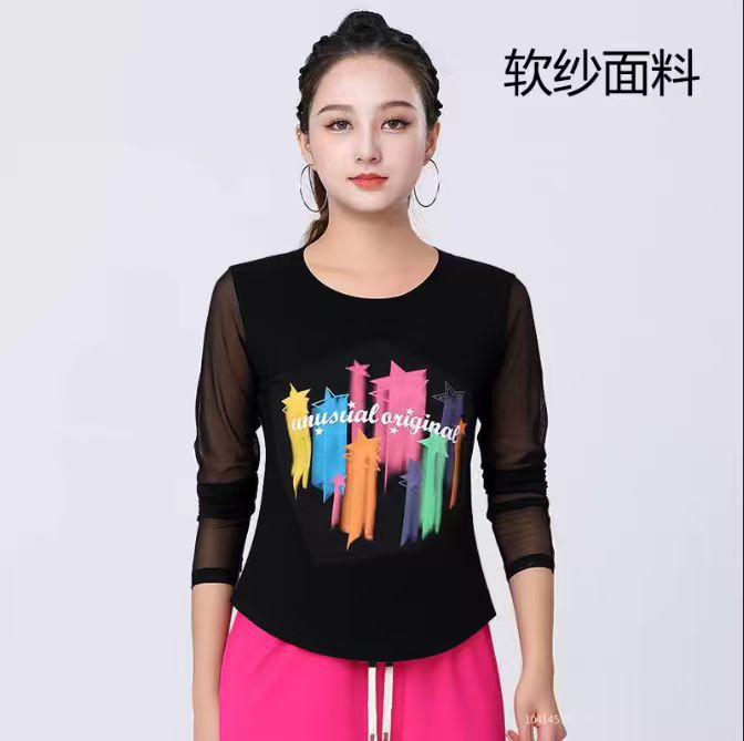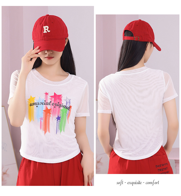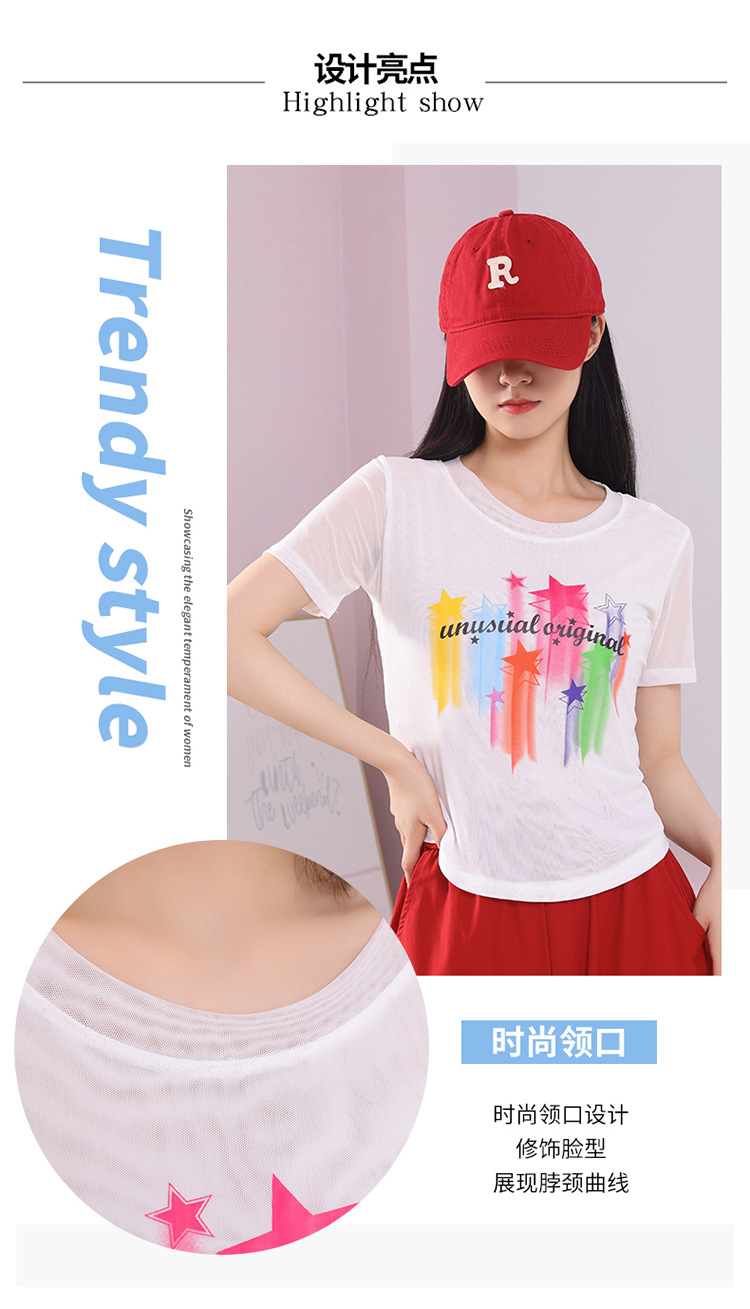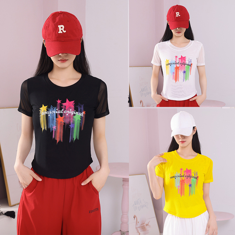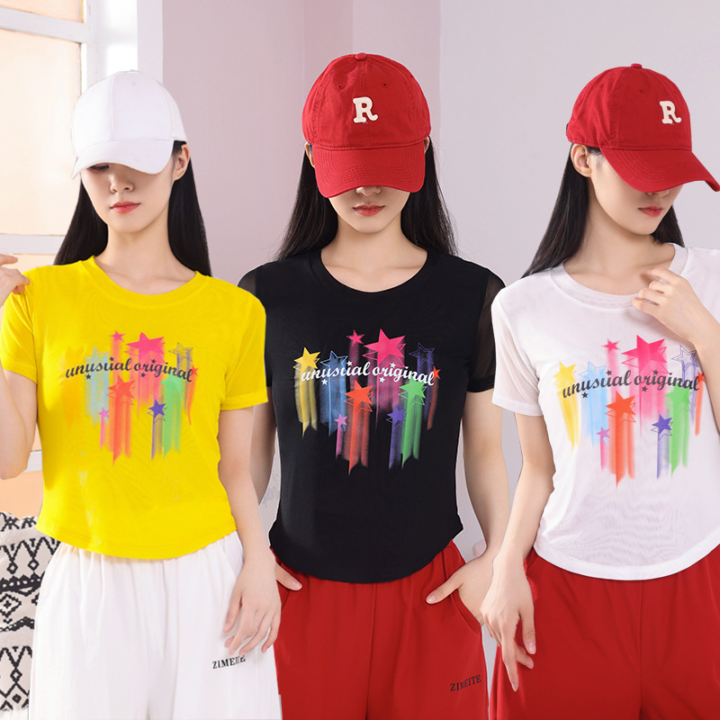 2025 новая летняя двухслойная сетчатая ткань с красочным принтом, одежда для квадратных танцев, новые топы с короткими рукавами