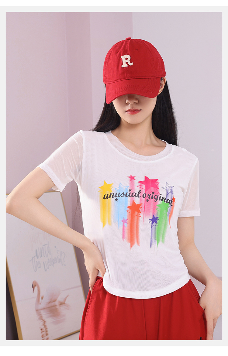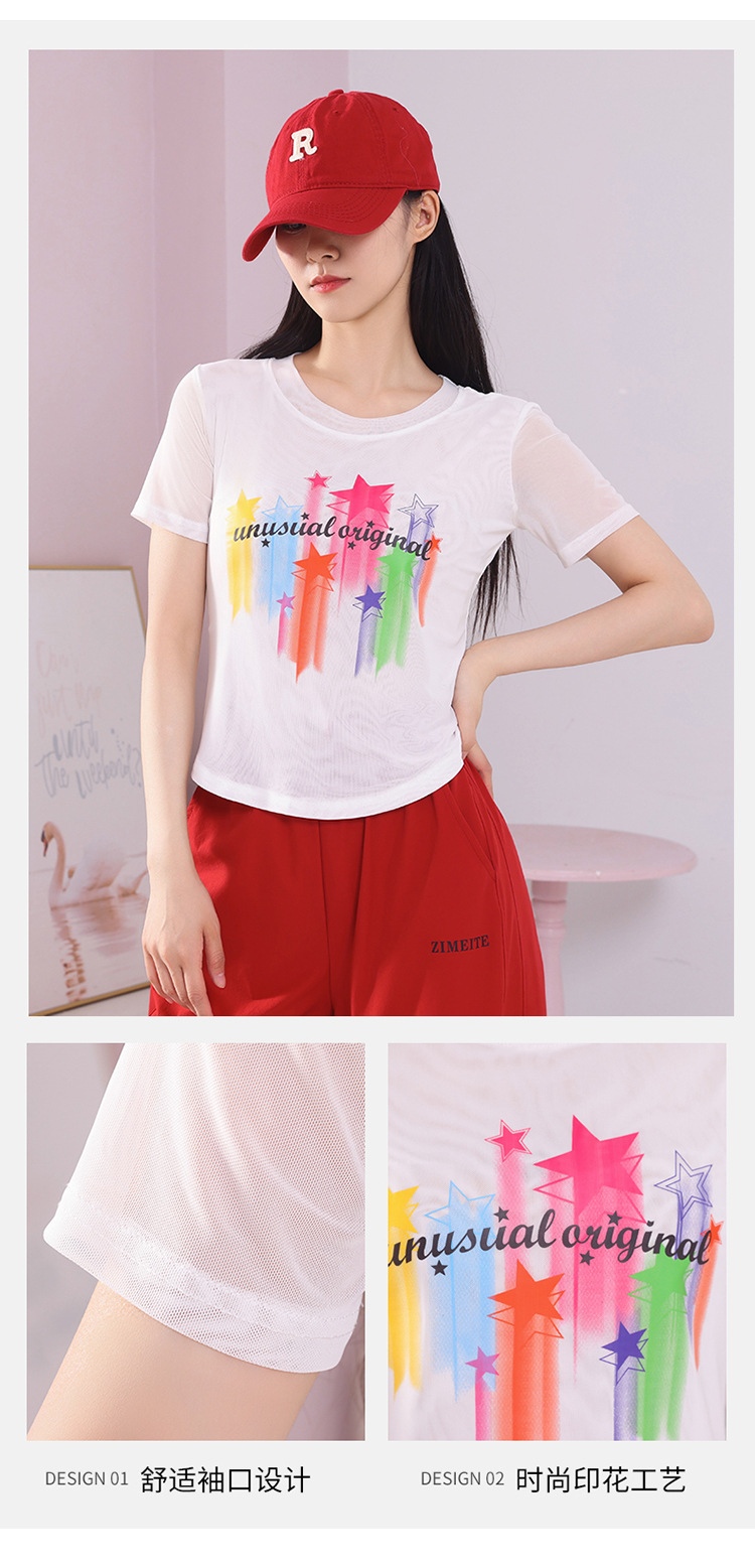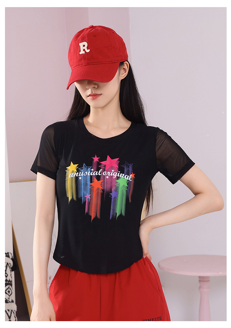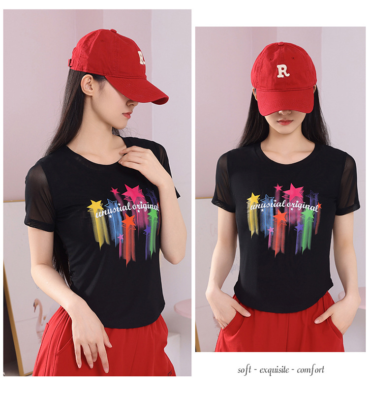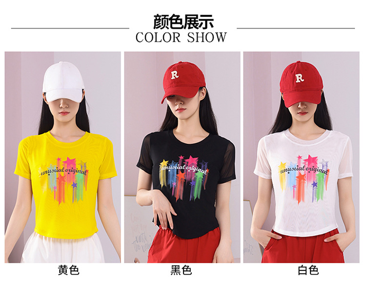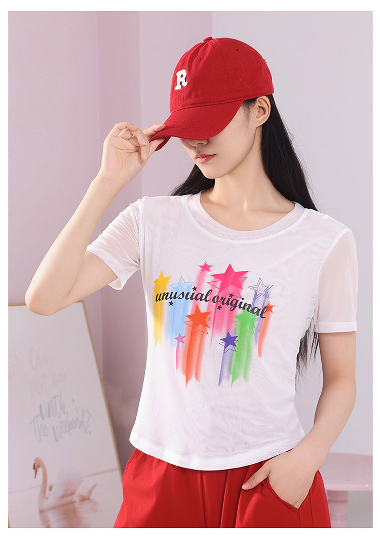 2025 новая летняя двухслойная сетчатая ткань с красочным принтом, одежда для квадратных танцев, новые топы с короткими рукавами