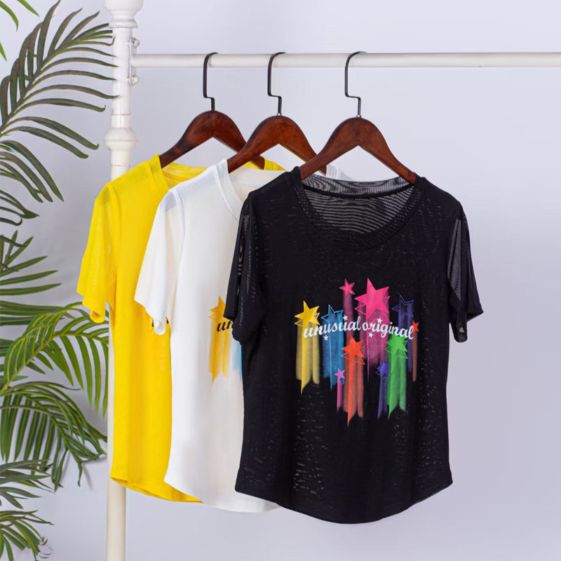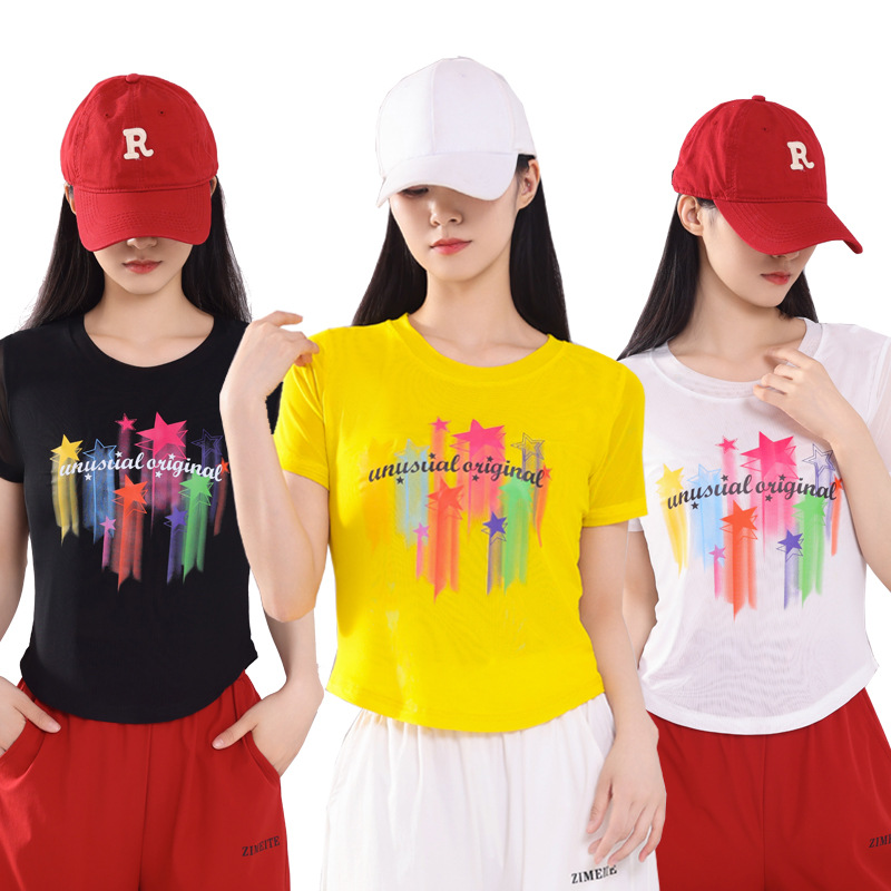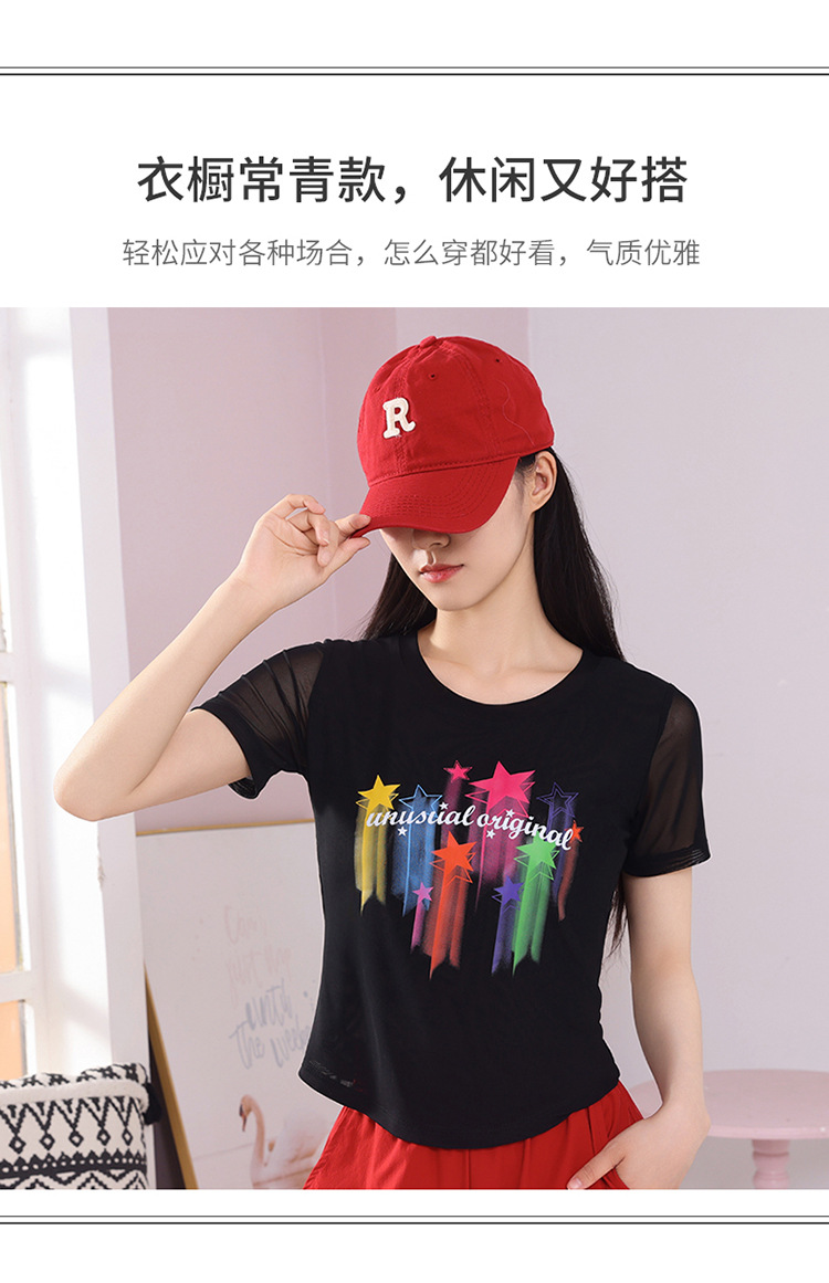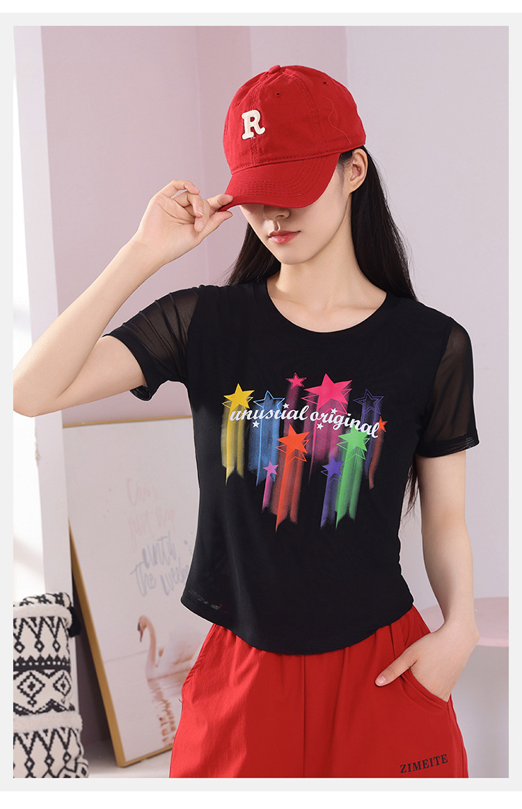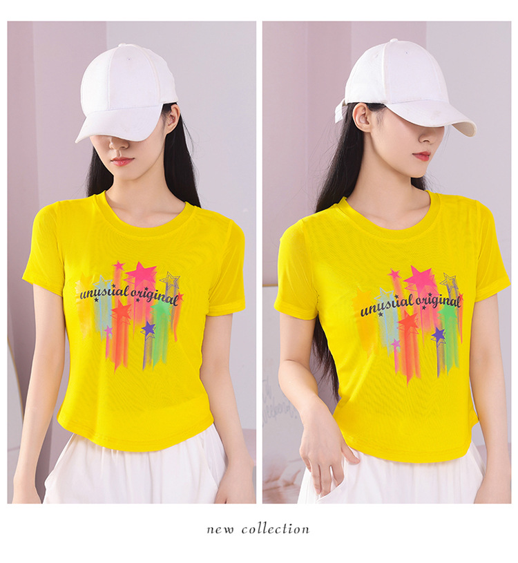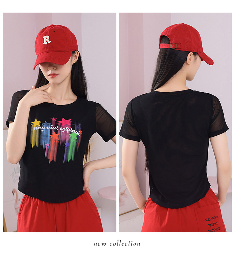 2025 новая летняя двухслойная сетчатая ткань с красочным принтом, одежда для квадратных танцев, новые топы с короткими рукавами