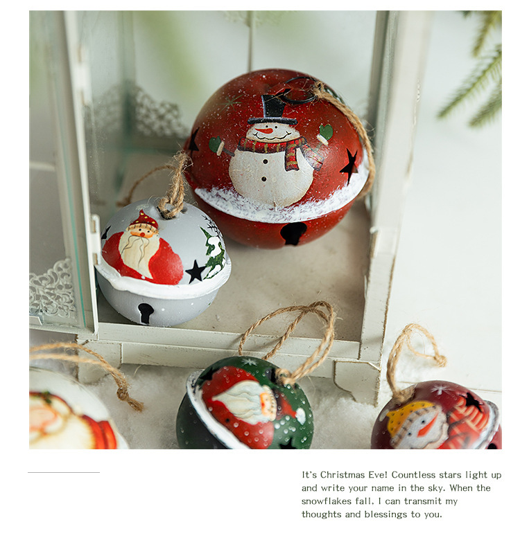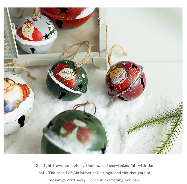 Подвеска-колокольчик для рождественской елки, ретро-декоративная подвеска-снеговик, круглое отверстие, железный Санта-Клаус, ландшафтный ветряной колокольчик
