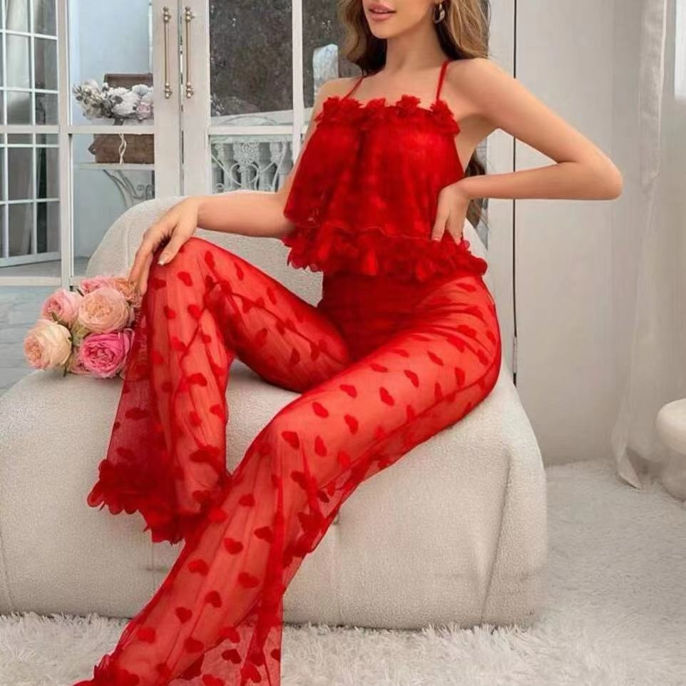 Новая внешнеторговая европейская и американская сексуальная нижнее белье, сексуальные сетчатые прозрачные подтяжки, пижамы в форме сердца, комплект домашней одежды