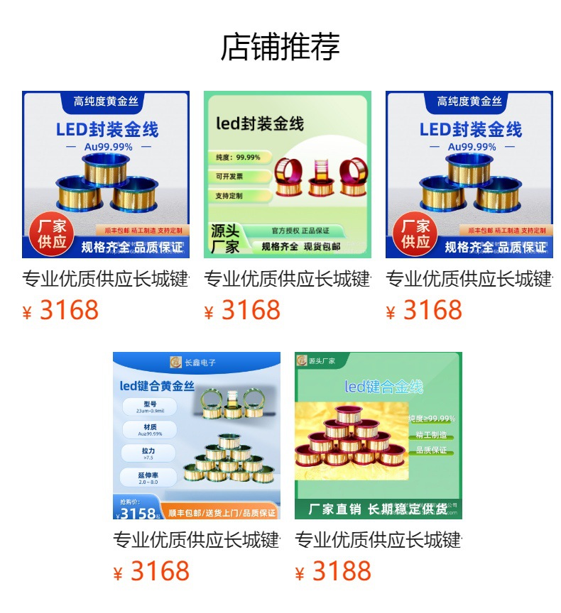 金丝封装过程中起到导线连接的作用,将芯片表面电极和支架连接起来,当导通电流时,电流通过金线进入芯片,使芯片发光。