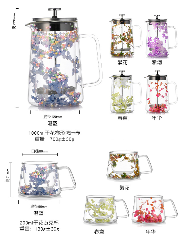 【品名】干花梯形双层法压壶