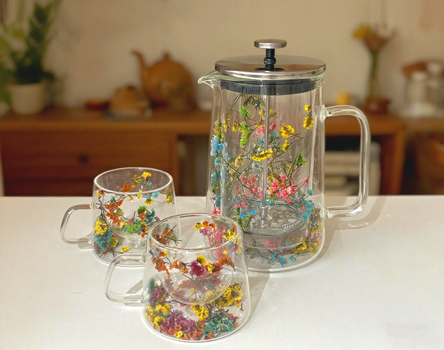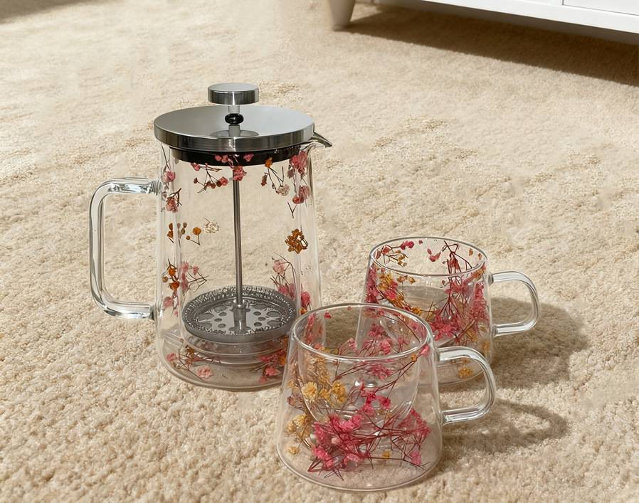 Двухслойный стеклянный горшок для французского пресса с сушеными цветами, термостойкий кофейник, изолированная кофейная посуда, бытовой фильтр для заварки чая, горшок для совместного использования.